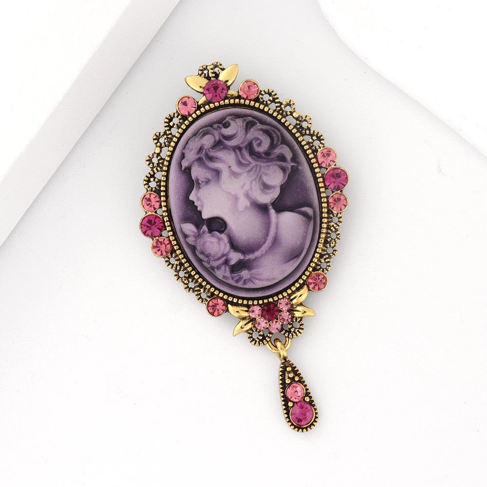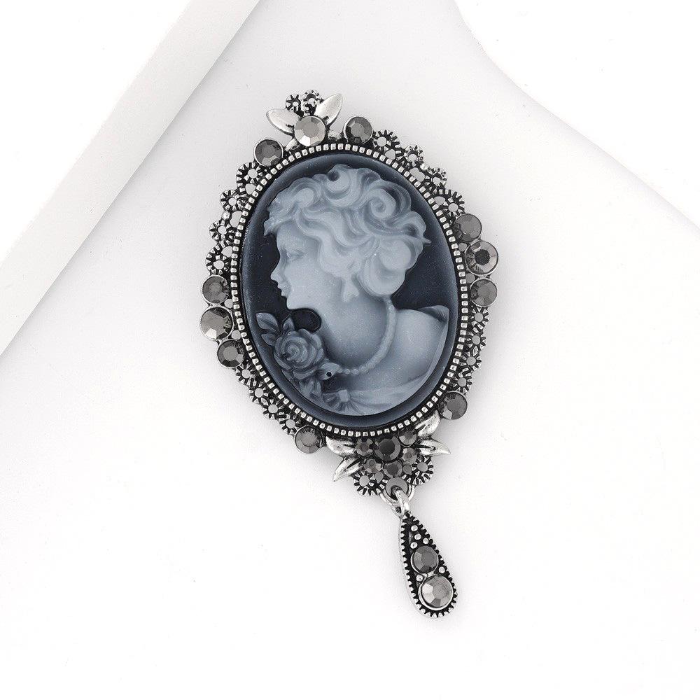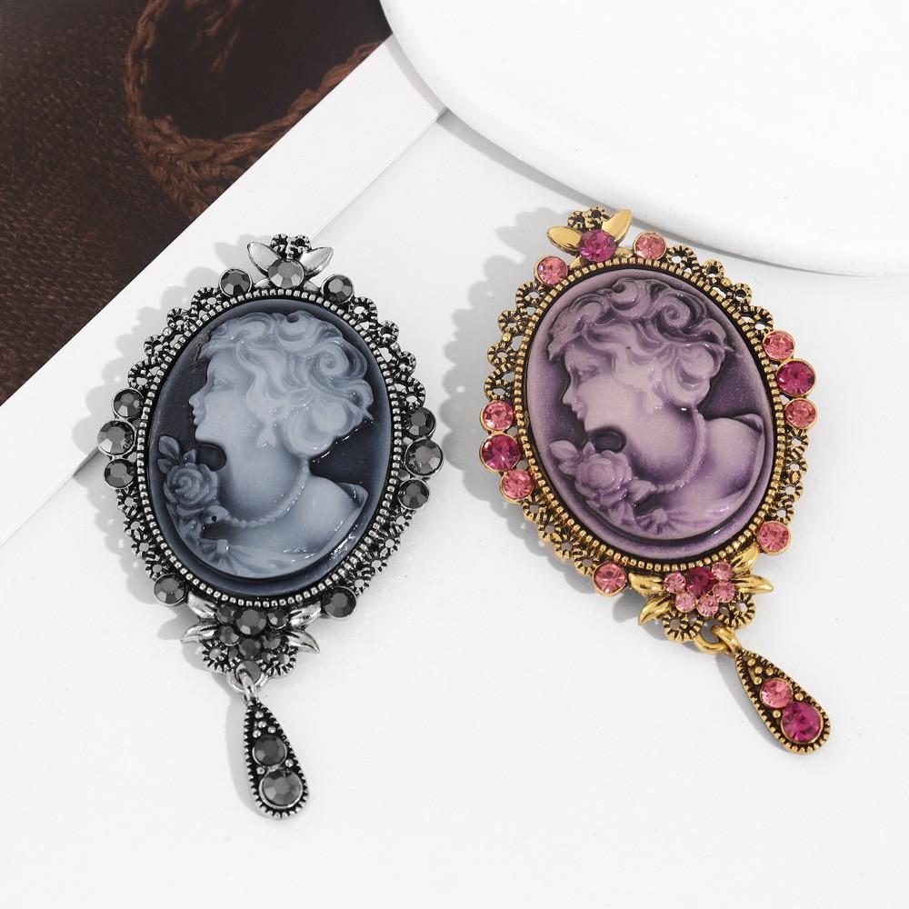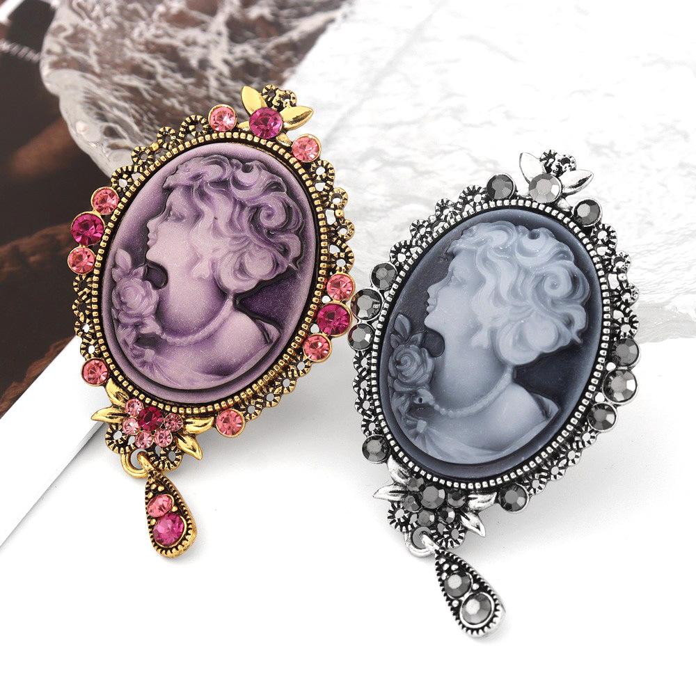 Broche de cabeza de belleza retro creativo de moda europea y americana, broche de personalidad de cabeza de reina con relieve de diamante de aleación, venta al por mayor