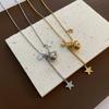 Collar de nicho con forma de cruz de clavícula con diamantes de perlas de doble capa de estilo europeo y americano a la moda, dulce, fresco y sexy para chica.