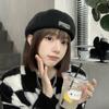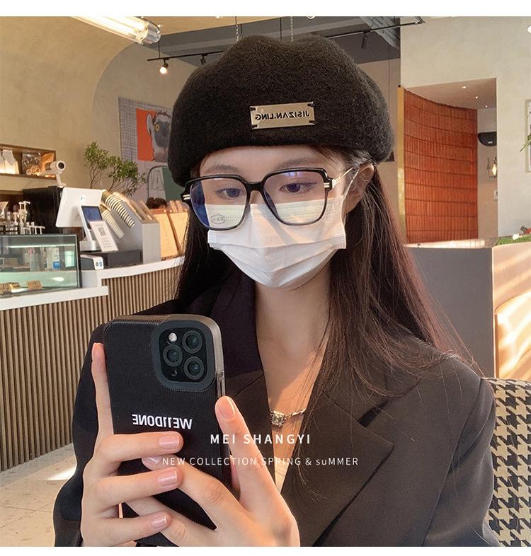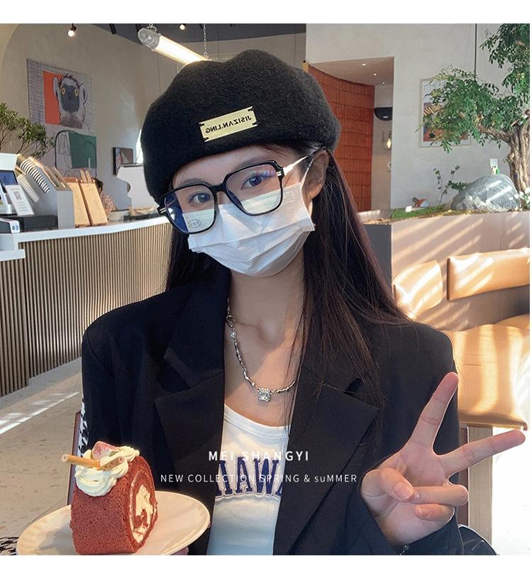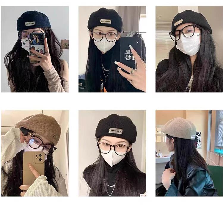 Boina negra para mujer de circunferencia de cabeza grande, primavera y otoño, retro británica, anti-desgaste, gorra hacia adelante, otoño e invierno, boina de lana de pintor