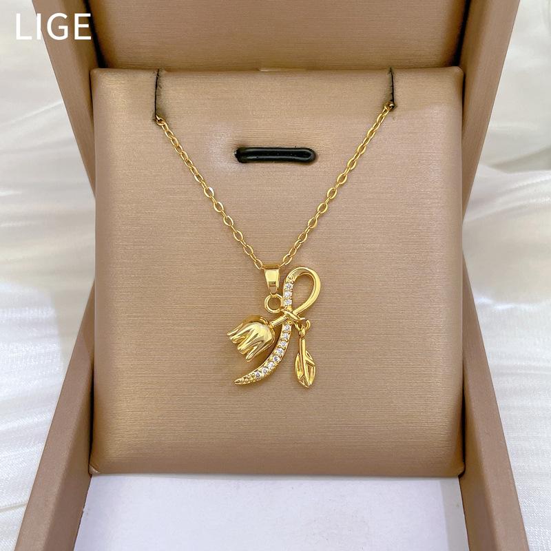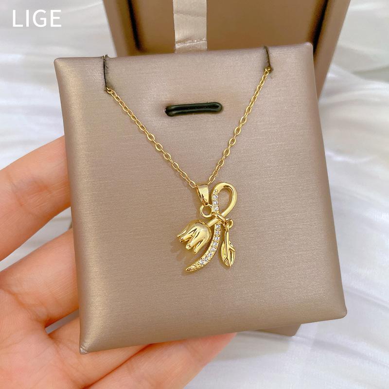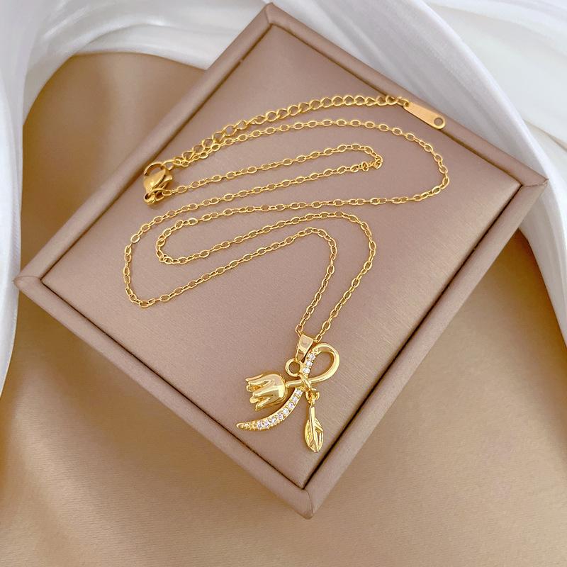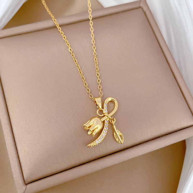 [Acero titanio] Bell Orchid - Collar de diamantes elegante, ligero y lujoso, a la moda, para mujer, cadena de clavícula combinable, cadena de acero titanio.