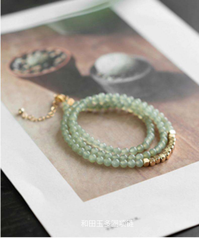 Jade Hetian de agua clara natural collar de jade de 4 mm cadena de clavícula de plata rota para mujer pulsera multifila de cuentas ultrafinas para combinar con todo