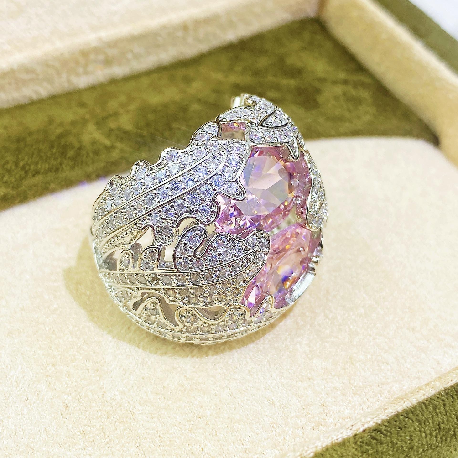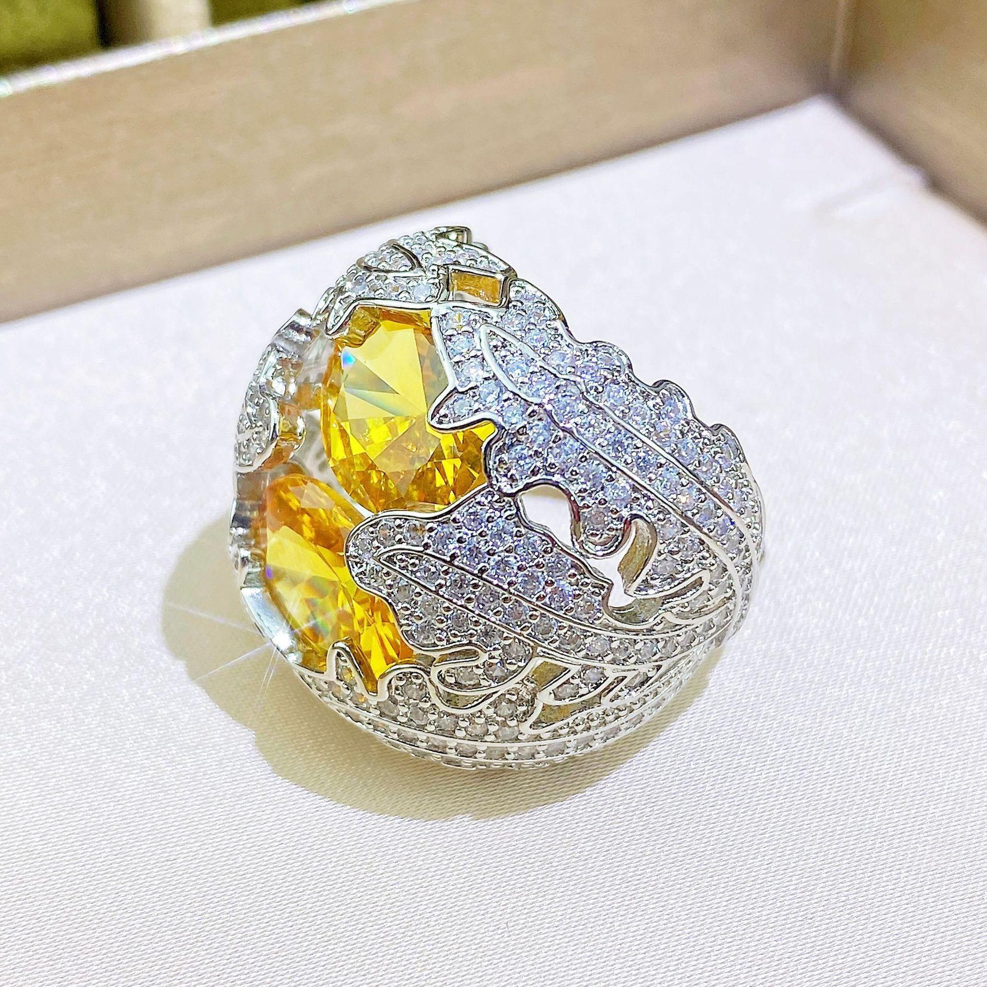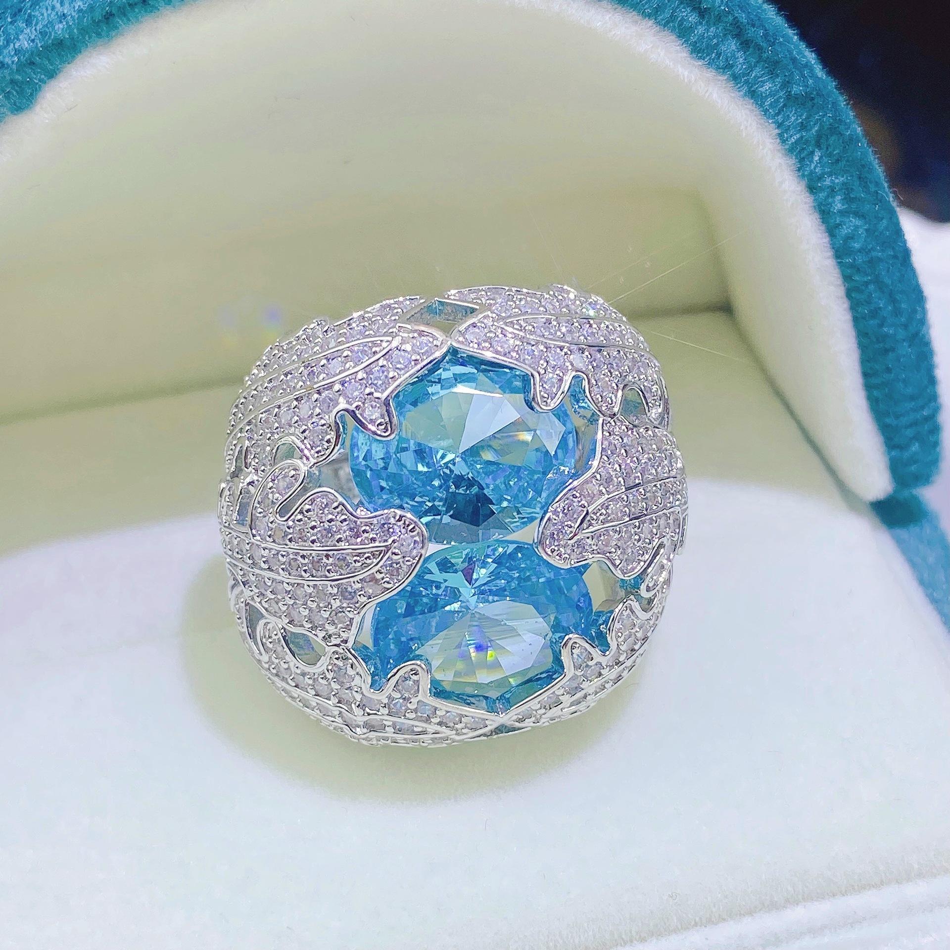 Anillo Abrelatas Huevo de Paloma Doble de Bully Queen Transfronterizo Lujo Conjunto Completo de Diamantes con Anillo de Diamante Azul Marino Santa María