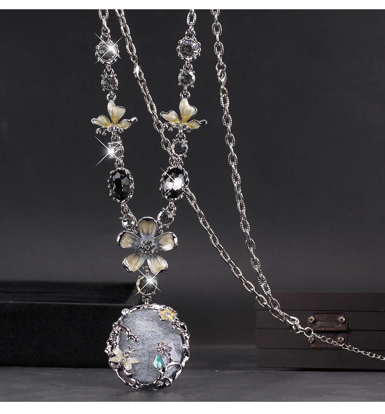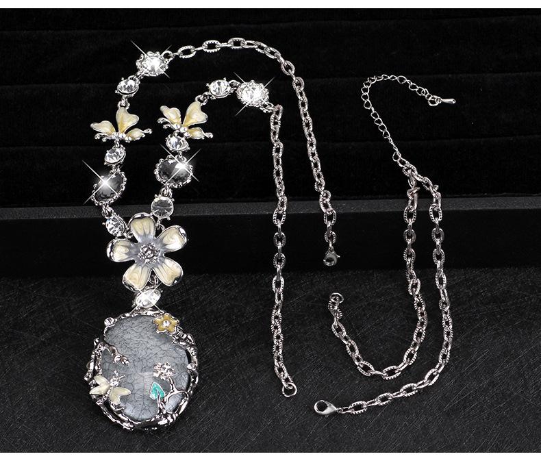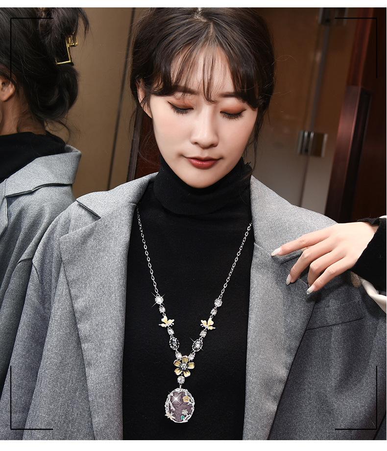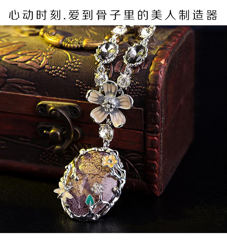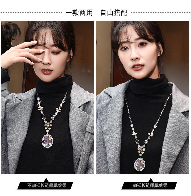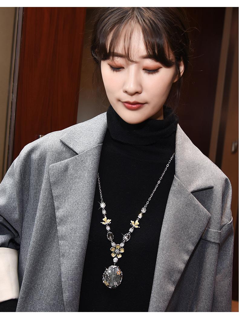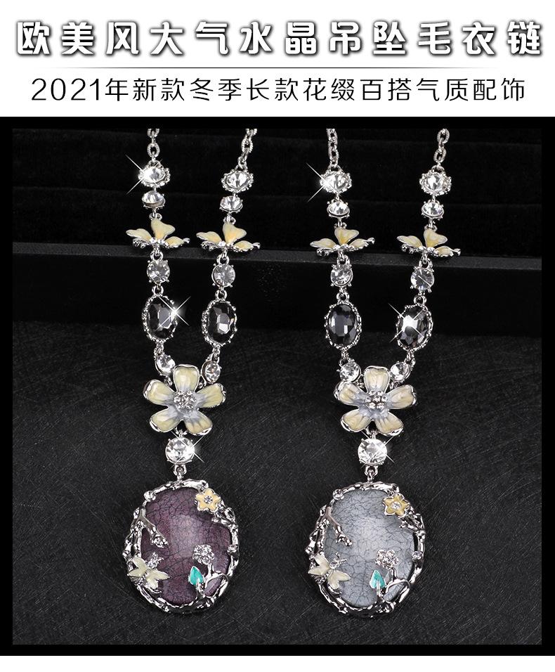 Venta directa de fábrica solo rosa elegante azul cristal borla suéter cadena temperamento simple y exquisito collar largo al por mayor