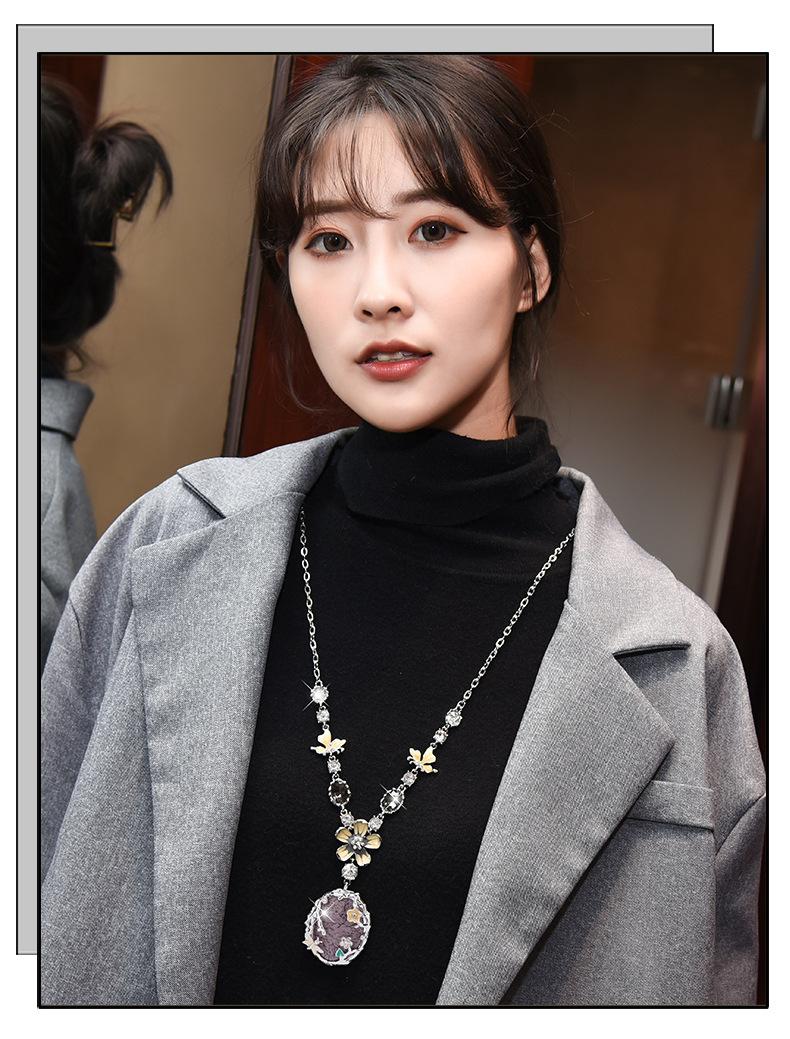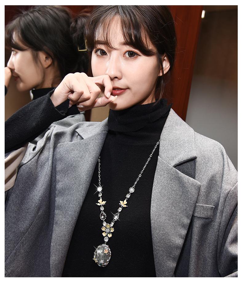 Cadena de suéter con perla ovalada y circonita para mujer, accesorios de collar largo sencillo, venta al por mayor transfronteriza, otoño e invierno de 2021