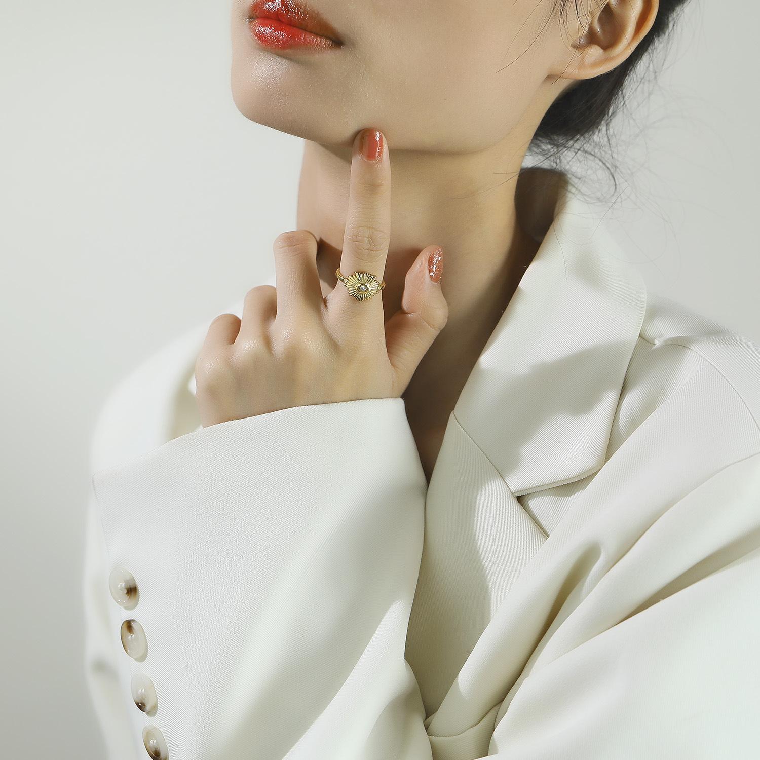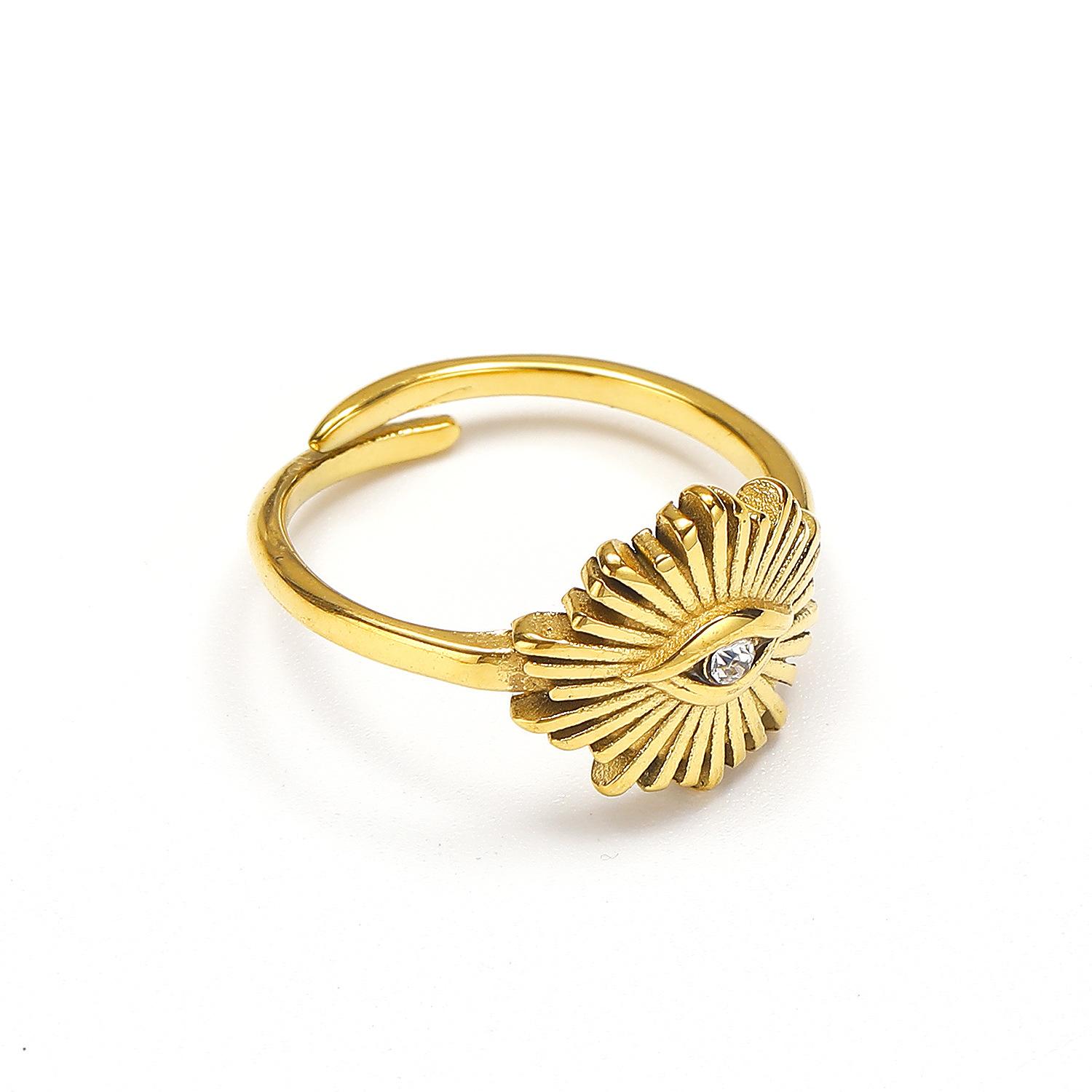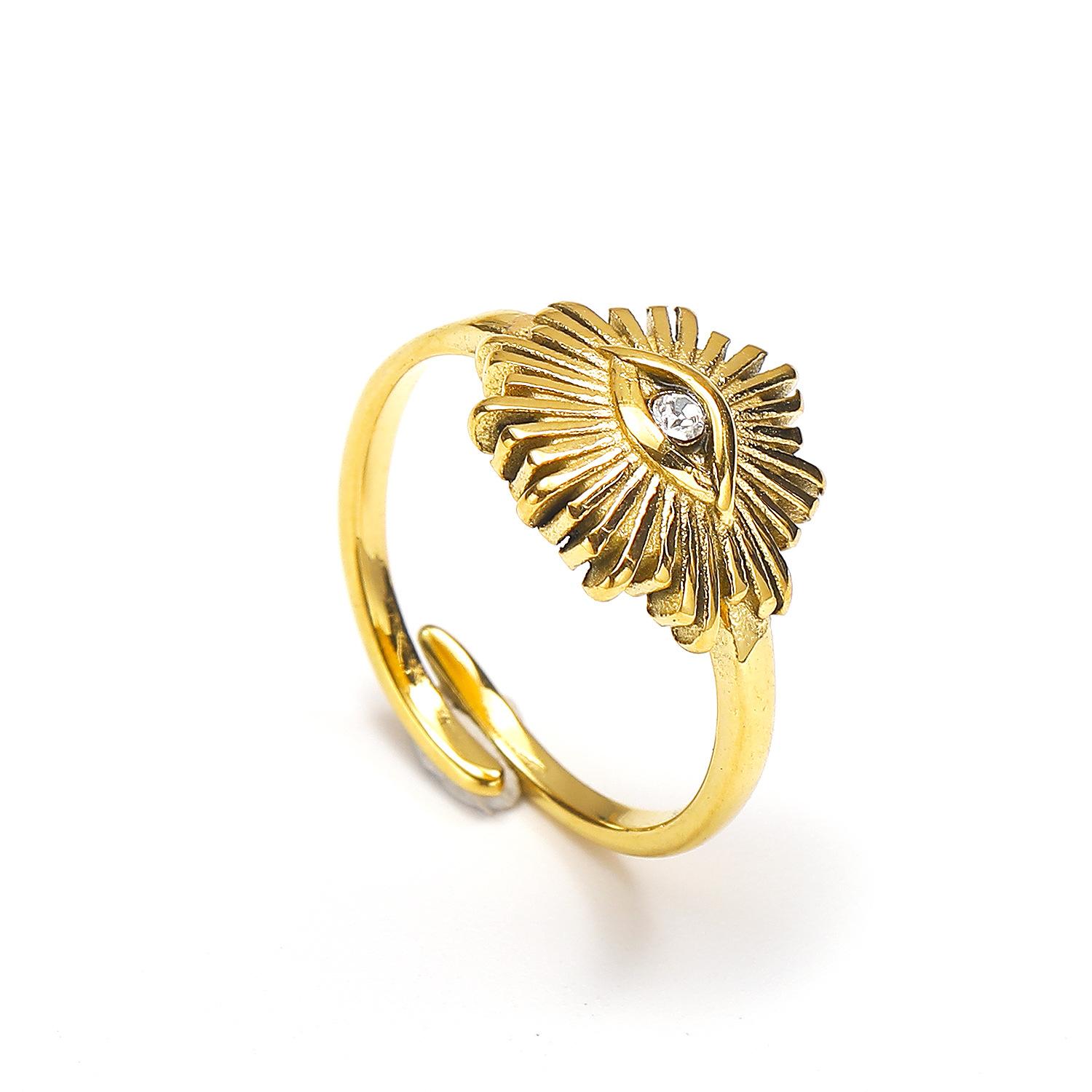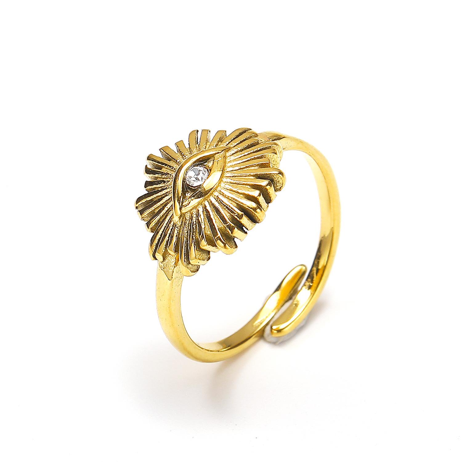 Anillo Ojo del Diablo de Personalidad Retro Popular Europeo y Americano para Mujer Nicho de Alta Gama Acero Inoxidable Oro de 18k