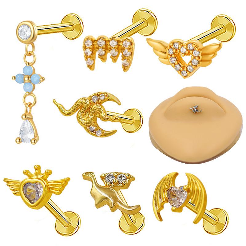 Gaibei Europeo y Americano Transfronterizo Pájaro Labio Uña Amor Oreja Hueso Uña Moda Dinosaurio Perforación Aretes Joyería de Perforación