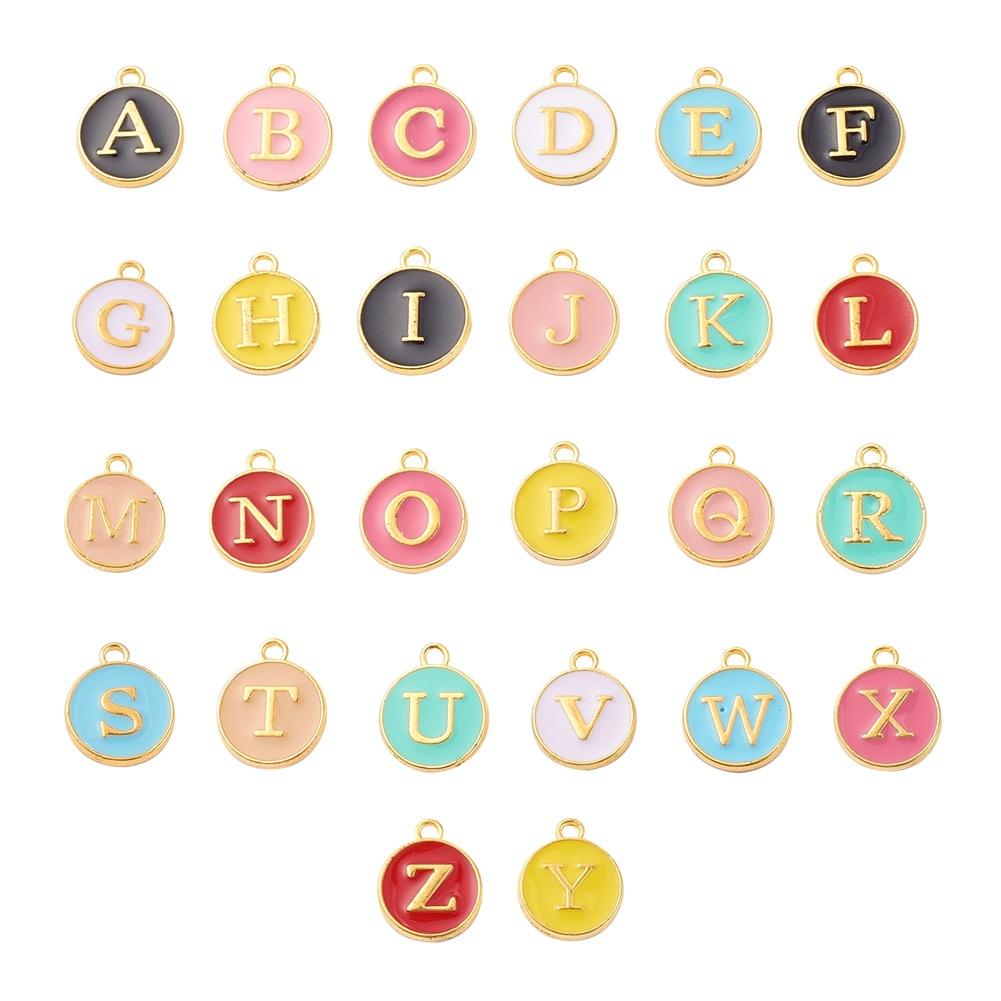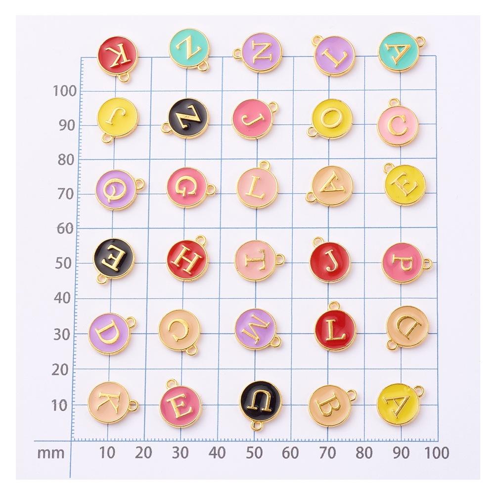 Fabricantes al por mayor de pulseras colgantes con 26 letras inglesas galvanizadas en oro auténtico, adornos para manualidades y accesorios de joyería. |