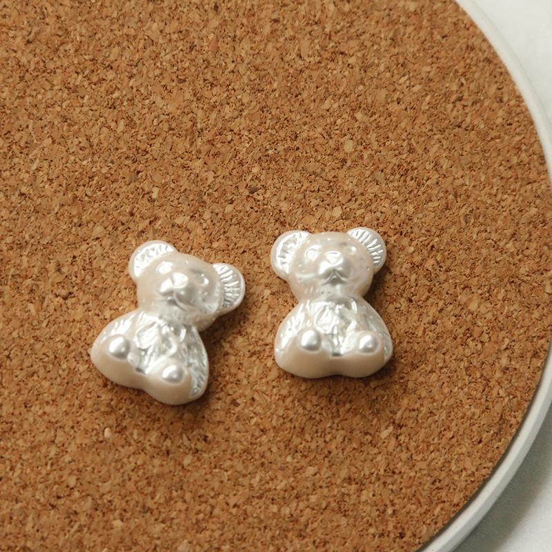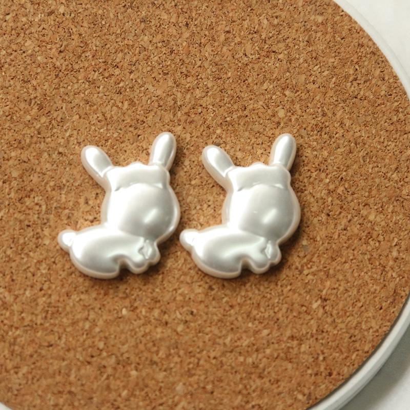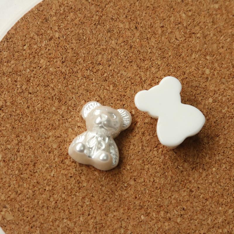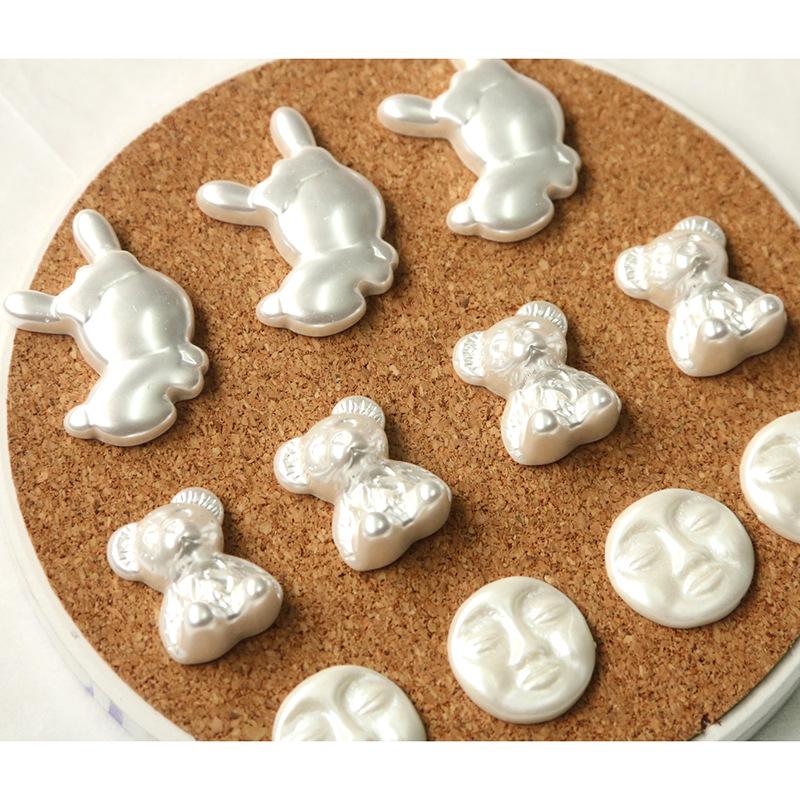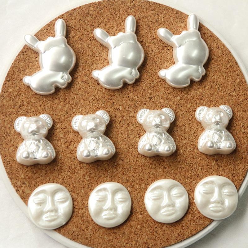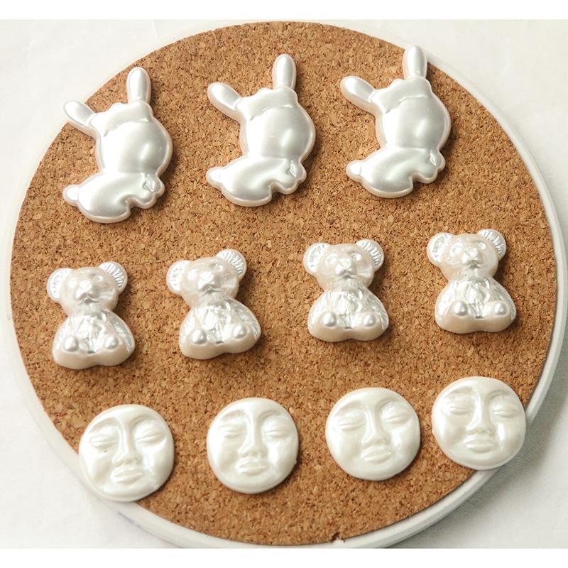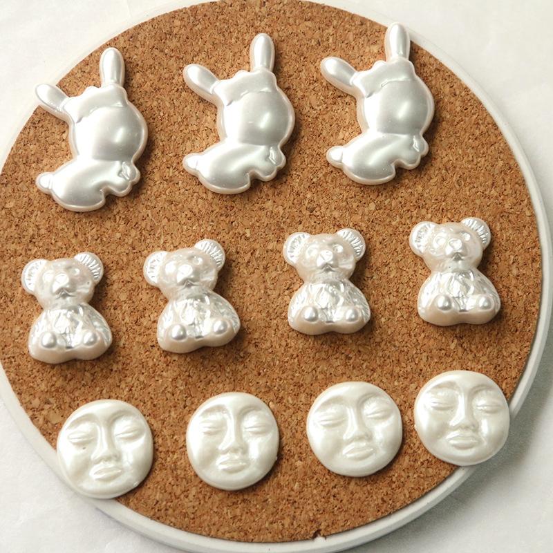 Pendientes con forma de cabeza de conejo perlada y oso blanco plateado, accesorios acrílicos para bricolaje, horquillas para el pelo, material para carcasa de teléfono móvil, venta al por mayor