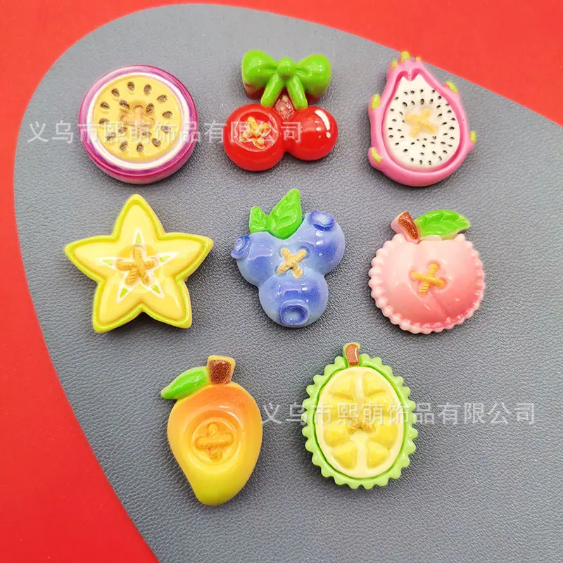 Acessórios de Resina Brilhantes Simulados de Manga, Cereja, Pitaya, Kiwi para DIY em Acessórios de Cabelo, Presilhas, Decorações de Capa de Celular e Adesivos