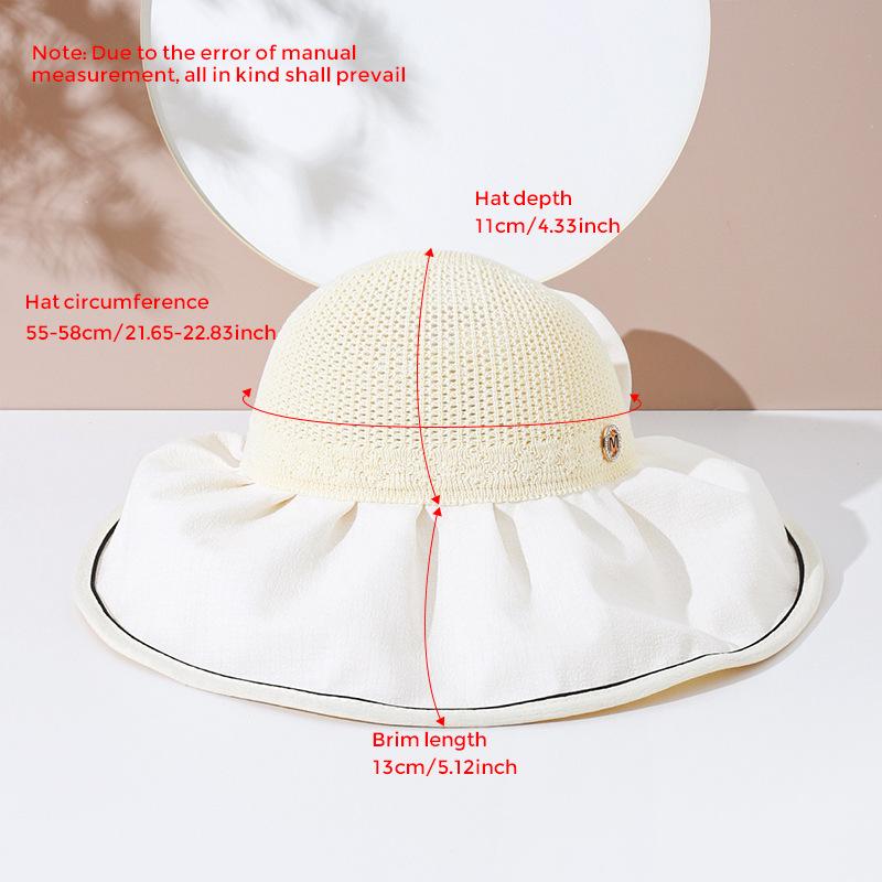 Sombrero para el sol para mujer, protector solar, de verano, con ala grande, de pescador, informal, combinable, plegable, para viaje, con lazo