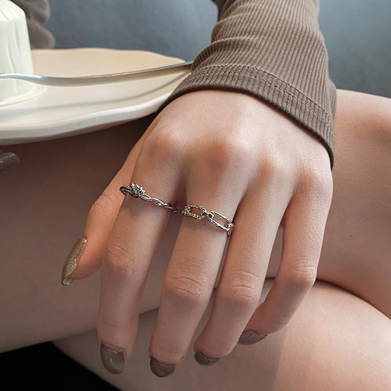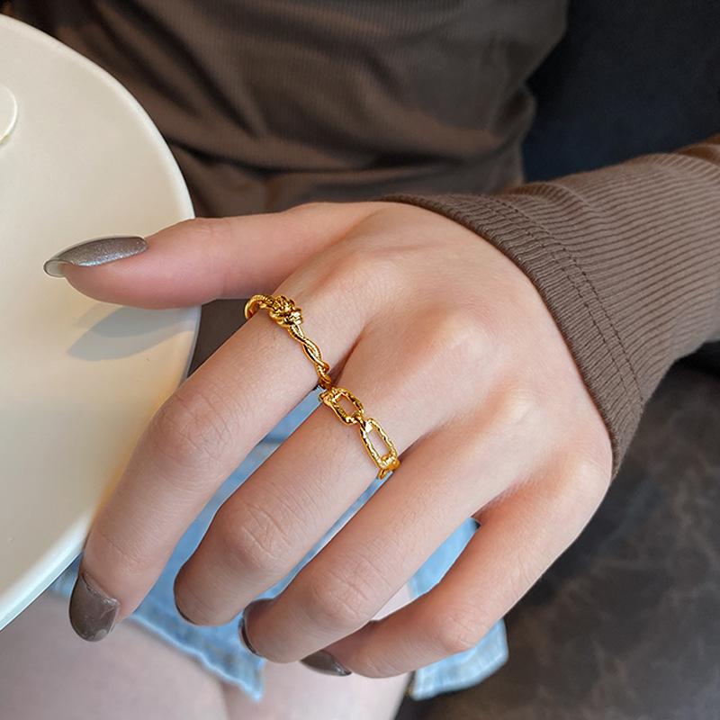 Anillo dorado con personalidad hueca para mujer, estilo geométrico frío, anillo para dedo índice simple, joyería de moda ajustable