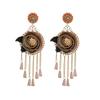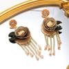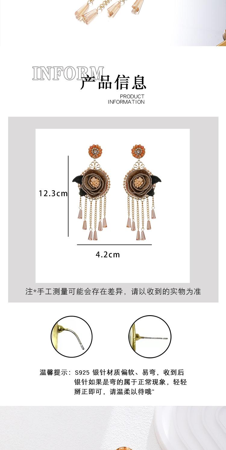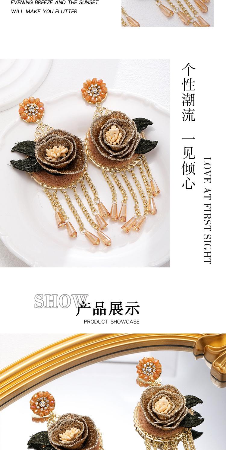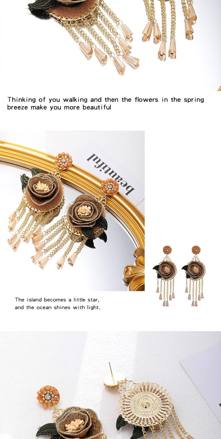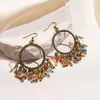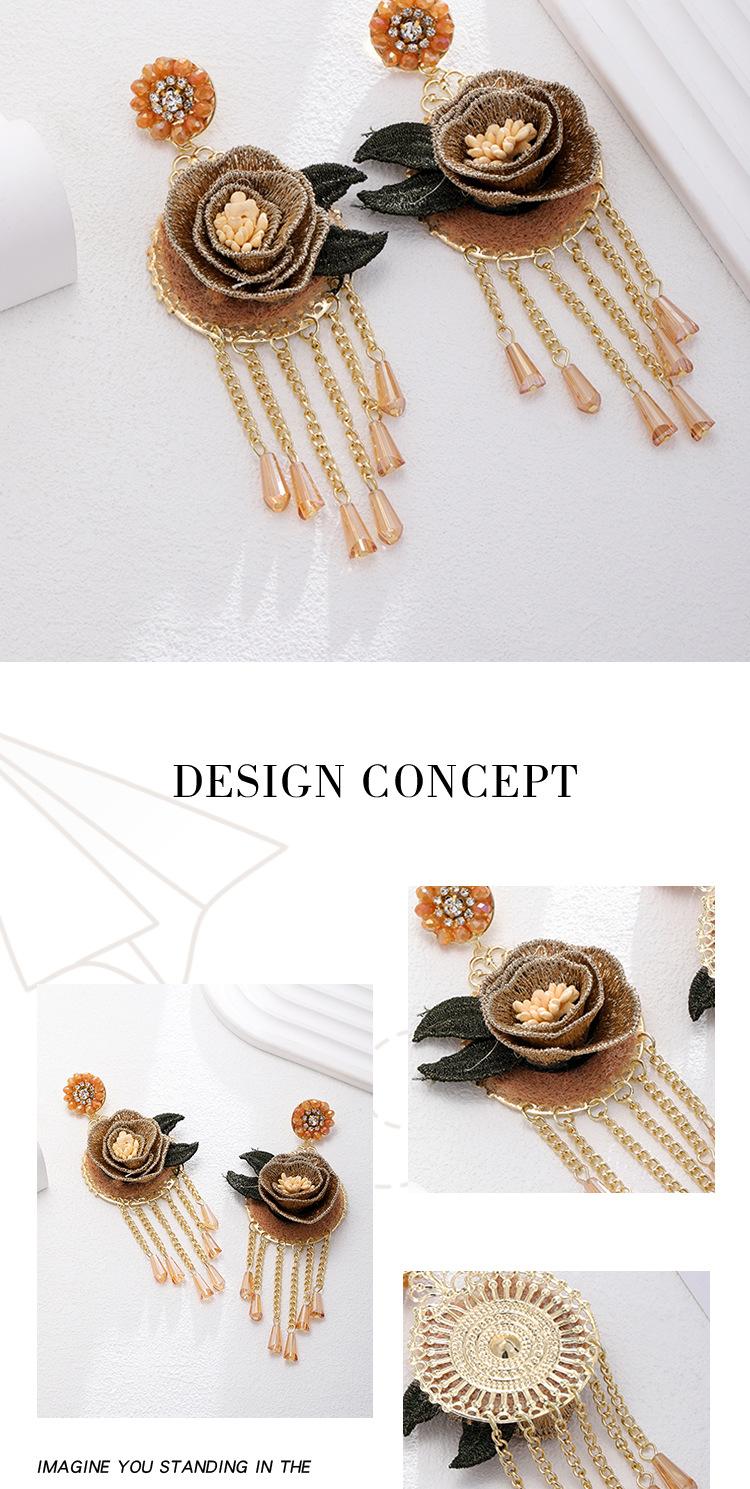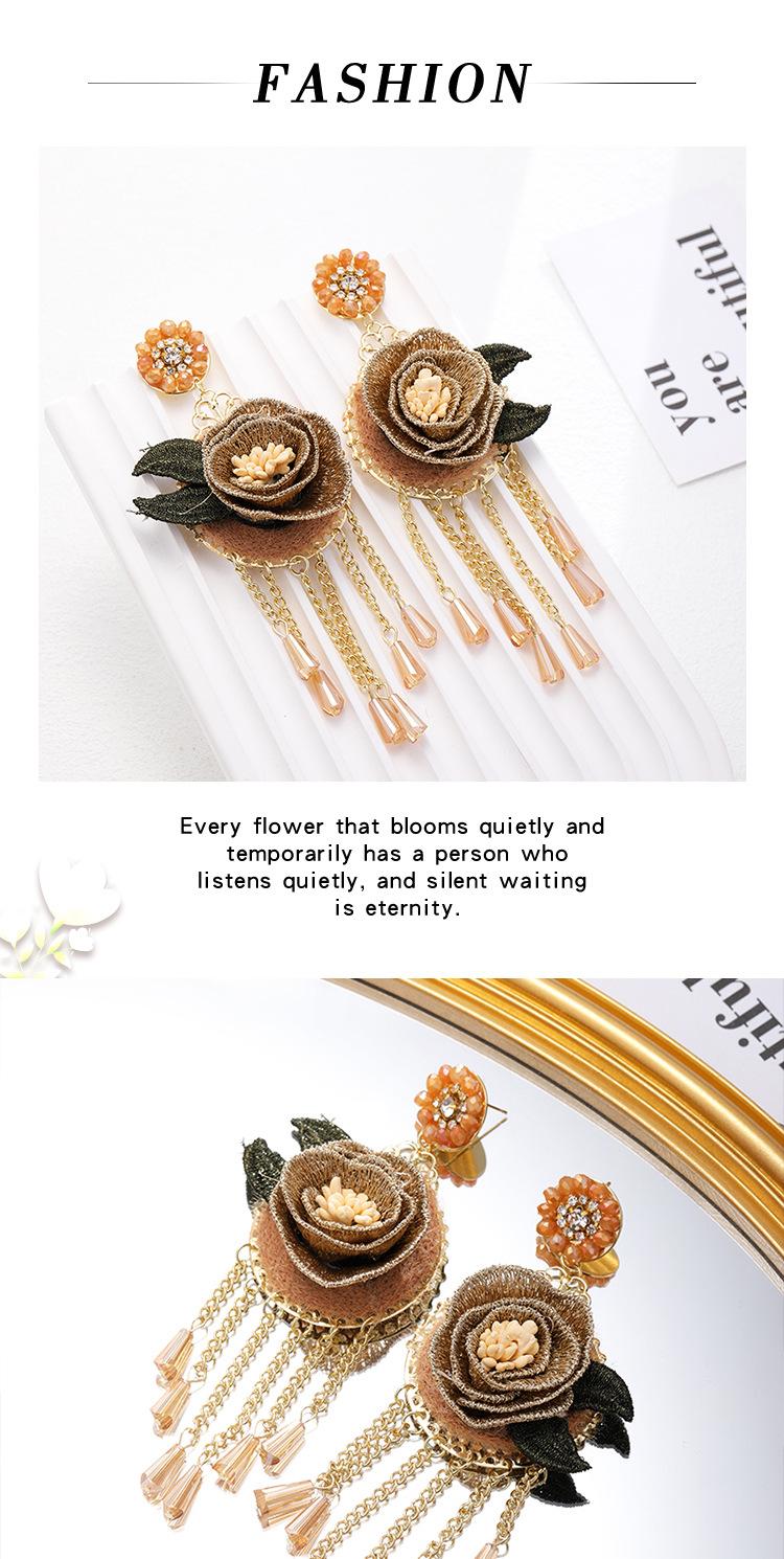 Pendientes con borlas de flores y cristales bordados pesados, estilo étnico, exagerados, de moda, de nicho.