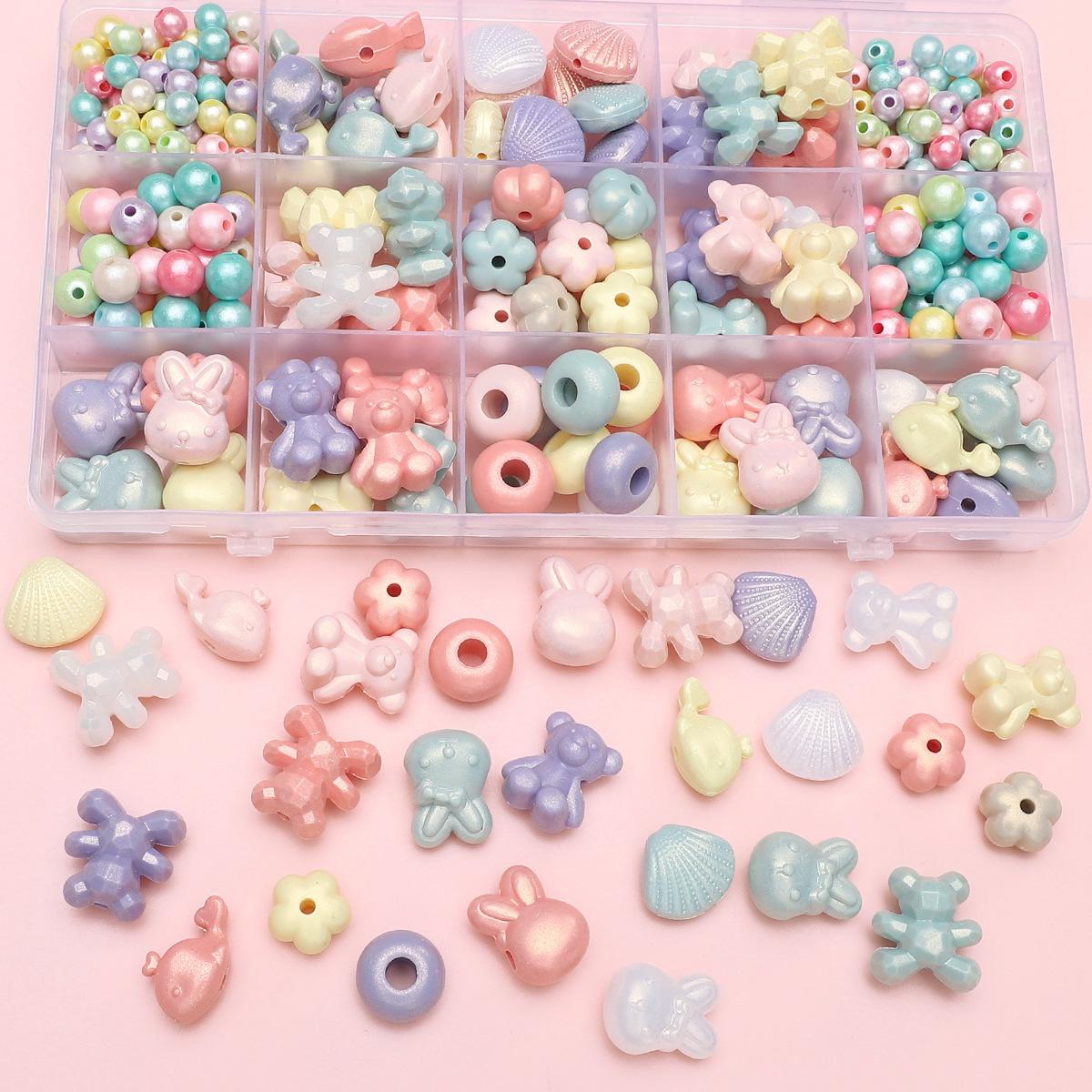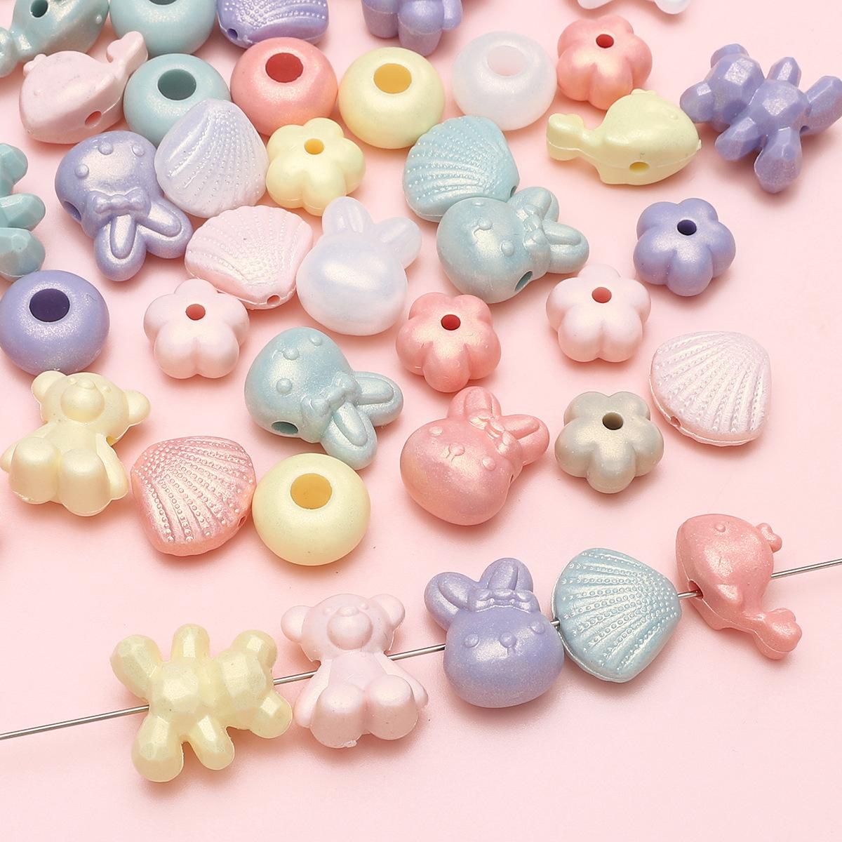 Cuentas de colores impresas en acrílico, cuentas redondas sueltas, hechas a mano, pulsera tejida, collar, material con cuentas, pequeños accesorios de joyería.