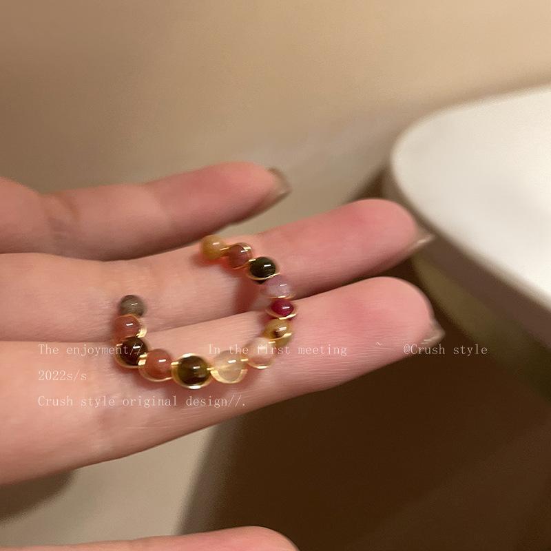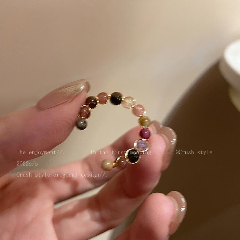 Anillo abierto de turmalina de piedra natural retro, diseño de nicho femenino, anillo de dedo índice de alta calidad, anillo personalizado de moda al por mayor