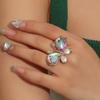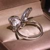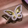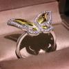 Joyería transfronteriza nuevo anillo de mariposa diamante cuadrado circón europeo y americano simulación señoras doble color anillo de boda punto