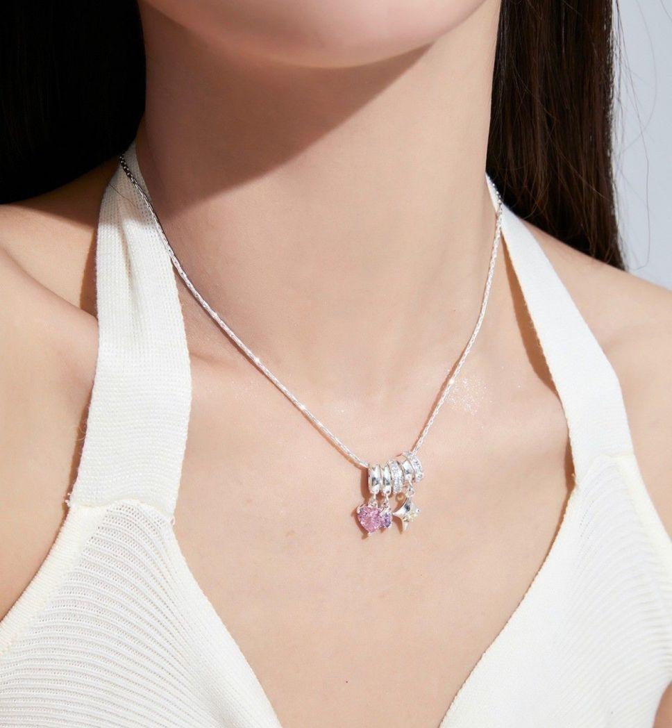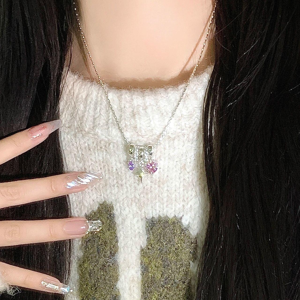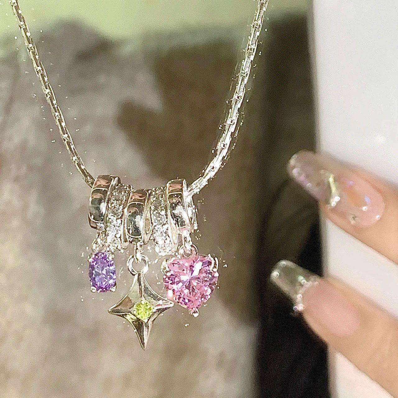 Collar de amor con estrella arcoíris, personalidad de moda femenina, dulce y genial, colgante desmontable, diseño de nicho, cadena de clavícula de color