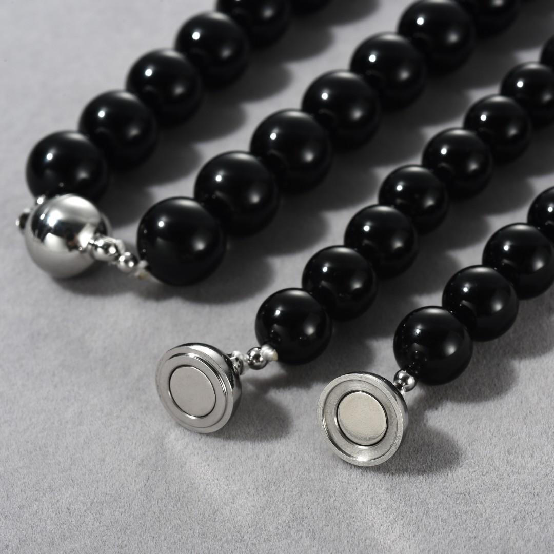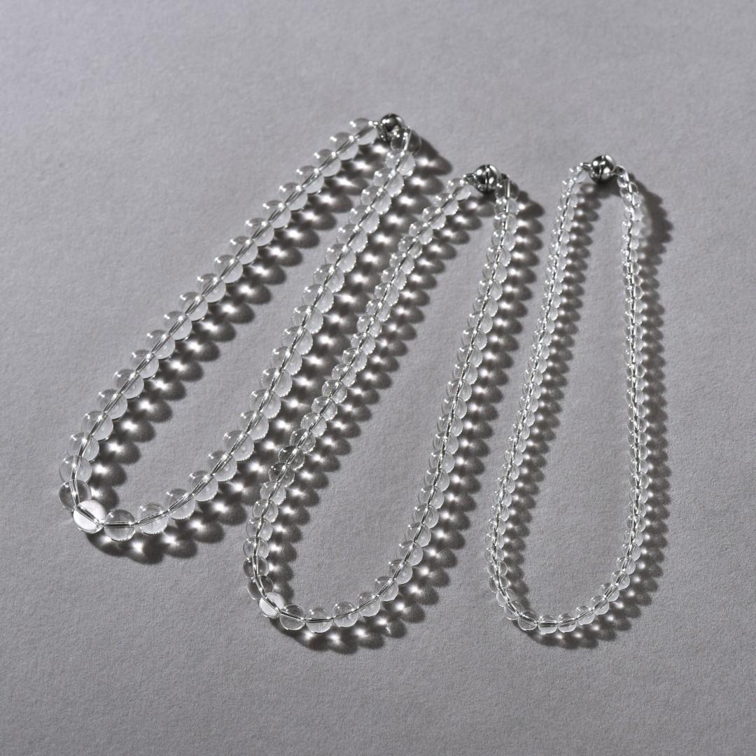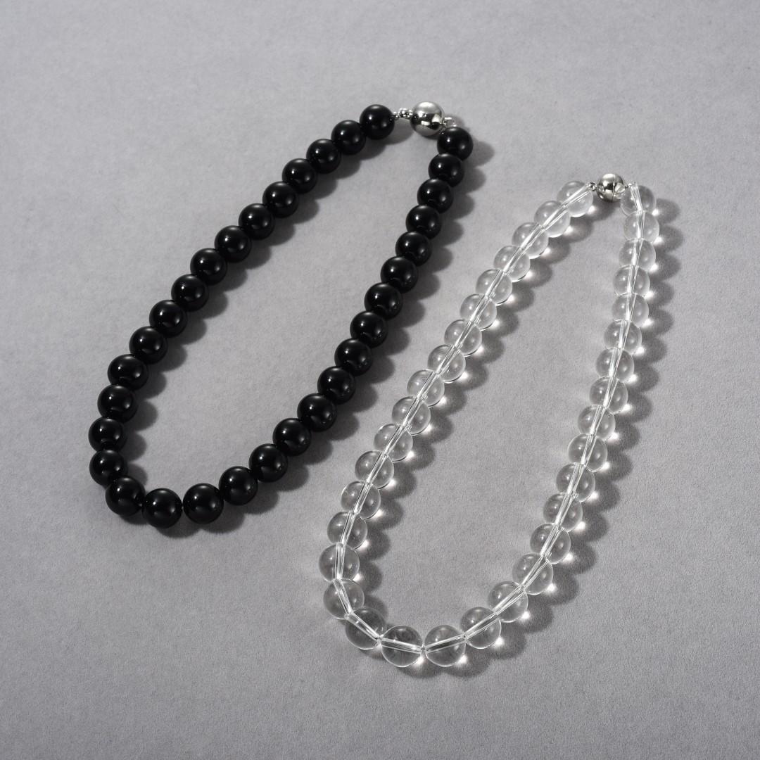 12mm black agate necklace, 12mm transparent crystal necklace, 10mm transparent crystal necklace, 8mm transpare...