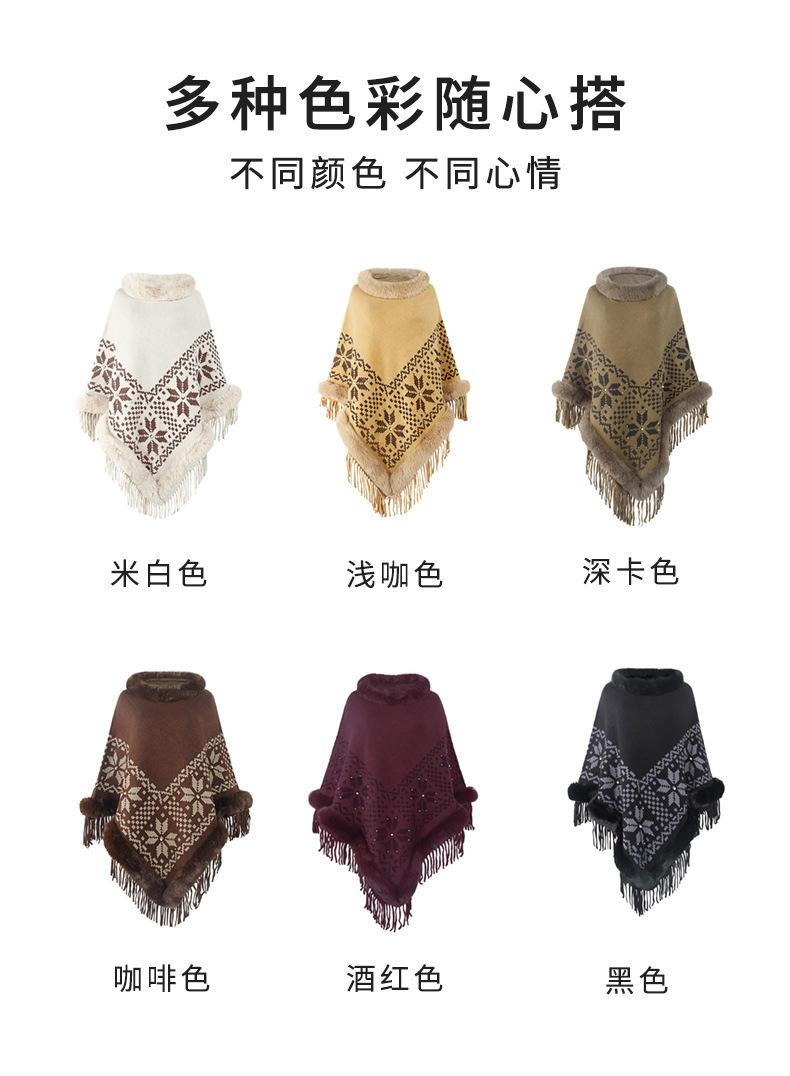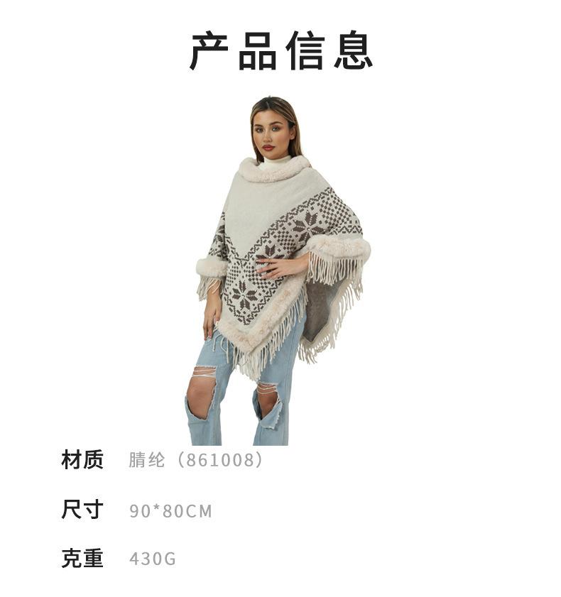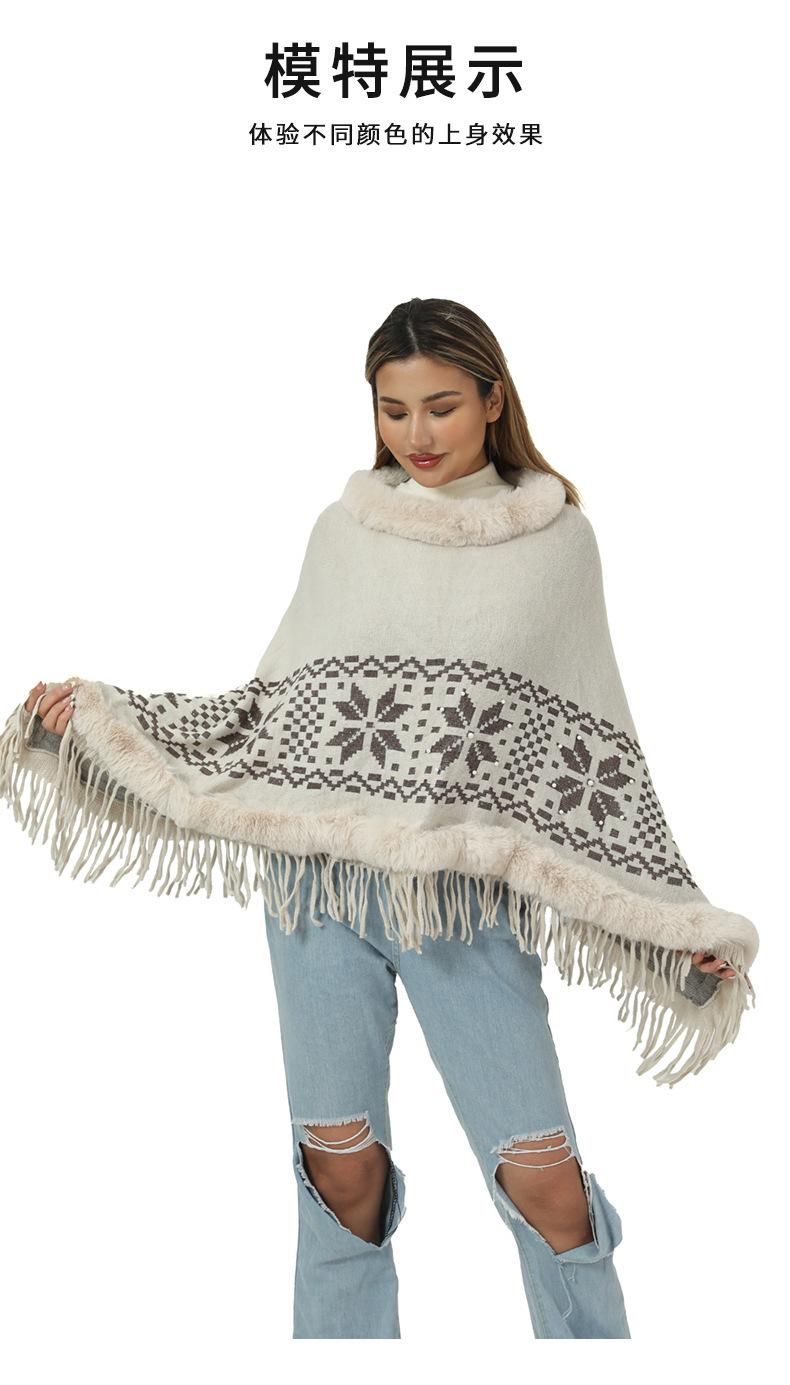 Otoño e invierno nuevo chal capa transfronterizo chal europeo y americano comercio exterior chal de punto cuello de piel dobladillo de borlas con cuentas suéter para mujer