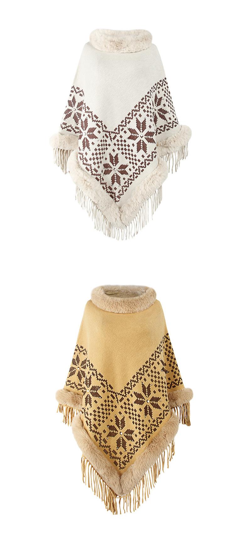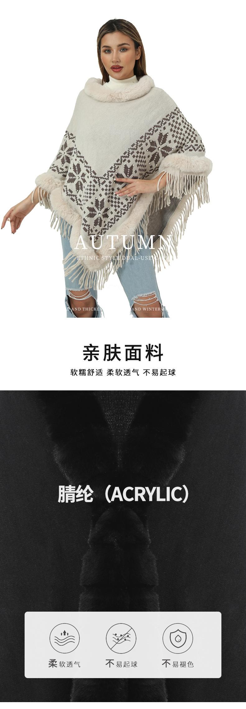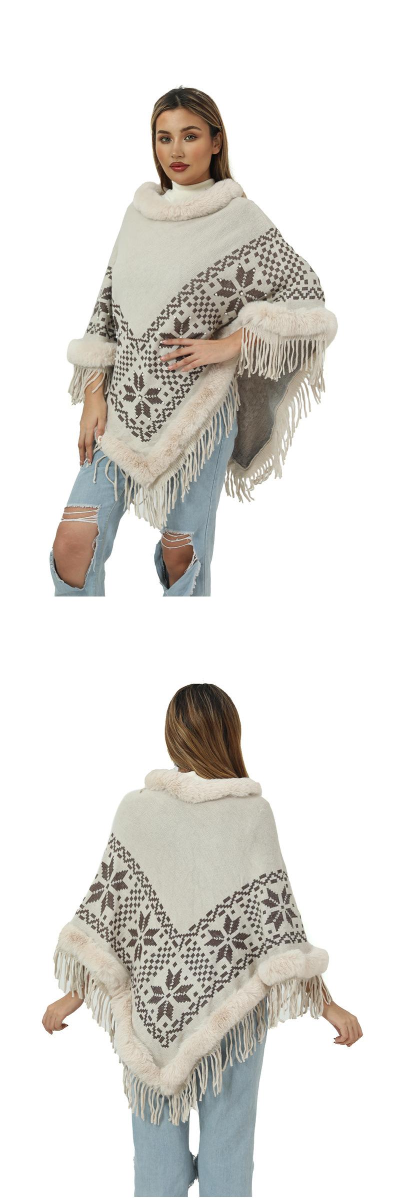Otoño e invierno nuevo chal capa transfronterizo chal europeo y americano comercio exterior chal de punto cuello de piel dobladillo de borlas con cuentas suéter para mujer