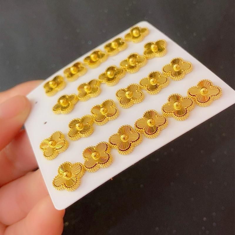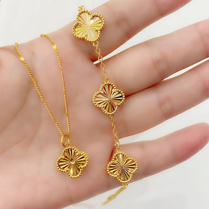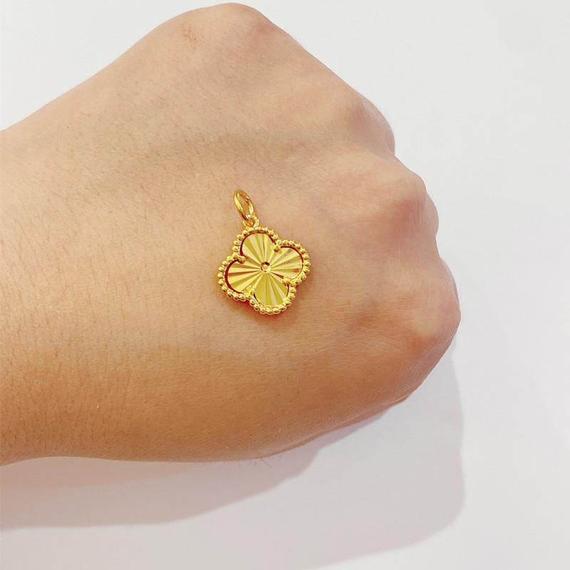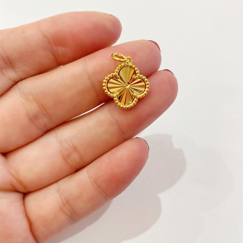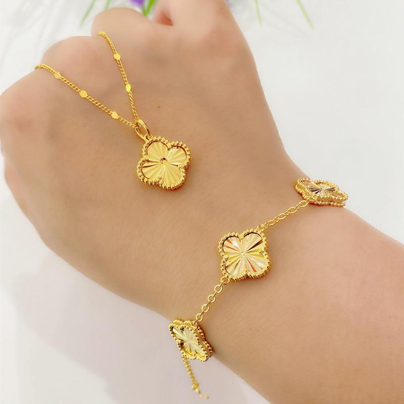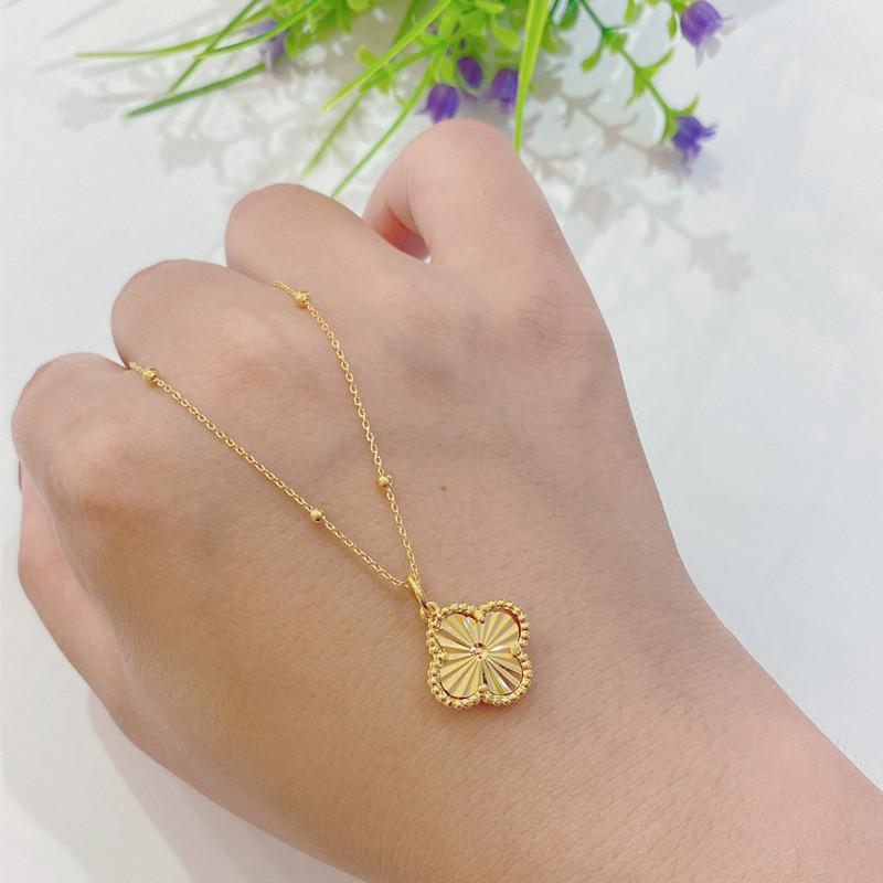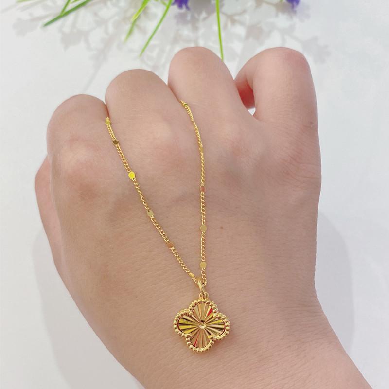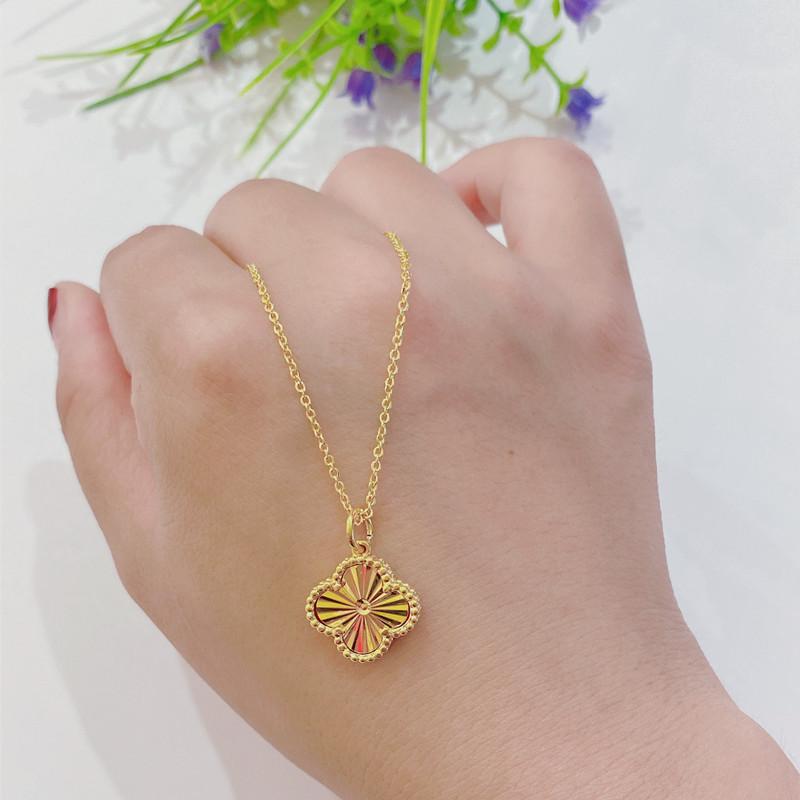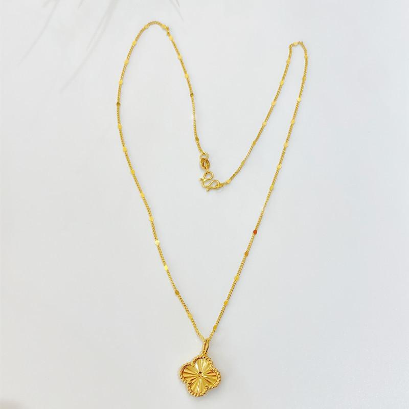 Colgante de trébol de cuatro hojas de doble cara de un solo color con cuerpo de oro arena de Vietnam, collar de latón chapado en oro, cadena de clavícula para mujer, venta al por mayor