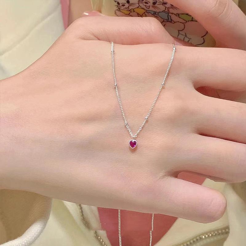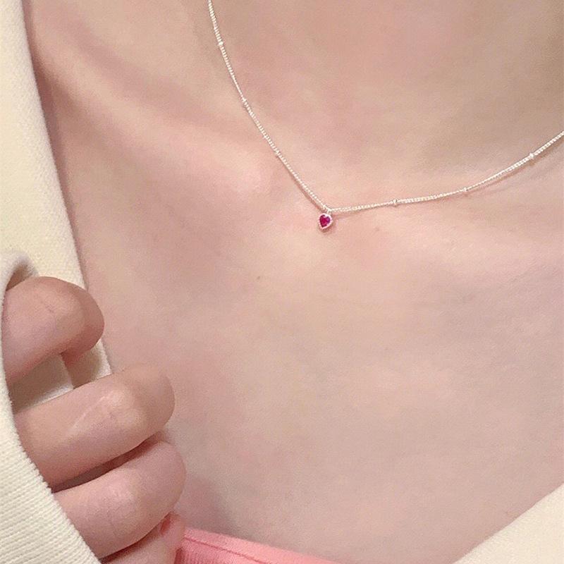 Collar de amor estilo japonés y coreano con colgante pequeño de corazón rojo para mujer, cadena de clavícula sencilla y moderna.