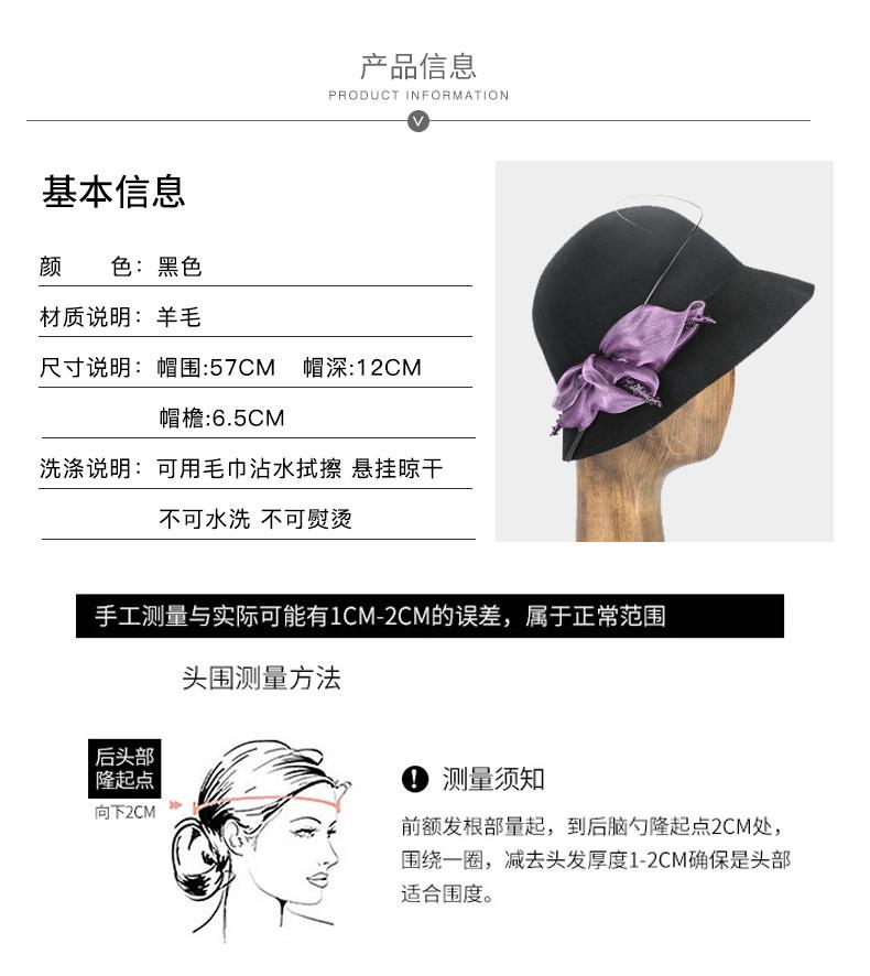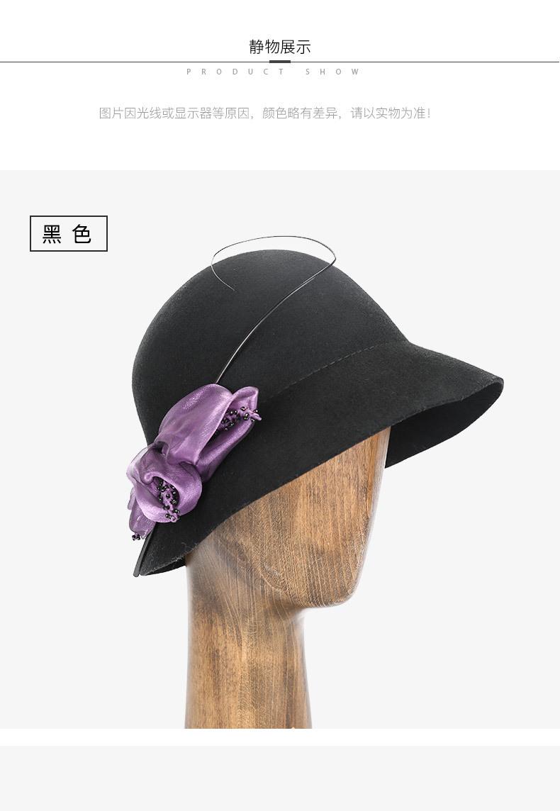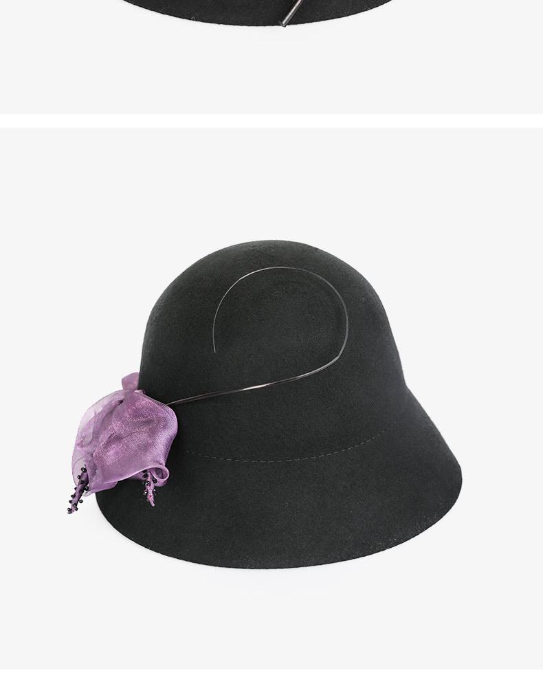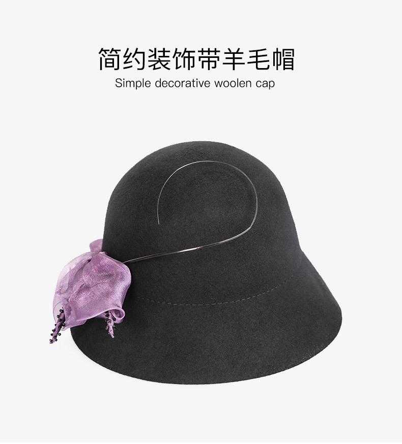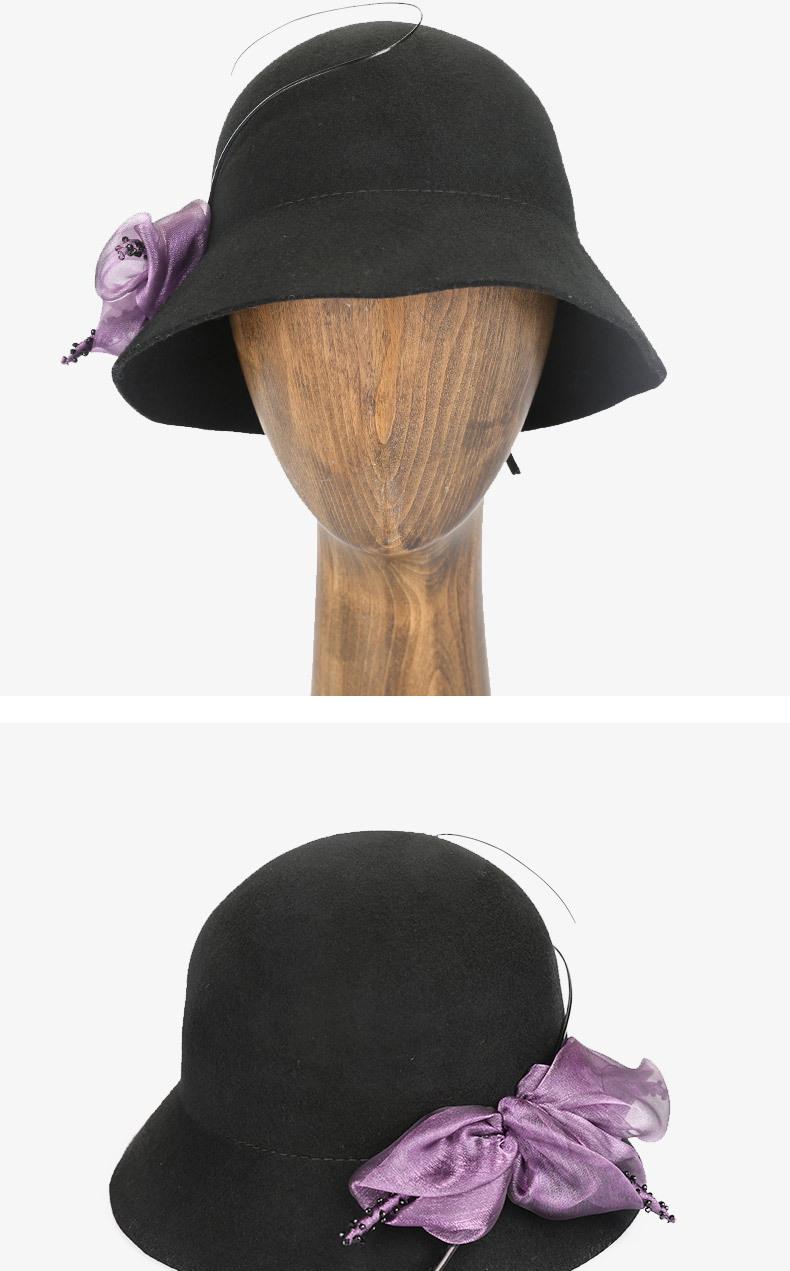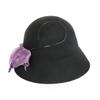 Linglong otoño e invierno simple elegante moda decorativo con sombrero de fieltro de lana de flor con sombrero de cuenca de cúpula retro Sombrero de copa
