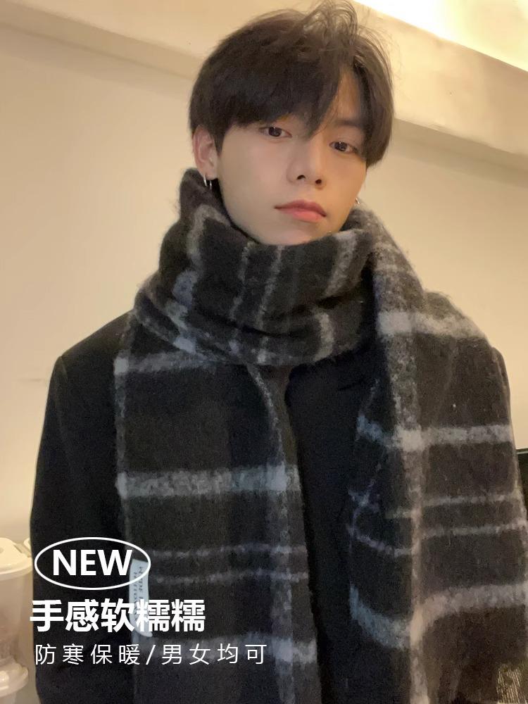 Bufanda nueva de otoño e invierno 2023 para hombre, bufanda cálida de lana a juego para parejas, bufanda a cuadros de alta calidad, regalo para novio