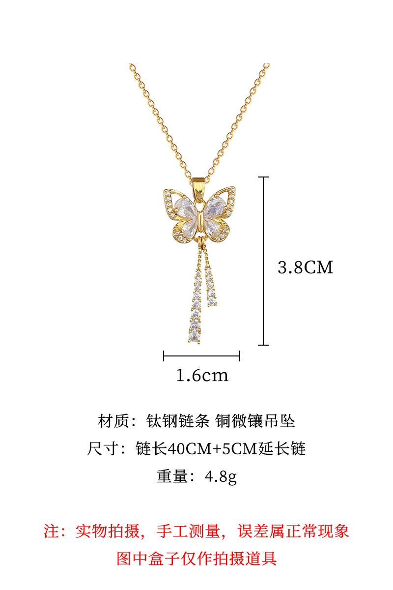 [Acero titanio] Elegante collar de diamantes con borlas de mariposa, ligero y lujoso, para mujer, con cadena de clavícula que combina con todo, ideal para celebridades de Internet. Cadena de acero titanio.