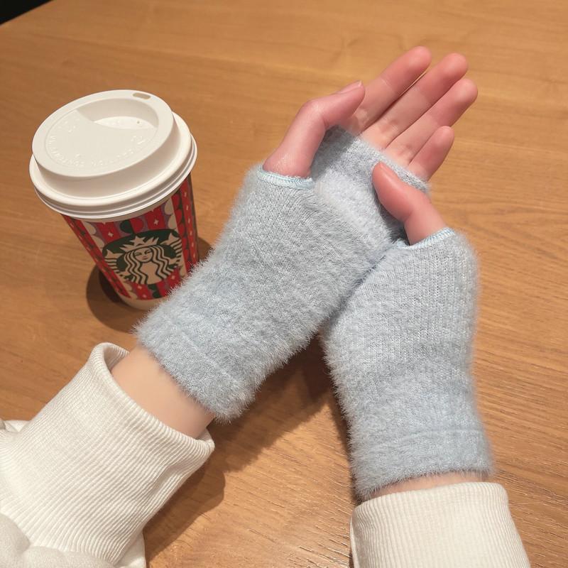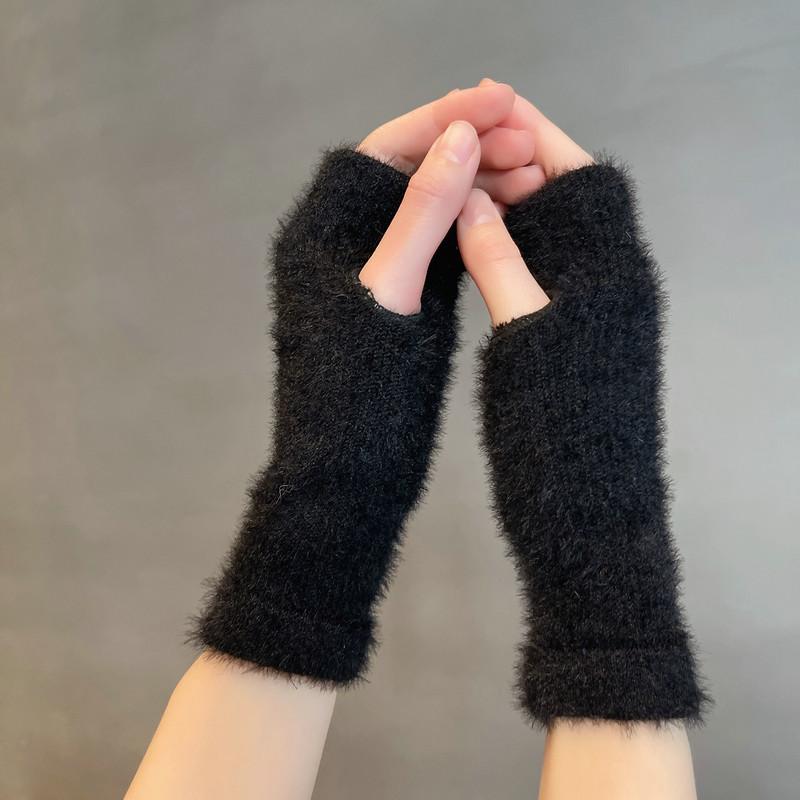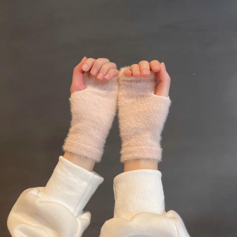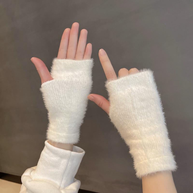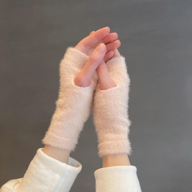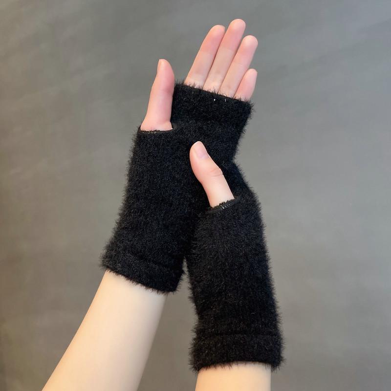 Guantes de felpa de visón sintético de medio dedo para niños y niñas, guantes sin dedos para estudiantes, mangas cálidas para invierno, protección para la muñeca, con forro polar y engrosados