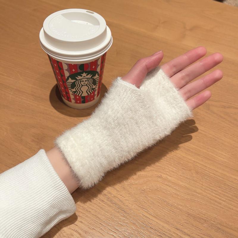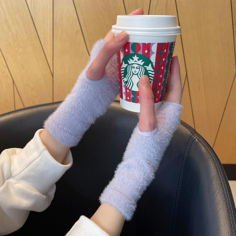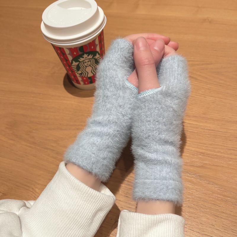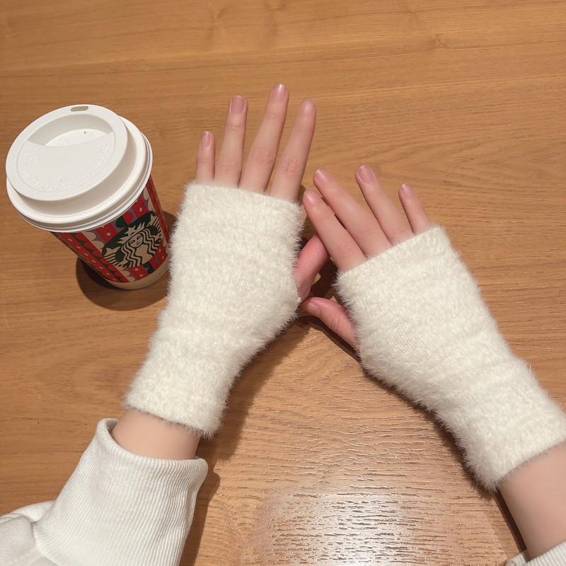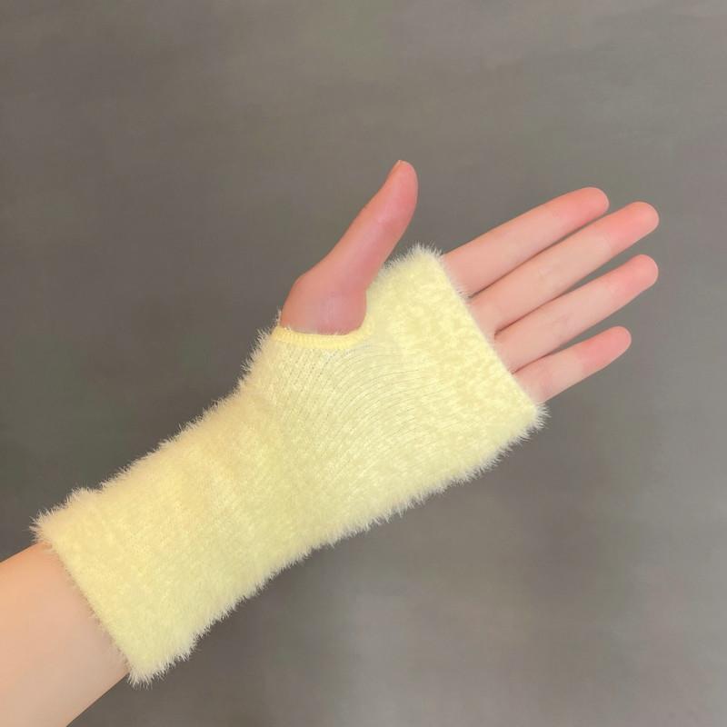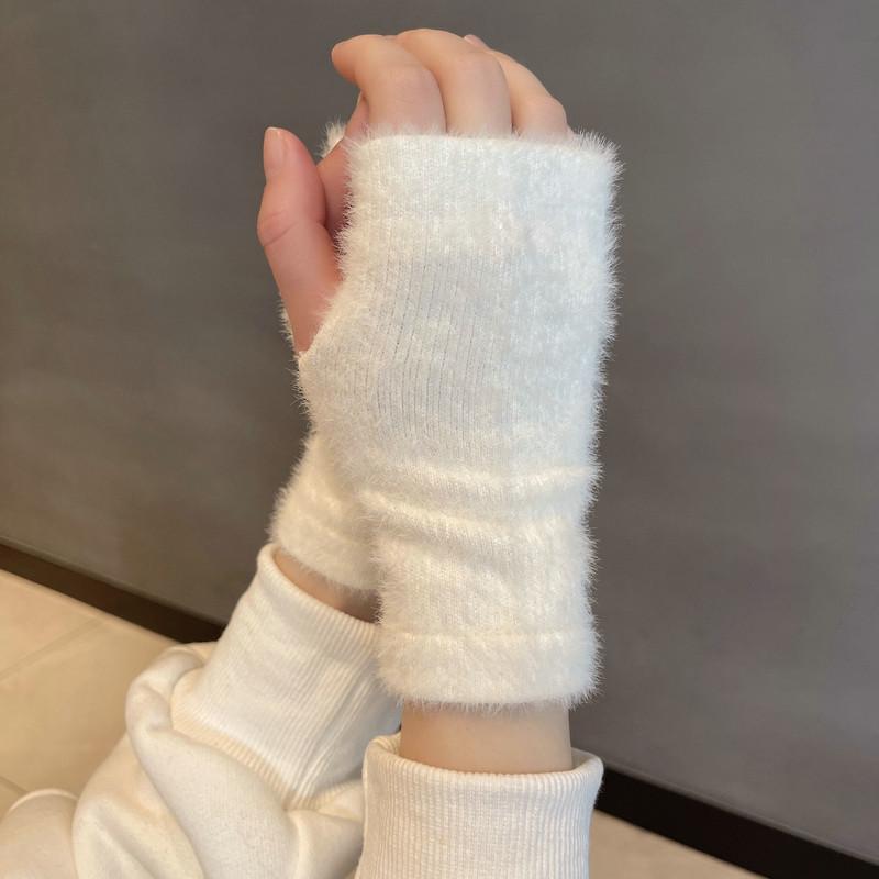 Guantes de felpa de visón sintético de medio dedo para niños y niñas, guantes sin dedos para estudiantes, mangas cálidas para invierno, protección para la muñeca, con forro polar y engrosados