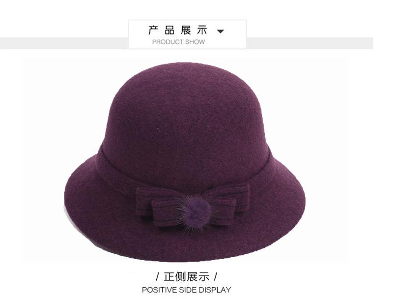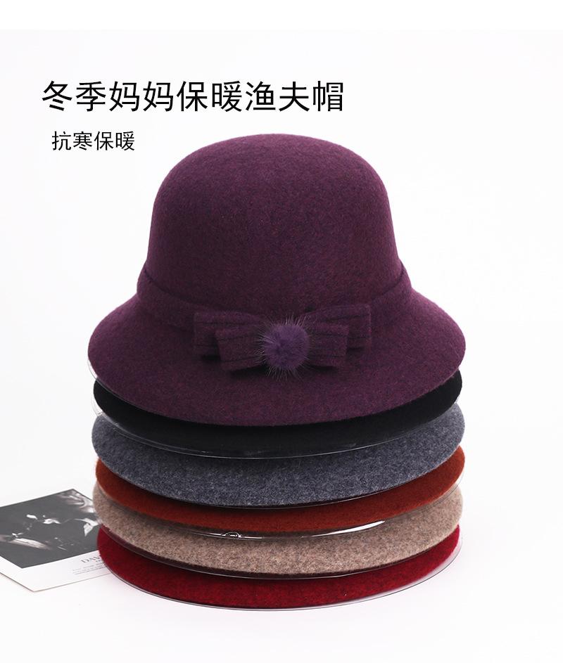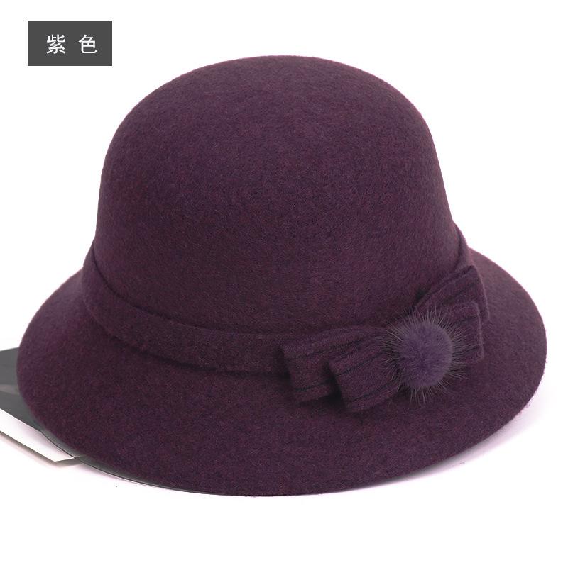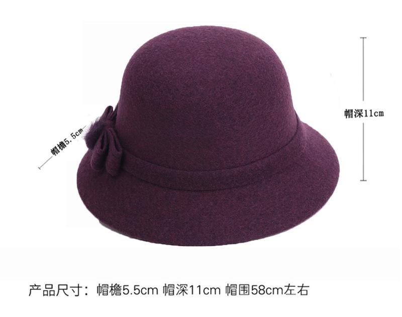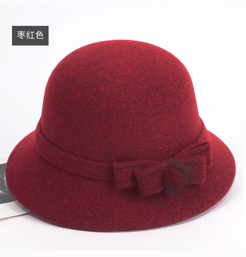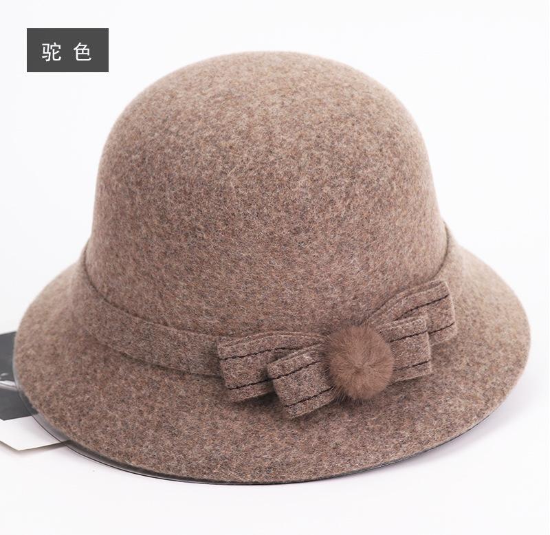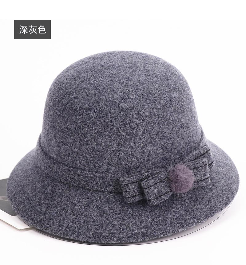 Sombrero de lana de otoño e invierno para suegra de mediana edad sombrero de mujer vintage lazo cúpula ala pequeña sombrero de cubeta sombrero de pescador