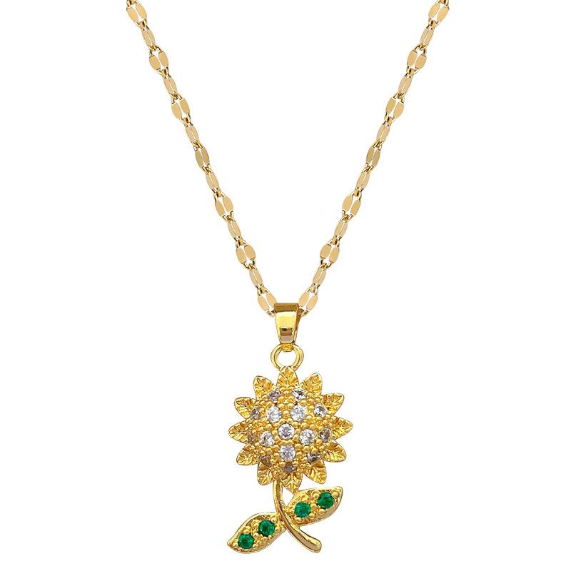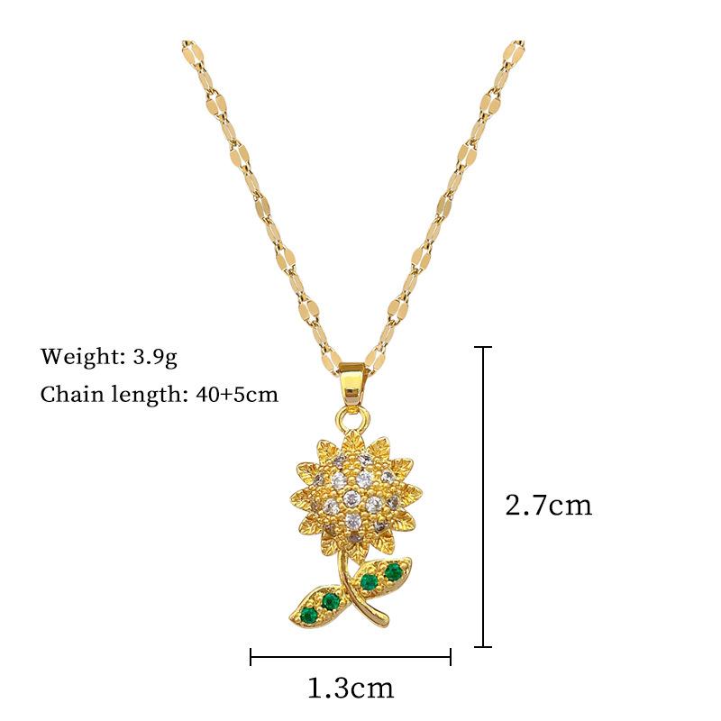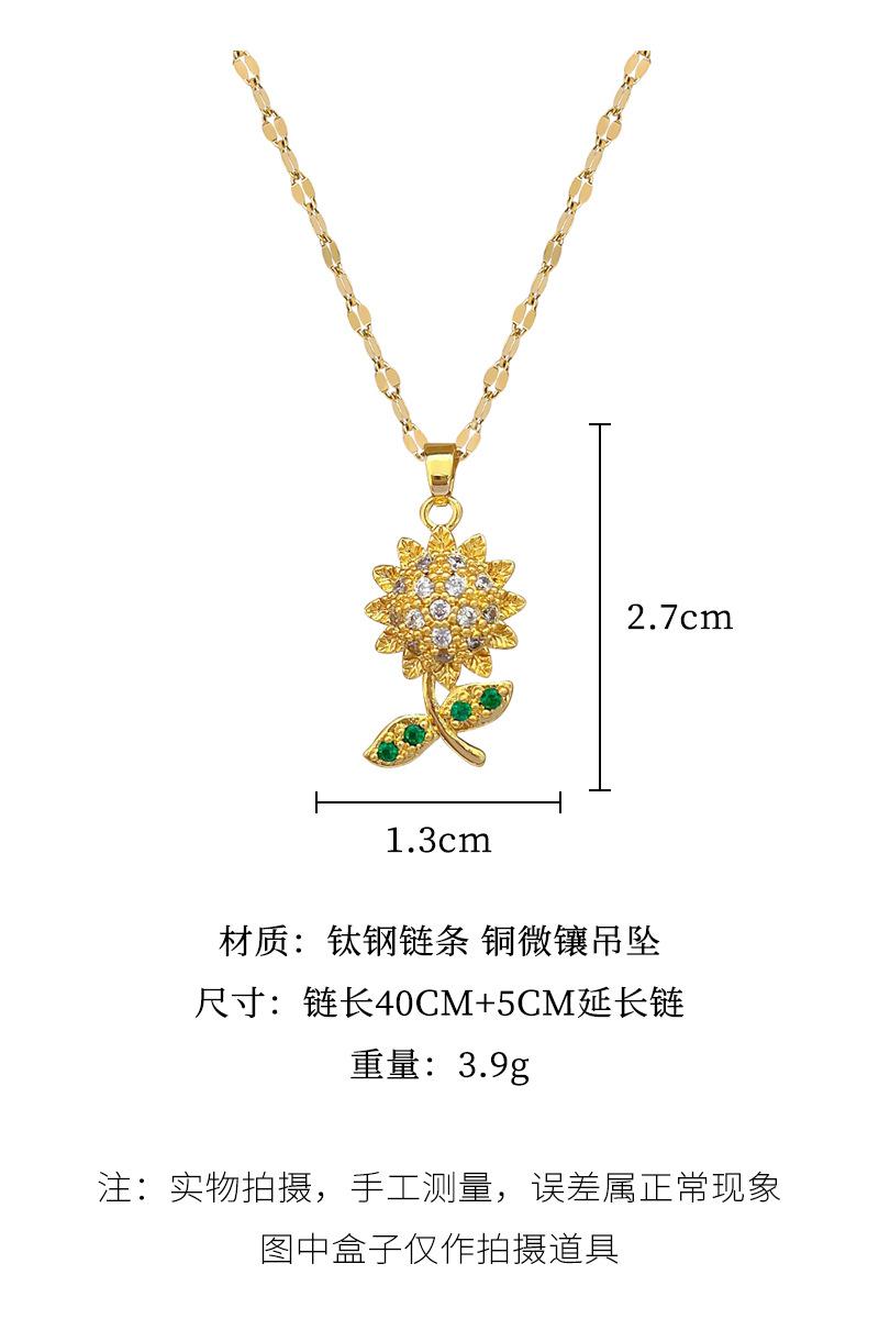 [Acero de titanio] Collar elegante y lujoso con diseño de girasol y hojas, cadena de clavícula para mujer, combinable con todo.
