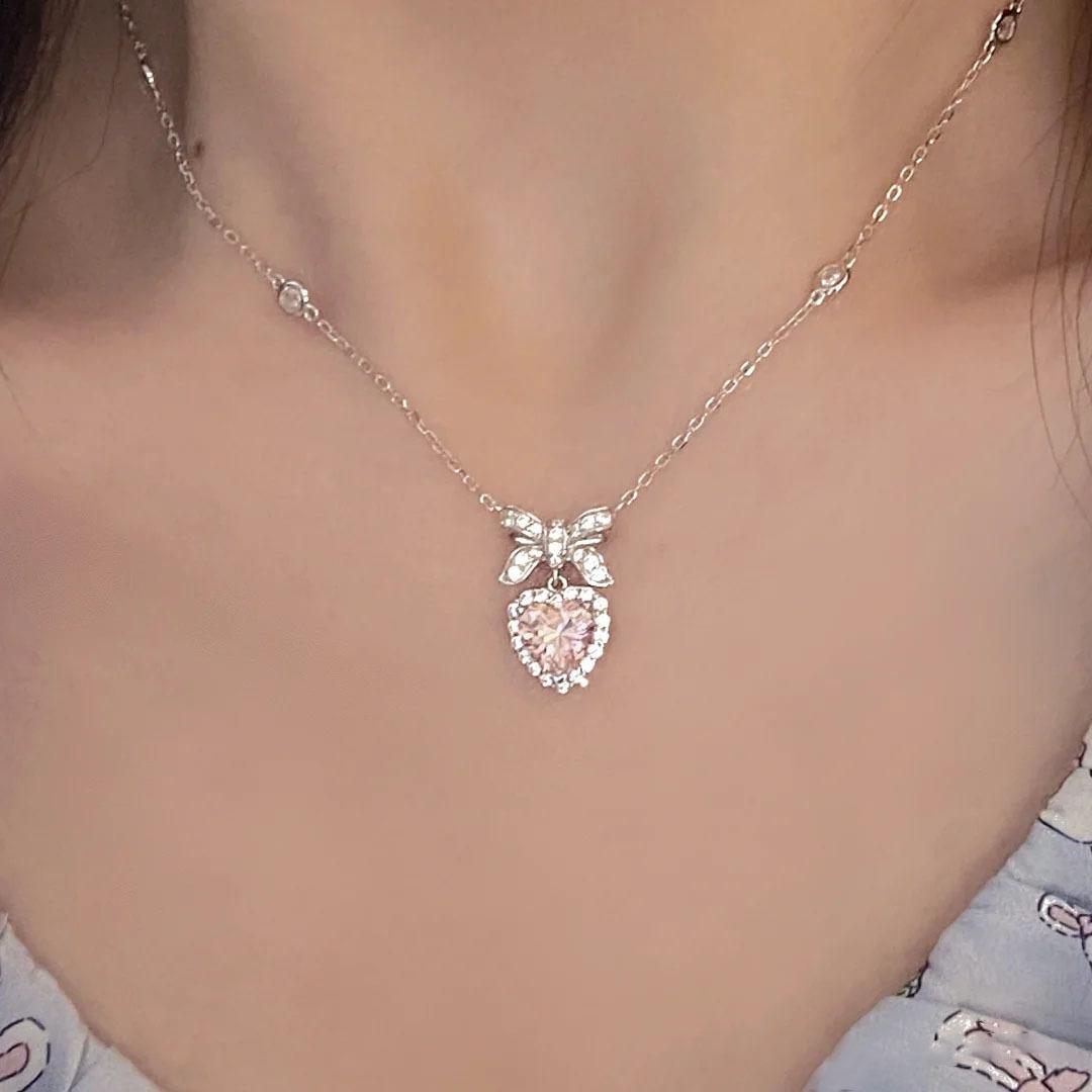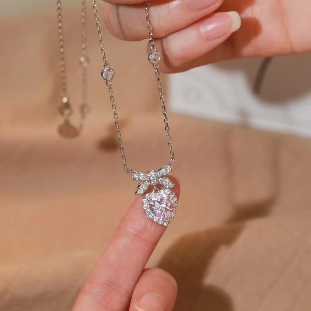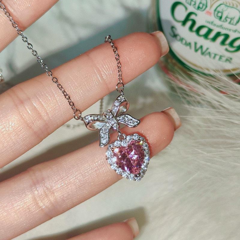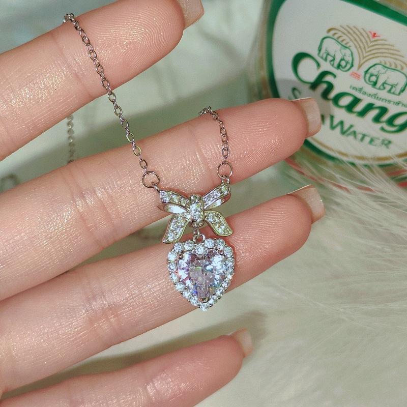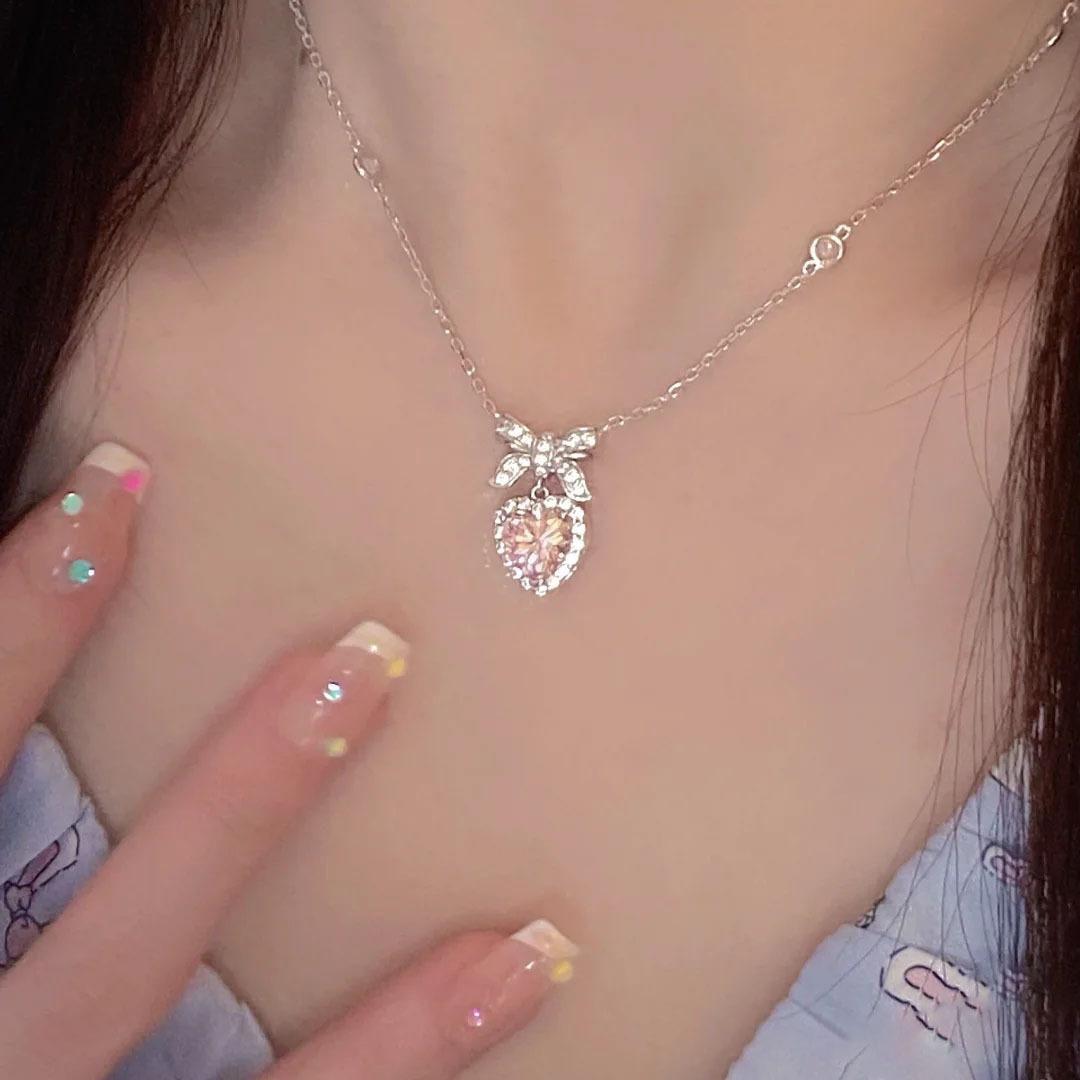 Collar de nudo de princesa para mujer, ligero, de lujo, con lazo de corazón de amor y circonita, diseño de nicho, cadena de clavícula de alta calidad que combina con todo.