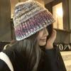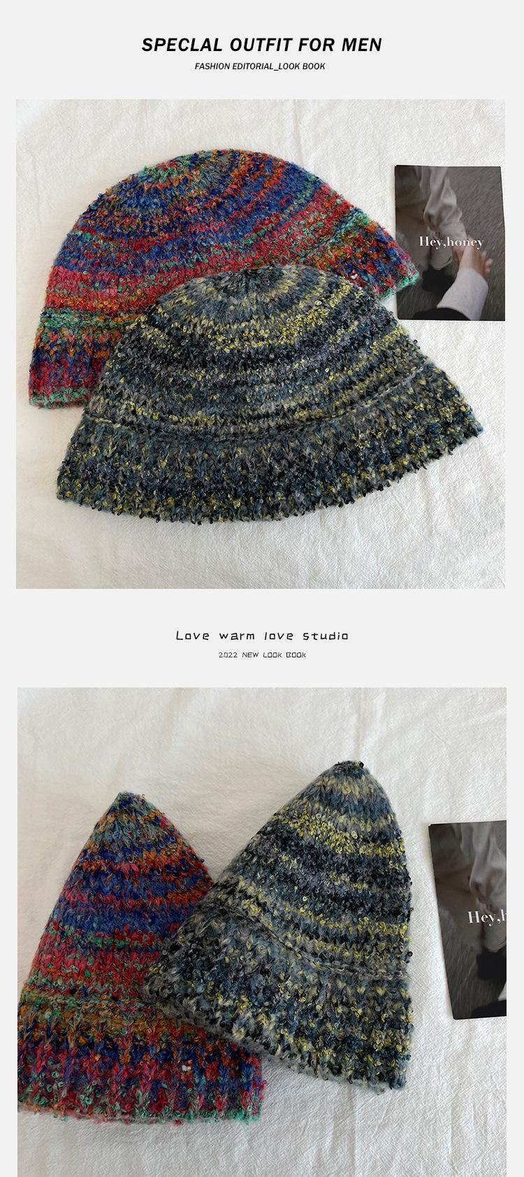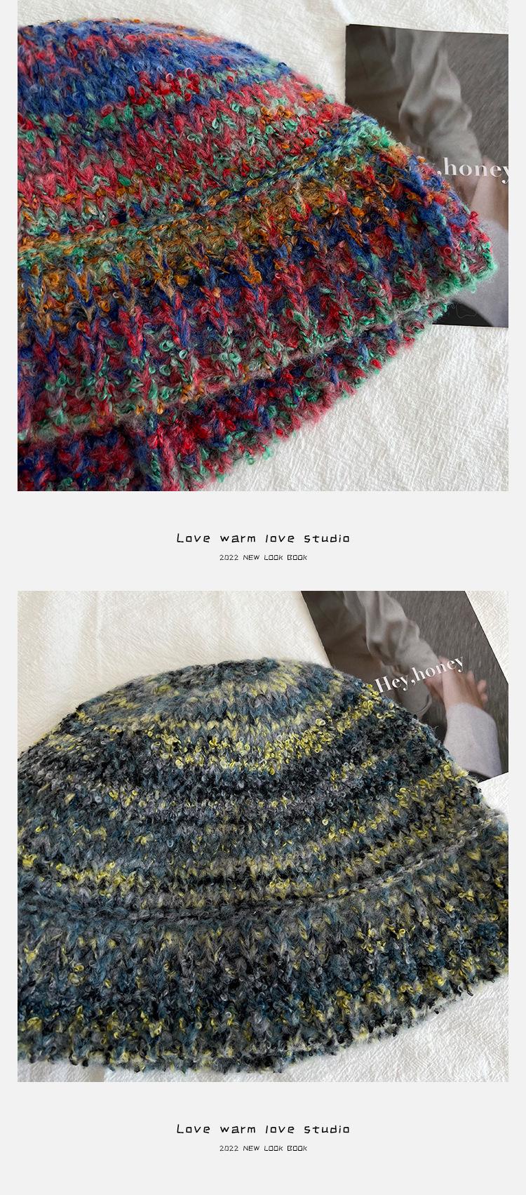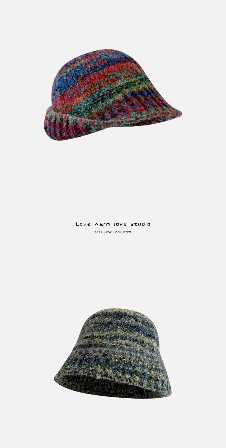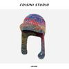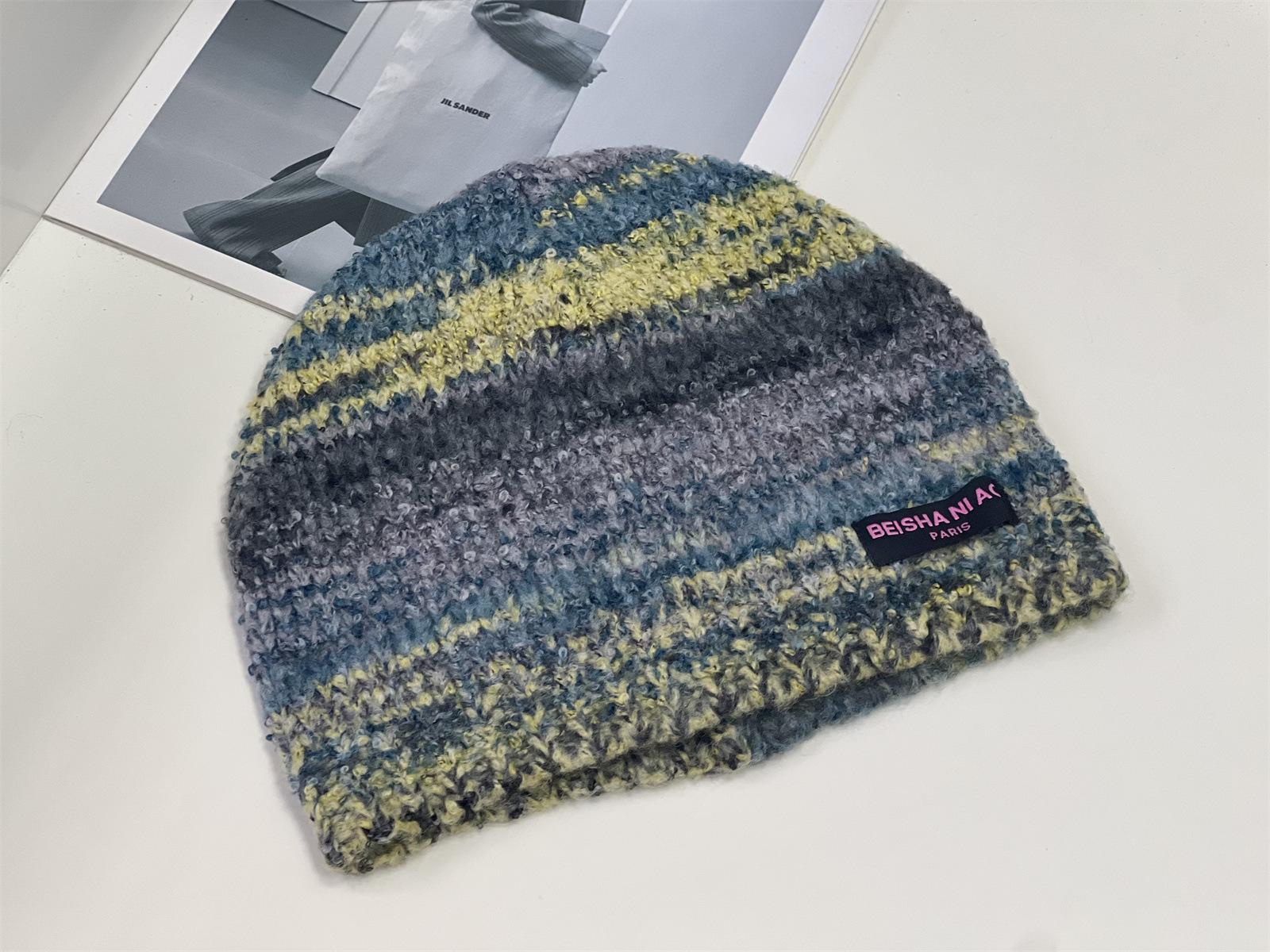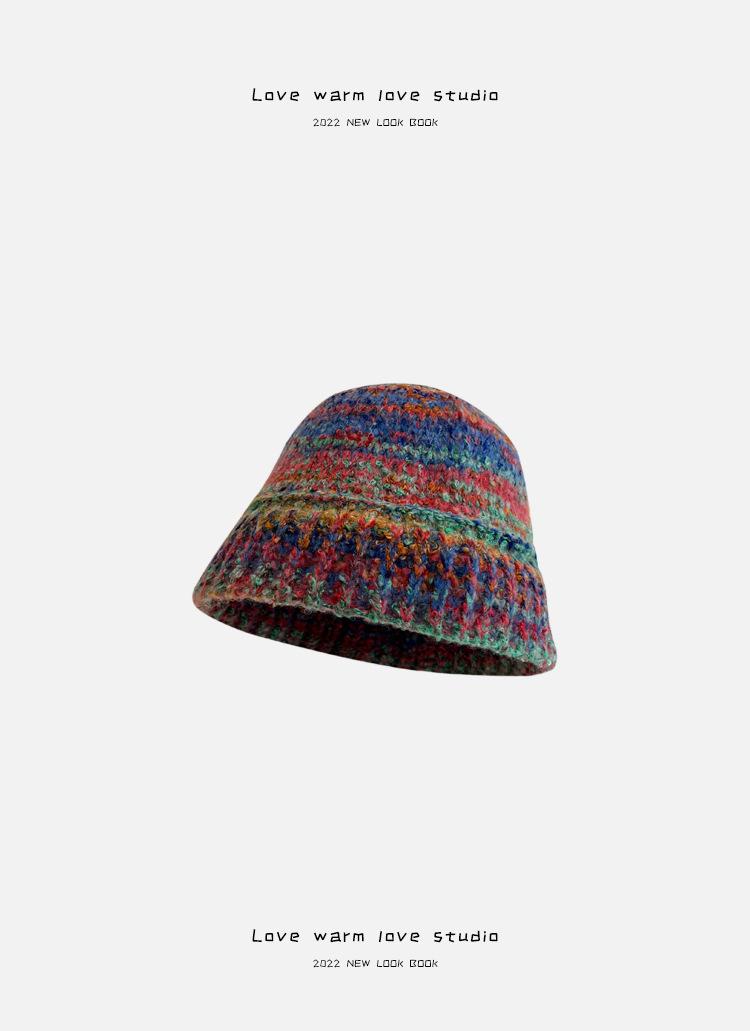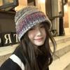 Gorro de pescador de punto pequeño con diseño de nicho, de lana con degradado de color retro, para mujer, otoño e invierno, cálido, con protección para las orejas