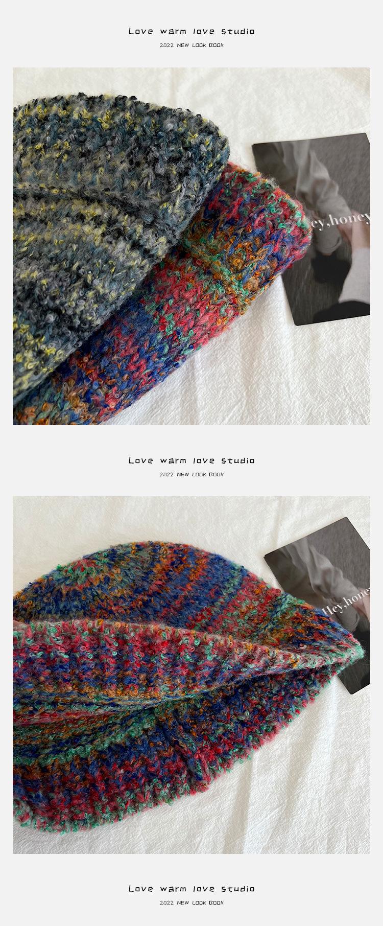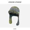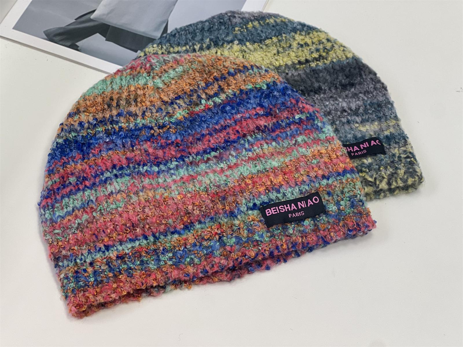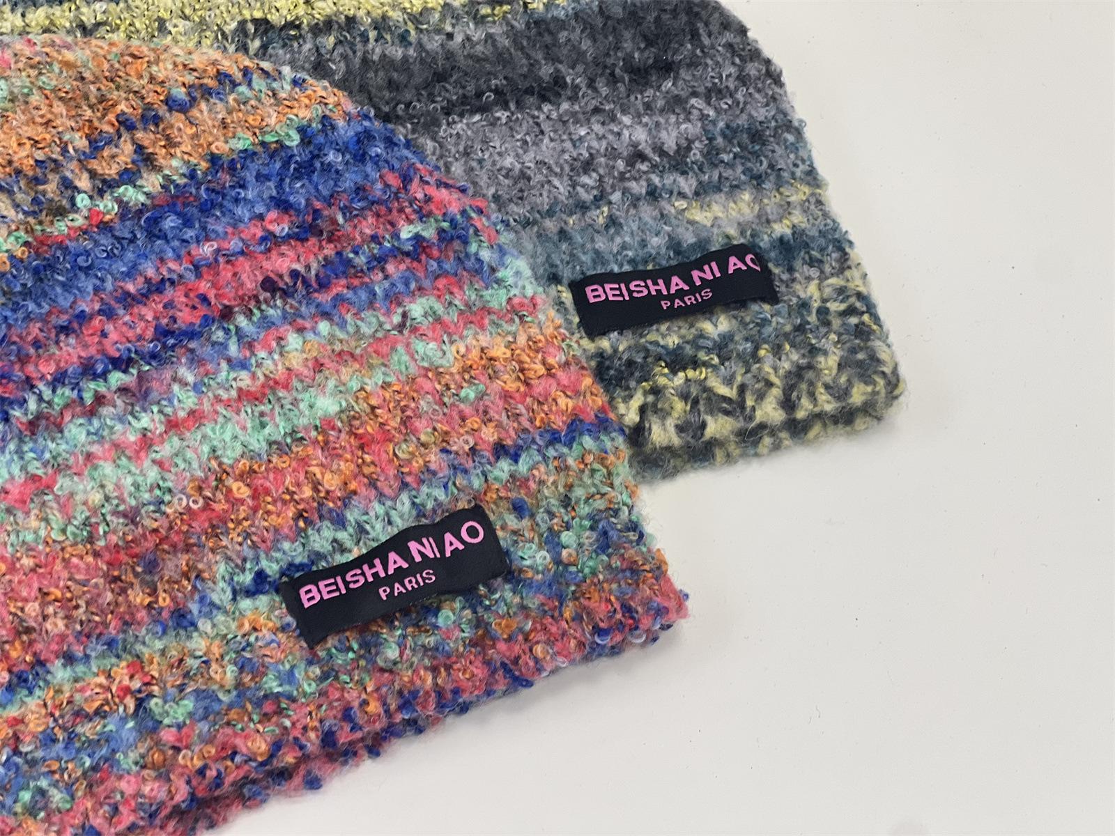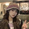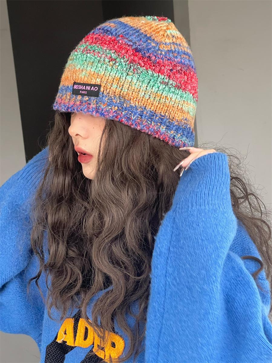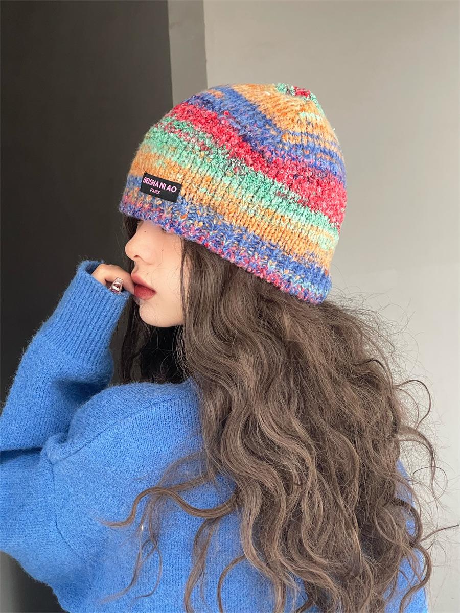 Gorro de pescador de punto pequeño con diseño de nicho, de lana con degradado de color retro, para mujer, otoño e invierno, cálido, con protección para las orejas