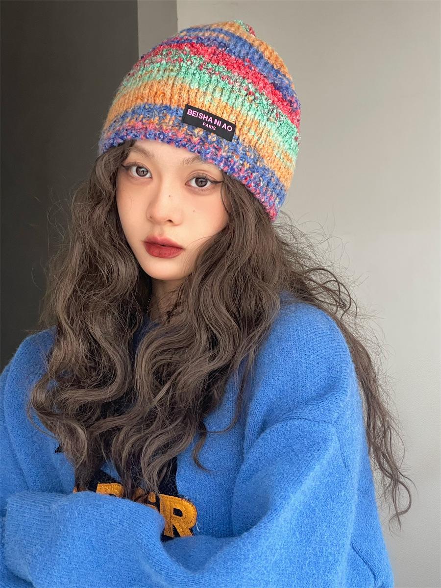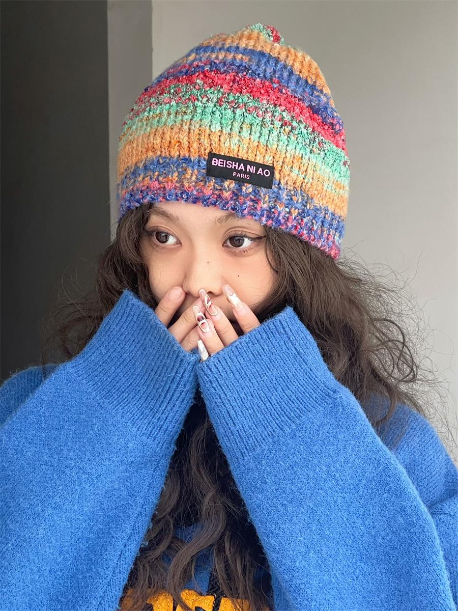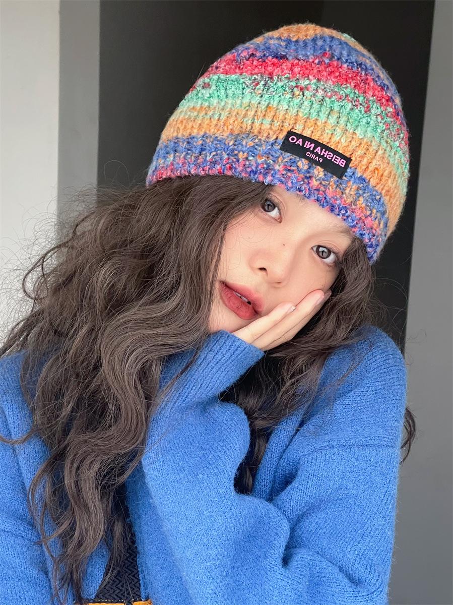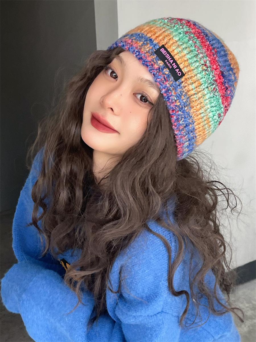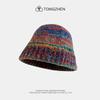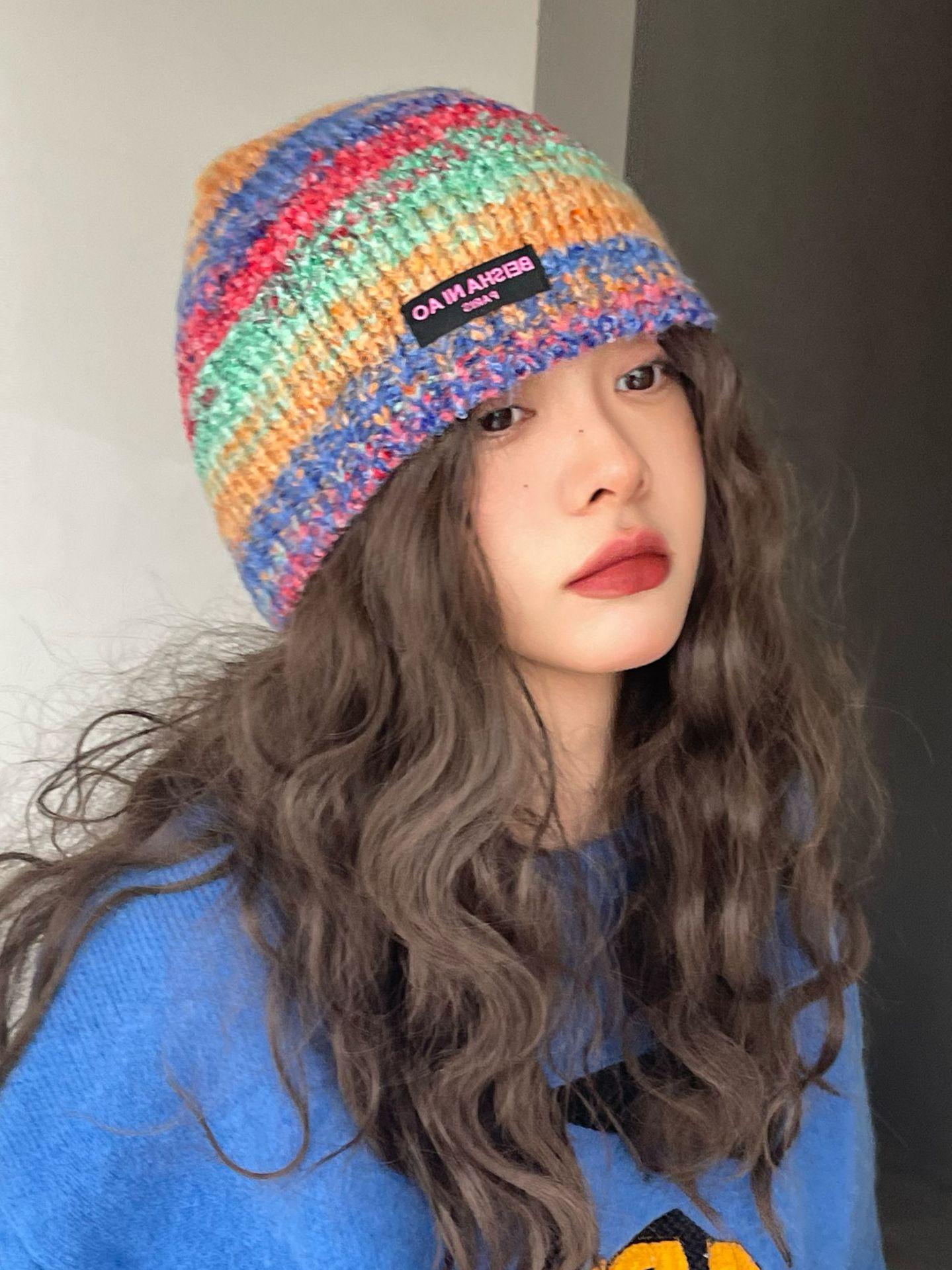 Gorro de pescador de punto pequeño con diseño de nicho, de lana con degradado de color retro, para mujer, otoño e invierno, cálido, con protección para las orejas
