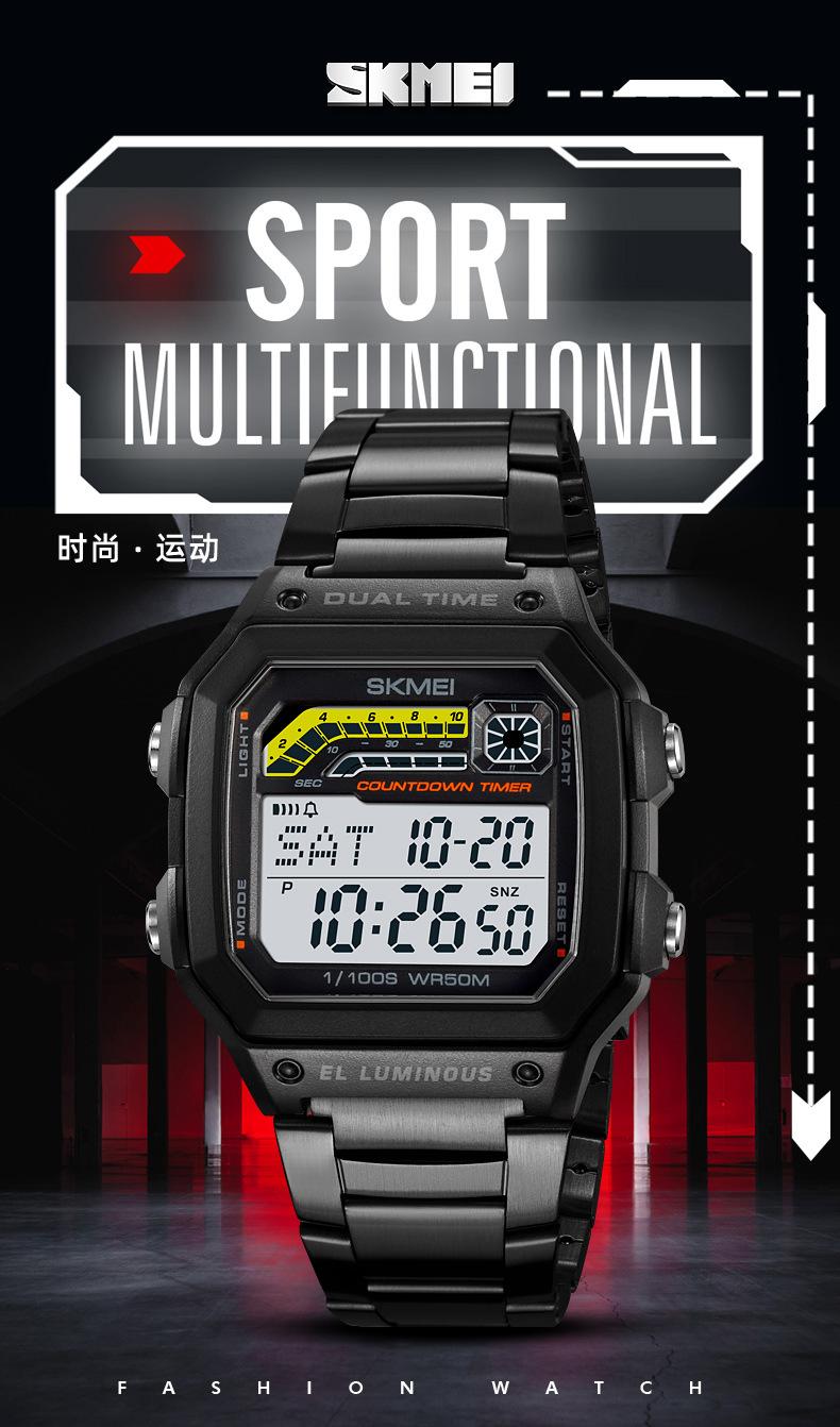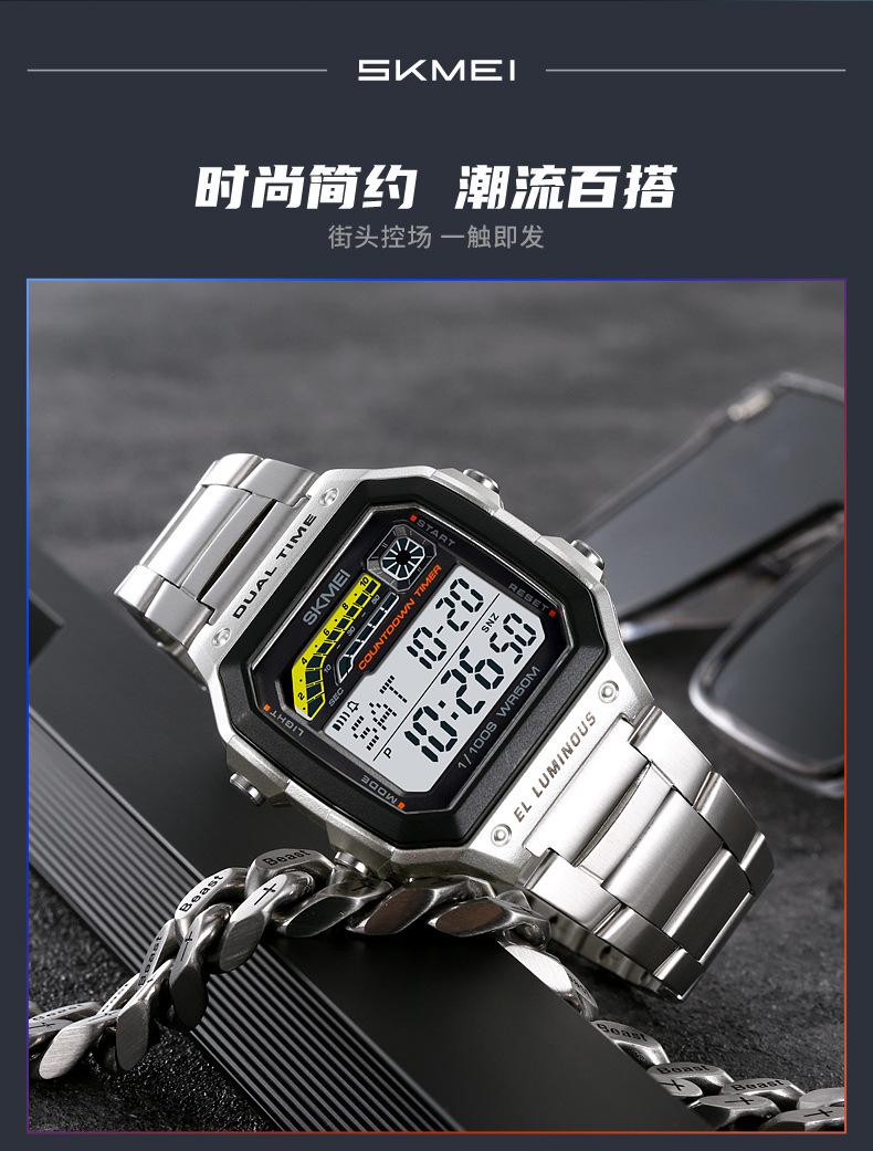 Hermoso Reloj Electrónico Deportivo Multifuncional Retro Clásico de Time Square Resistente al Agua Reloj Electrónico de Moda Cuadrado Reloj Luminoso