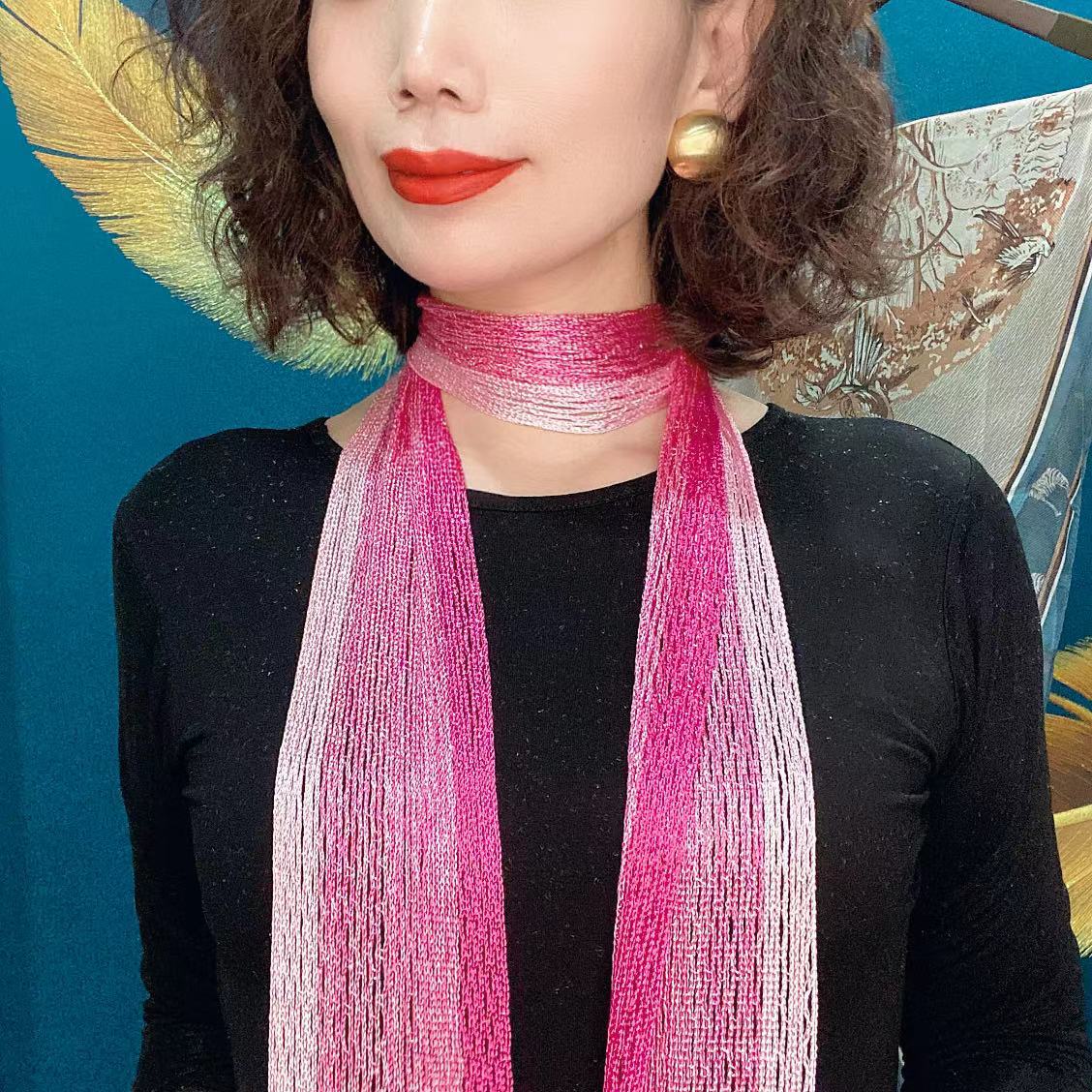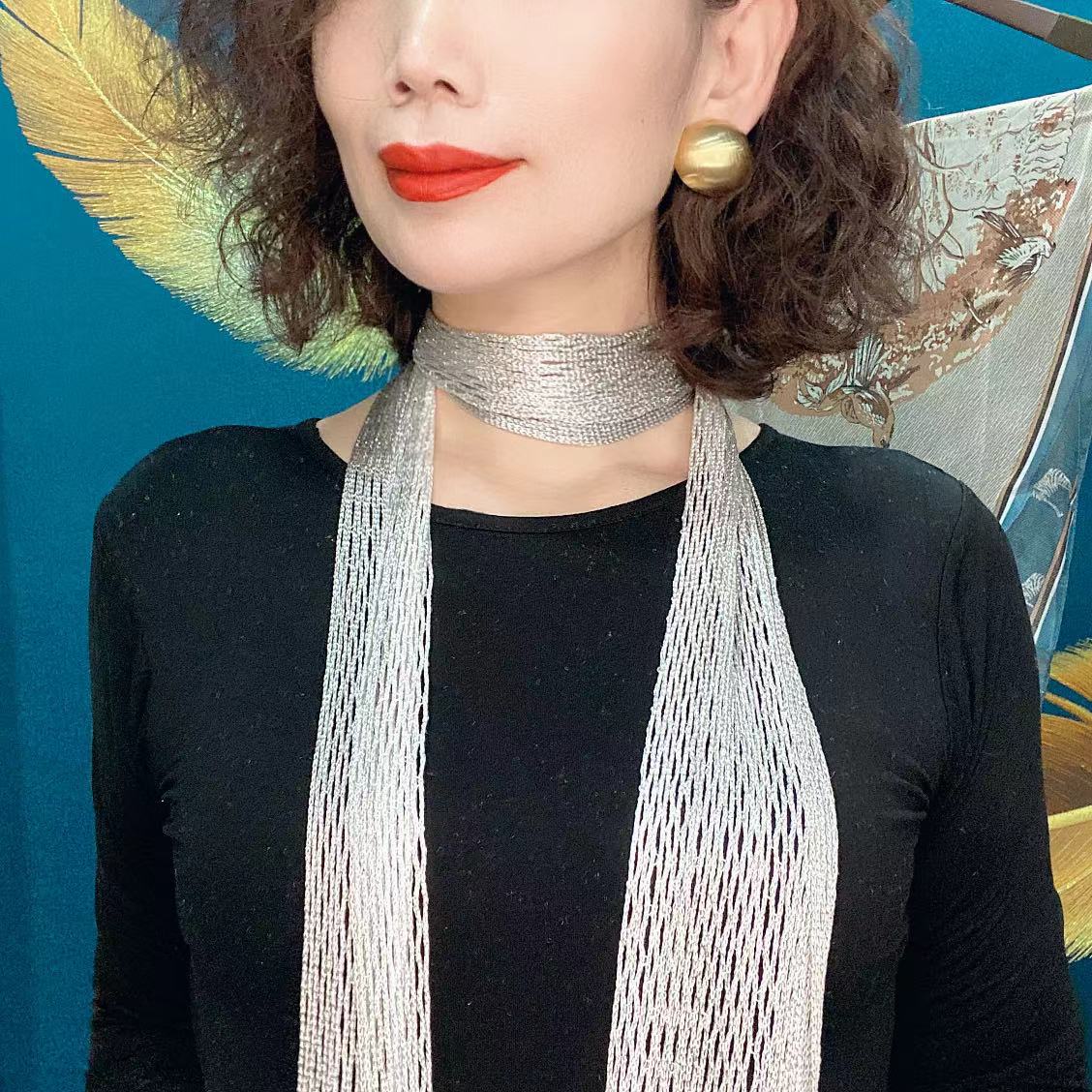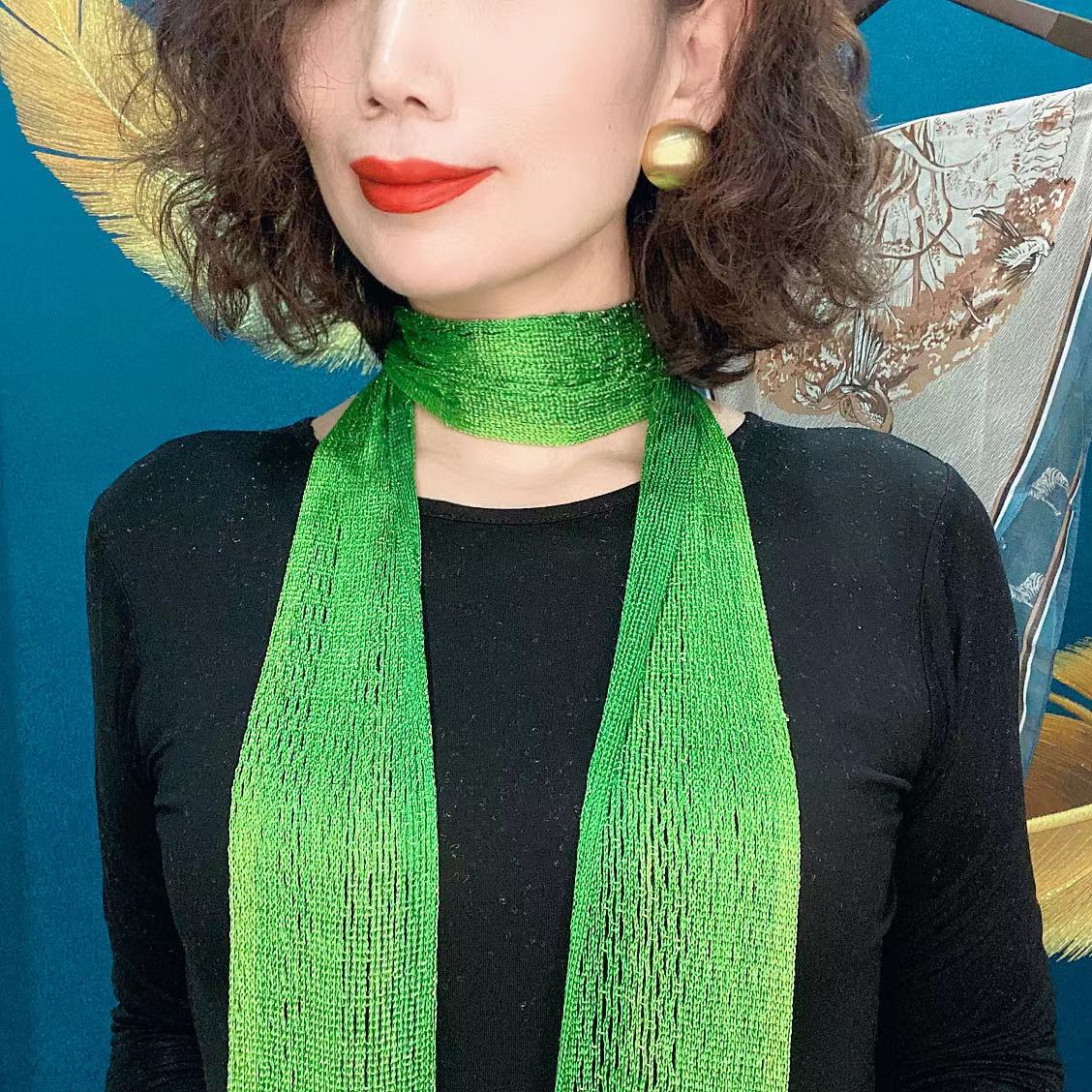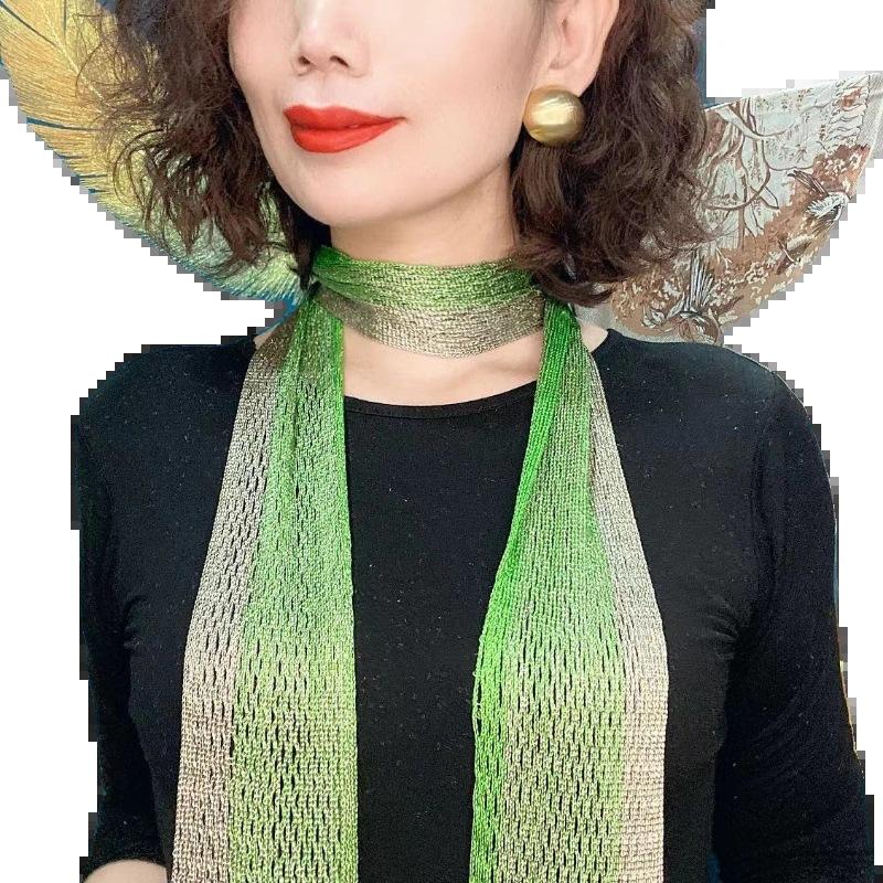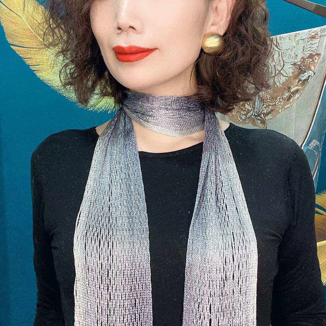 Bufanda de seda elegante que cubre el cuello con cinta a juego para primavera y otoño y verano. Nueva bufanda pequeña con borlas y colores a juego.