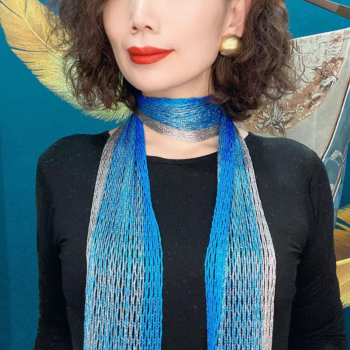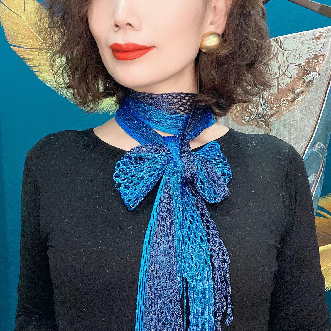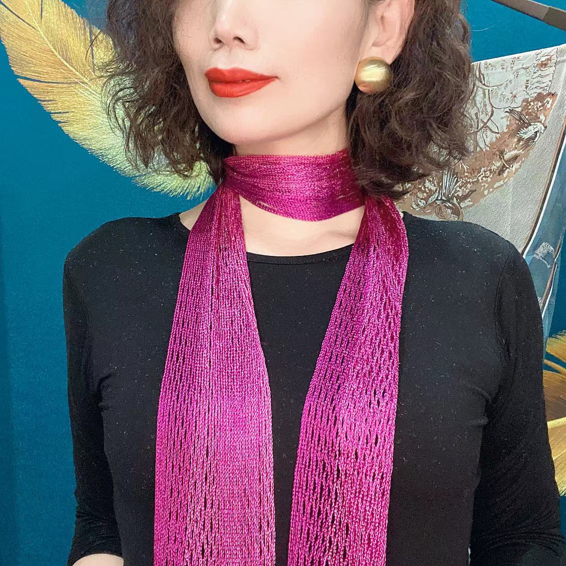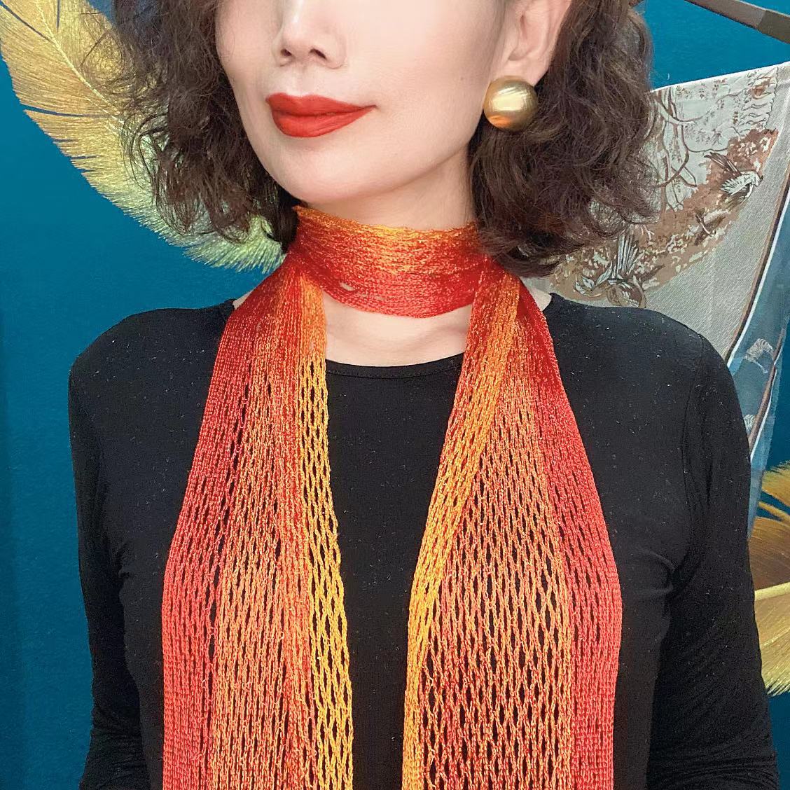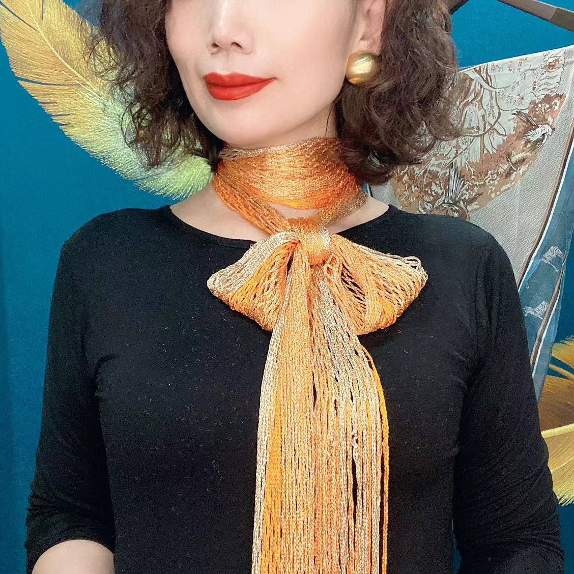 Bufanda de seda elegante que cubre el cuello con cinta a juego para primavera y otoño y verano. Nueva bufanda pequeña con borlas y colores a juego.
