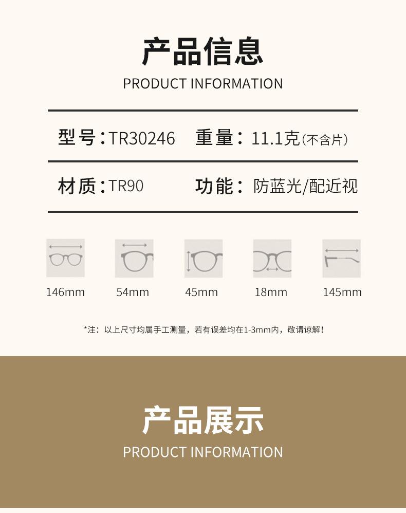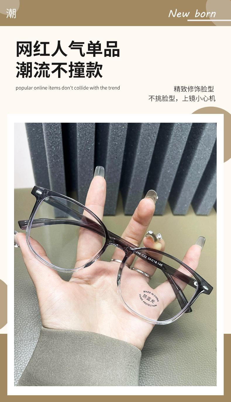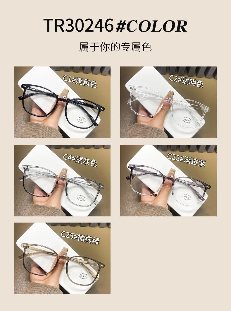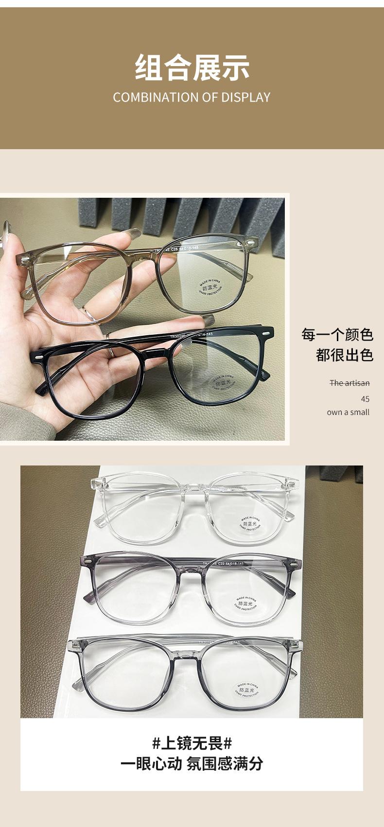 30246 Monturas de Gafas de Moda Cuadradas TR con Luz Azul para Hombre y Mujer Populares en Xiaohongshu Espejos Planos Monturas para Miopía de Mujer