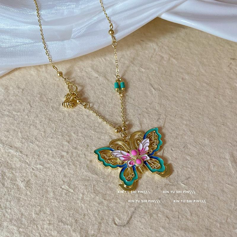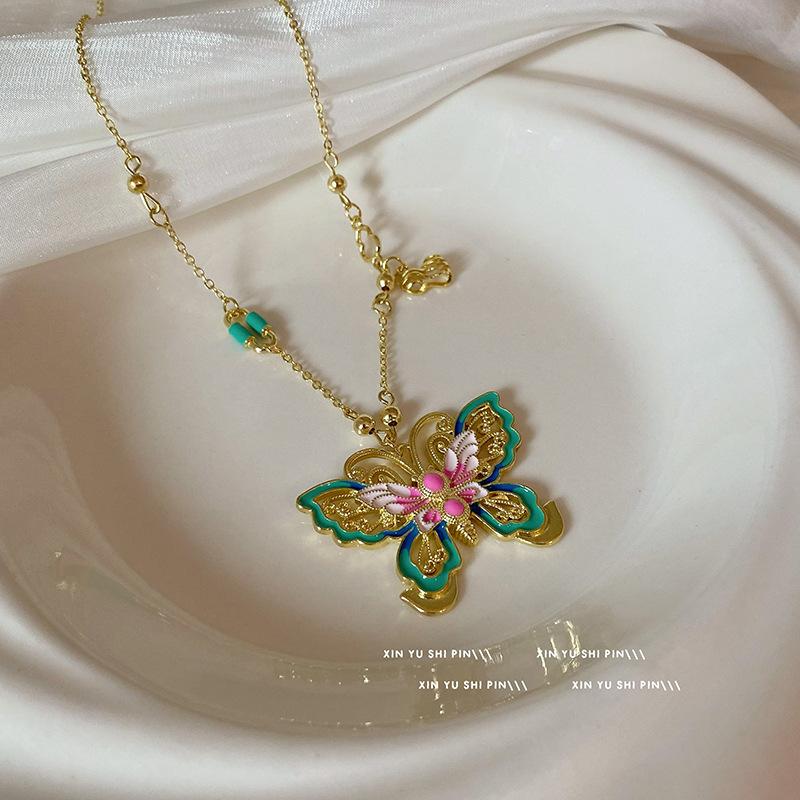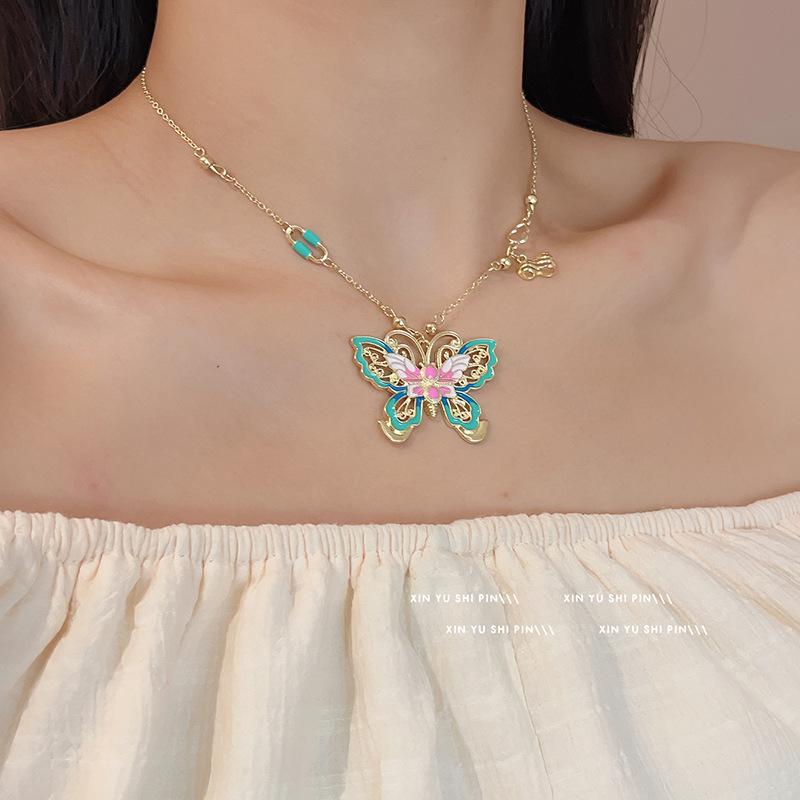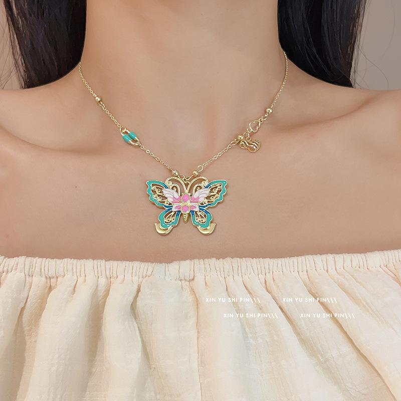 Nuevo collar de mariposa azul de estilo chino para mujer, cadena de clavícula dorada nueva de 2024, cadena de clavícula personalizada de alta calidad y combinable.