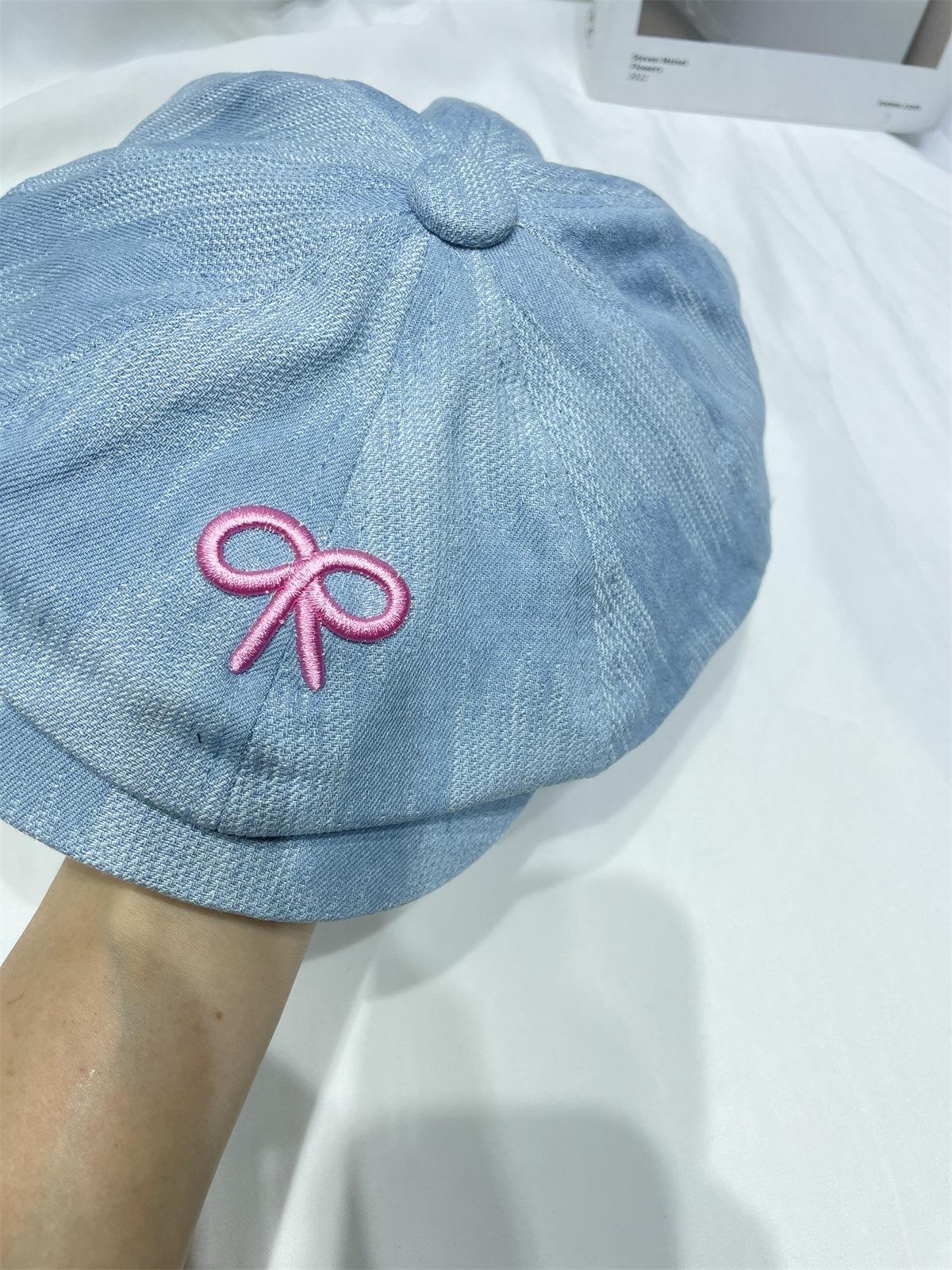 Gorra vaquera combinable de primavera y verano con lazo tridimensional bordado estilo coreano y octogonal artístico estilo japonés.
