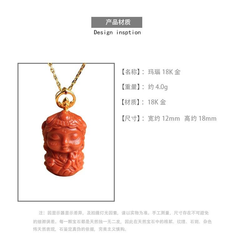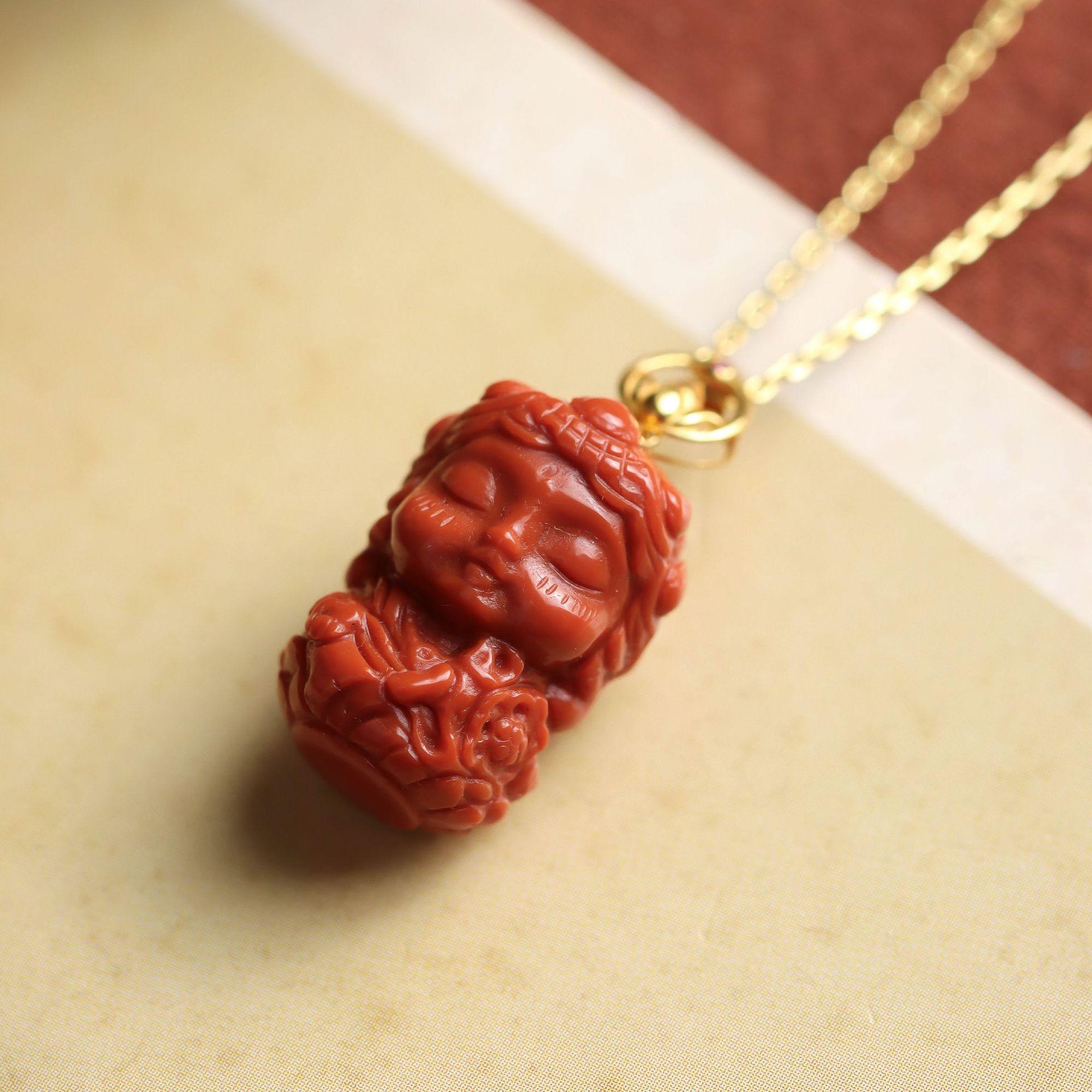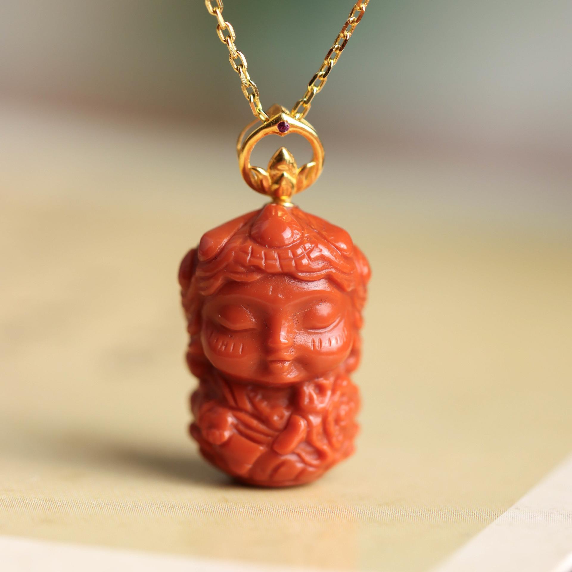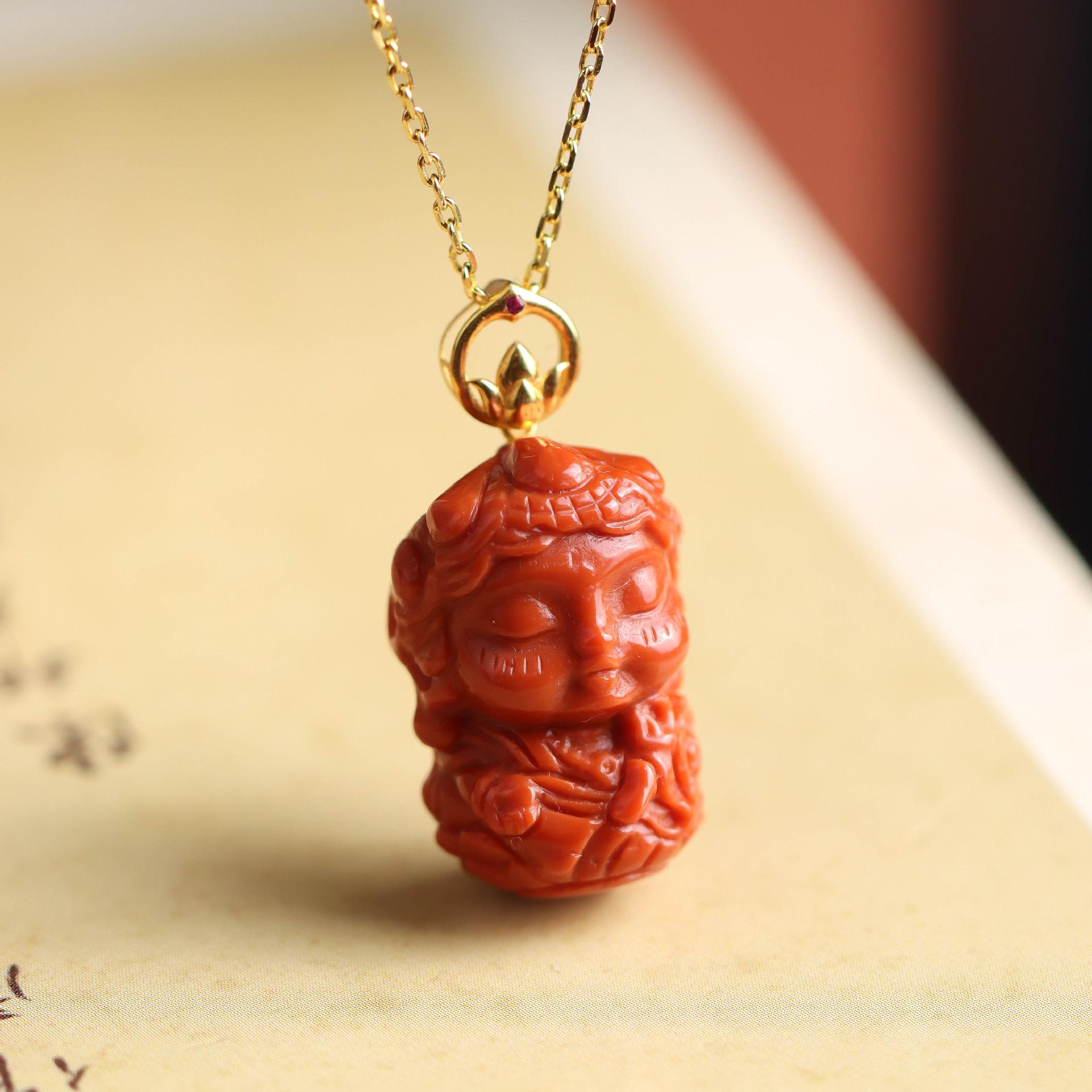 Colgante Tara de Ágata Roja Natural con Incrustaciones de Oro de 18K, Tallado en Estilo Chino Retro, Collar de Cadena para Clavícula para Mujer
