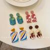 Pendientes de diamantes de acero inoxidable europeos y americanos transfronterizos para mujer Pendientes geométricos de turquesa azul de acero titanio y oro de 18 quilates de moda europea y americana para mujer