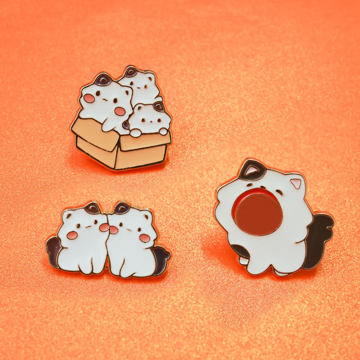 Broche de Gato Blanco Lindo Insignia de Animal Dibujo Animado Japonés Cachorro Ramillete Pin de Gota de Aceite Metálico Accesorios para Bolso