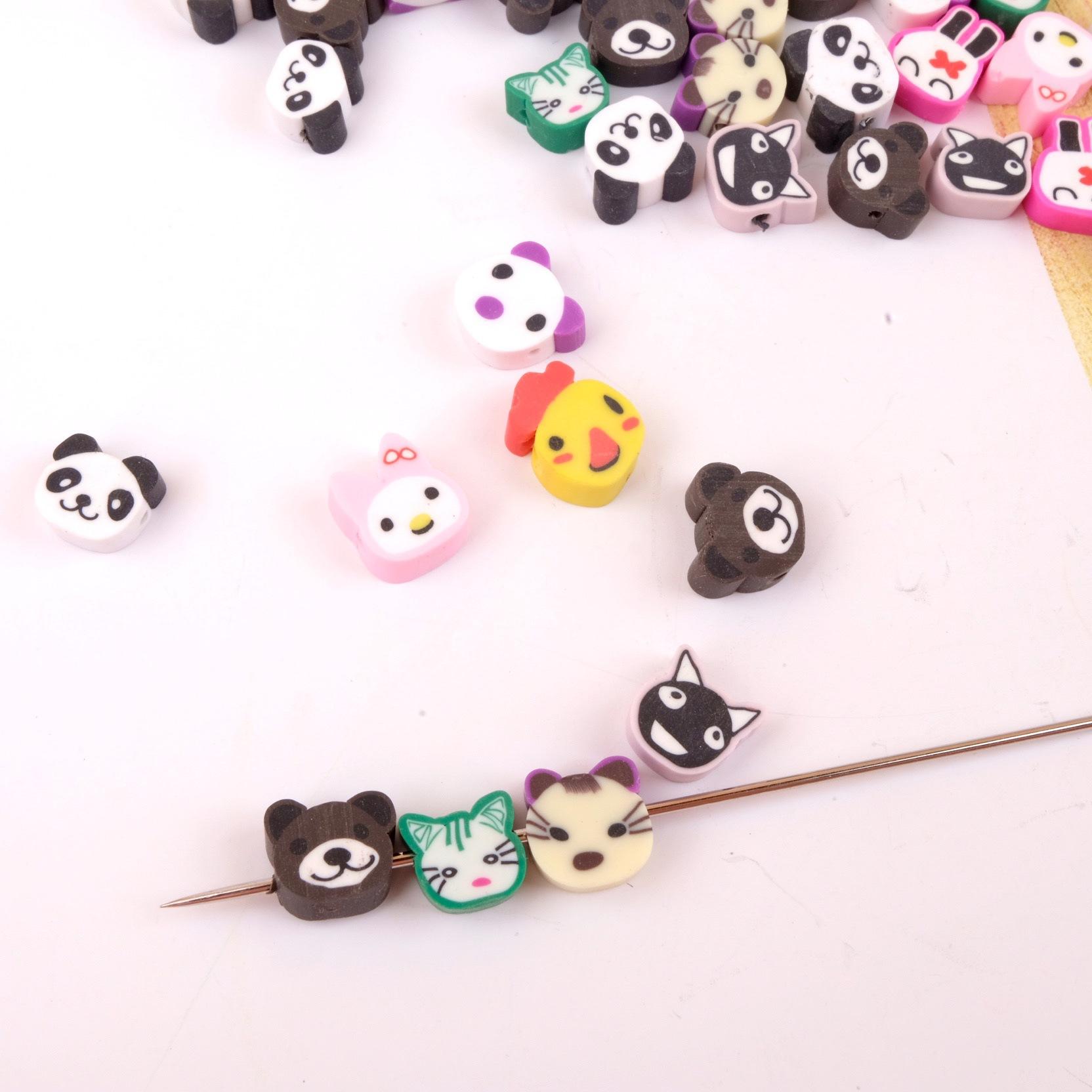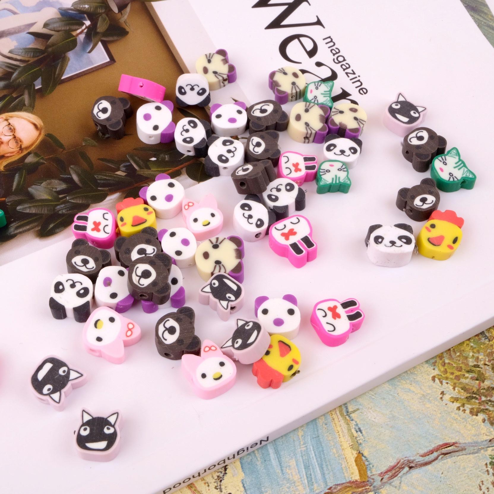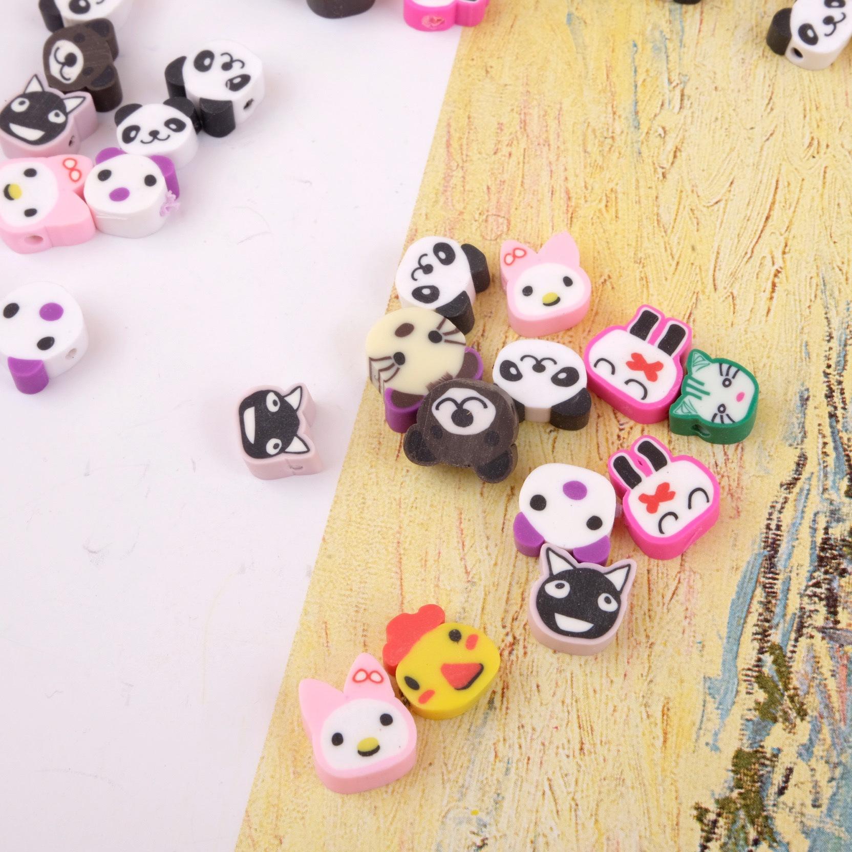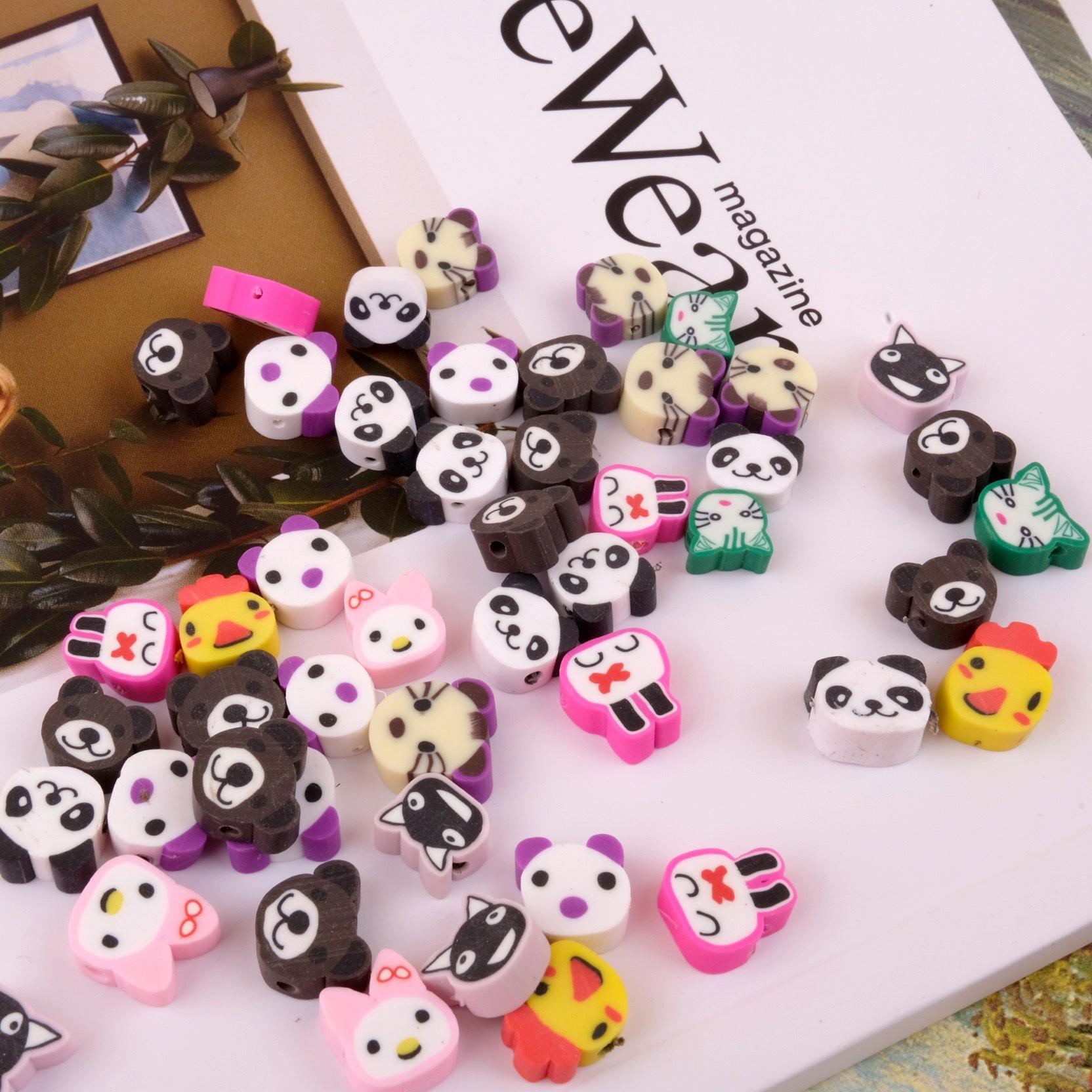 Collar de cuentas de cerámica suave con dibujos de animales pequeños, hecho a mano, vintage, cuentas sueltas de colores mezclados, joyería, material de bricolaje, estilo ins