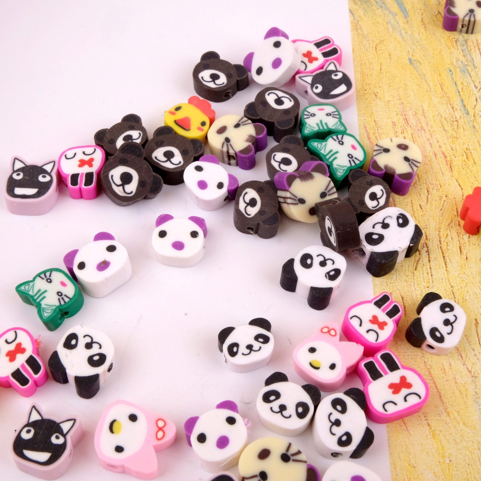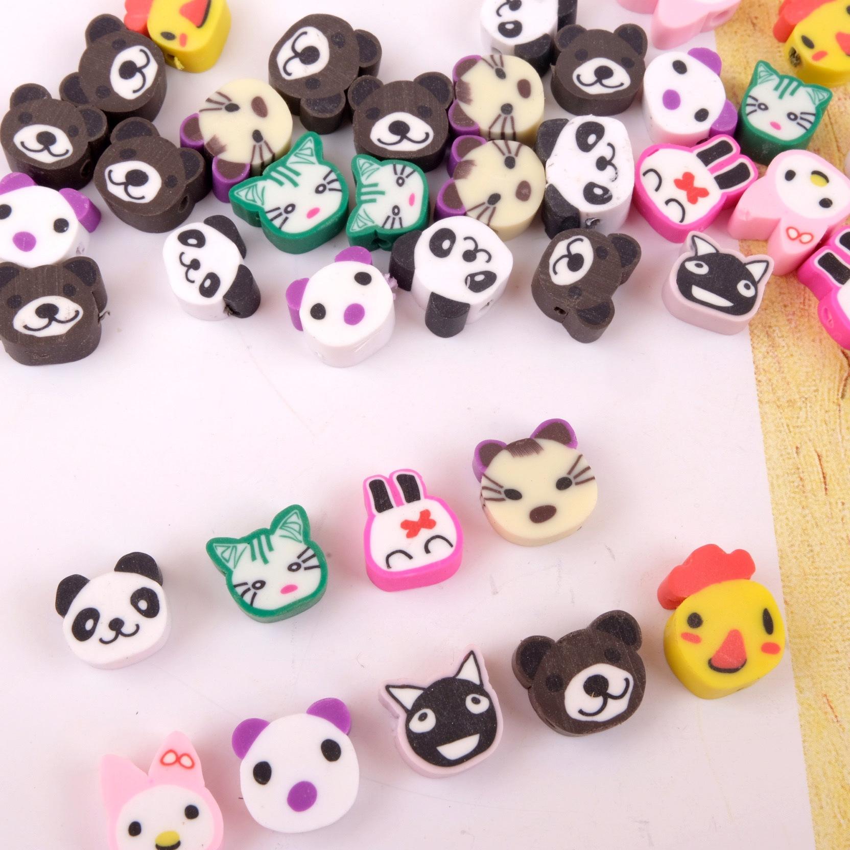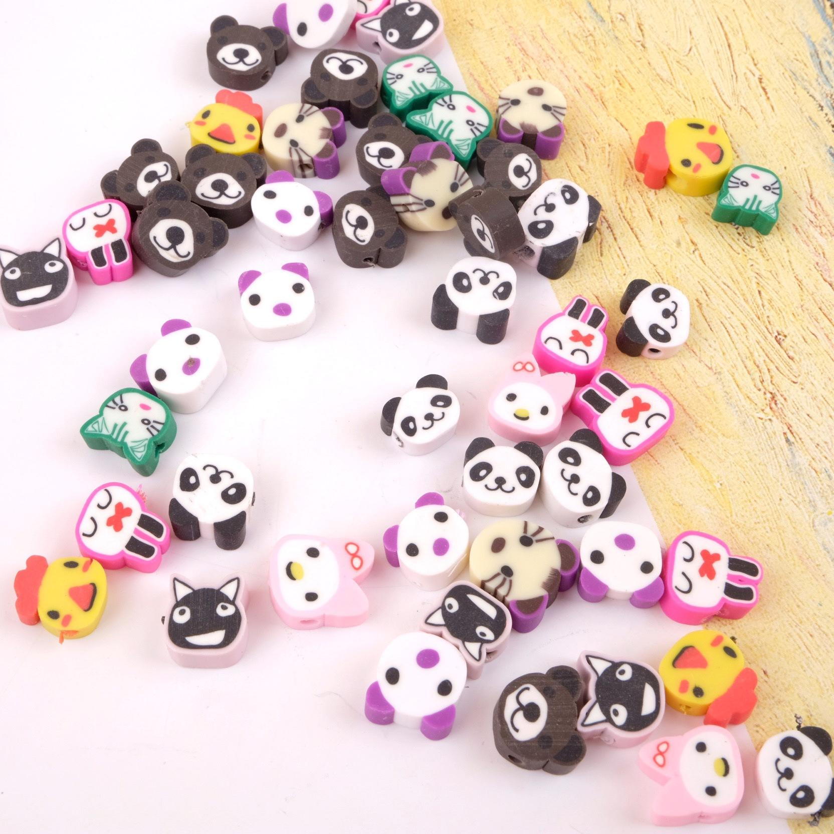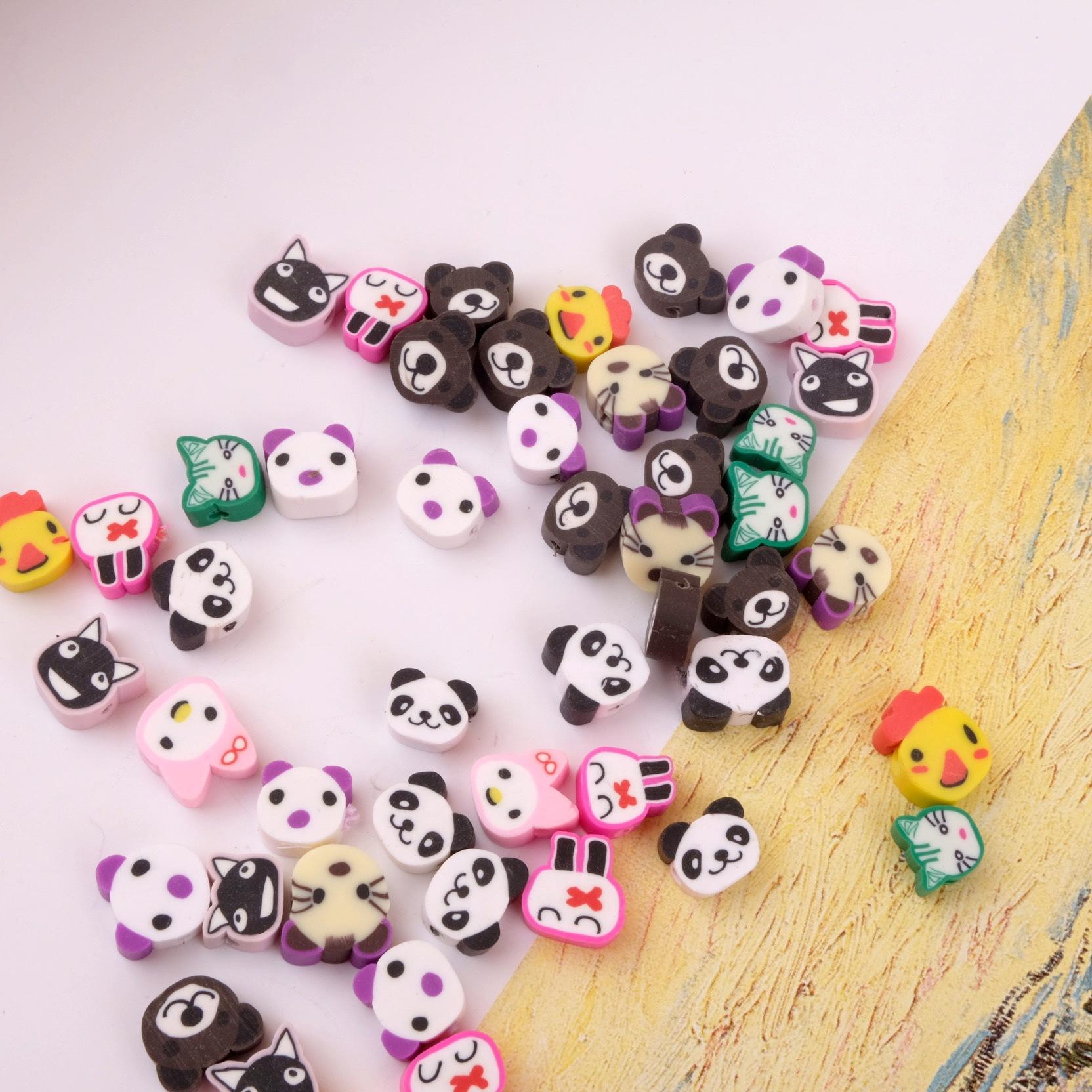 Collar de cuentas de cerámica suave con dibujos de animales pequeños, hecho a mano, vintage, cuentas sueltas de colores mezclados, joyería, material de bricolaje, estilo ins