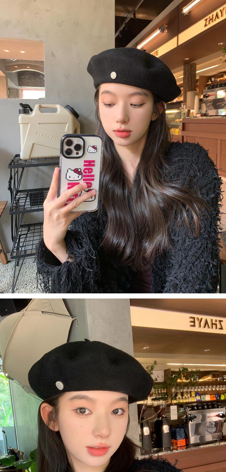 Boinas de lana de alta calidad para niños, otoño e invierno 2024, combinables, populares en Internet, clásicas, vintage, con pintura.