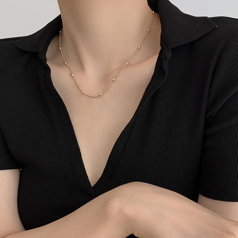 Collar de Celebridad de Internet de Diseño Único para Mujer, Nuevo Modelo Verano 2025, Exquisito Choker Corto de Cuentas Redondas, Cadena Simple y Elegante para la Clavícula