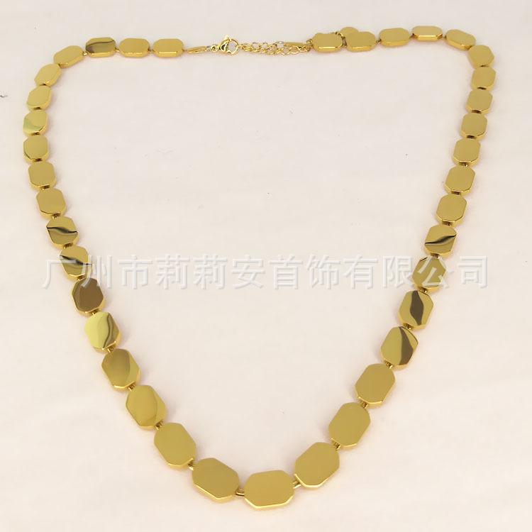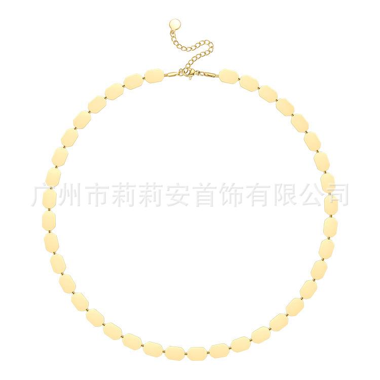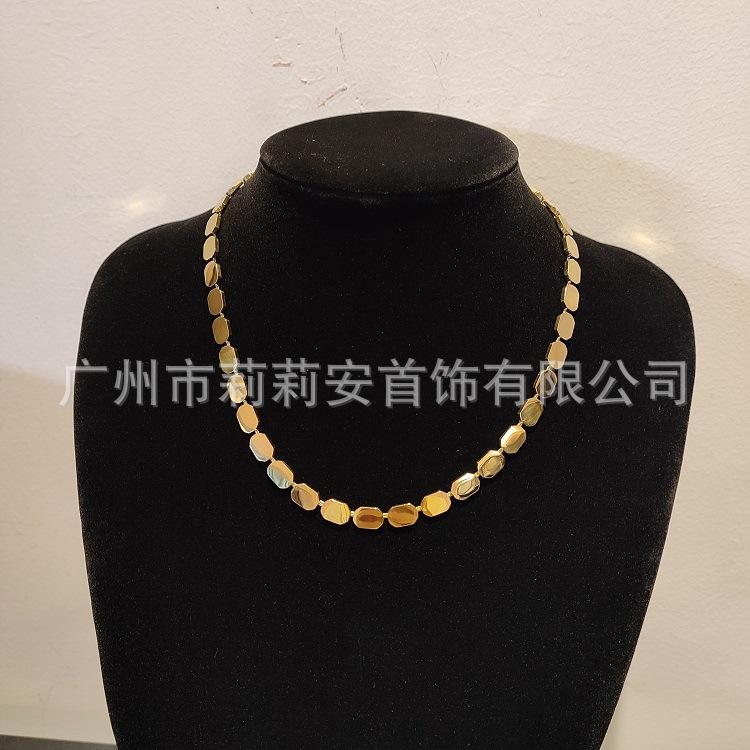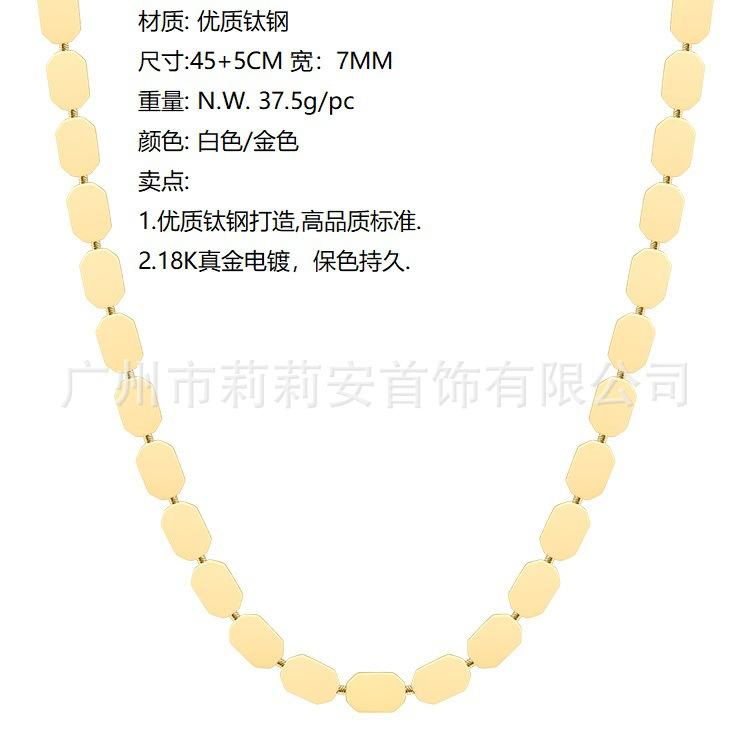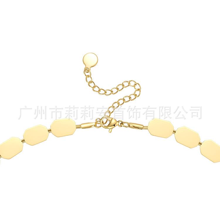 Collar de cadena octagonal geométrica lisa europea y americana de acero de titanio chapado en oro de 18 quilates de alta calidad con estilo hip hop callejero P213229